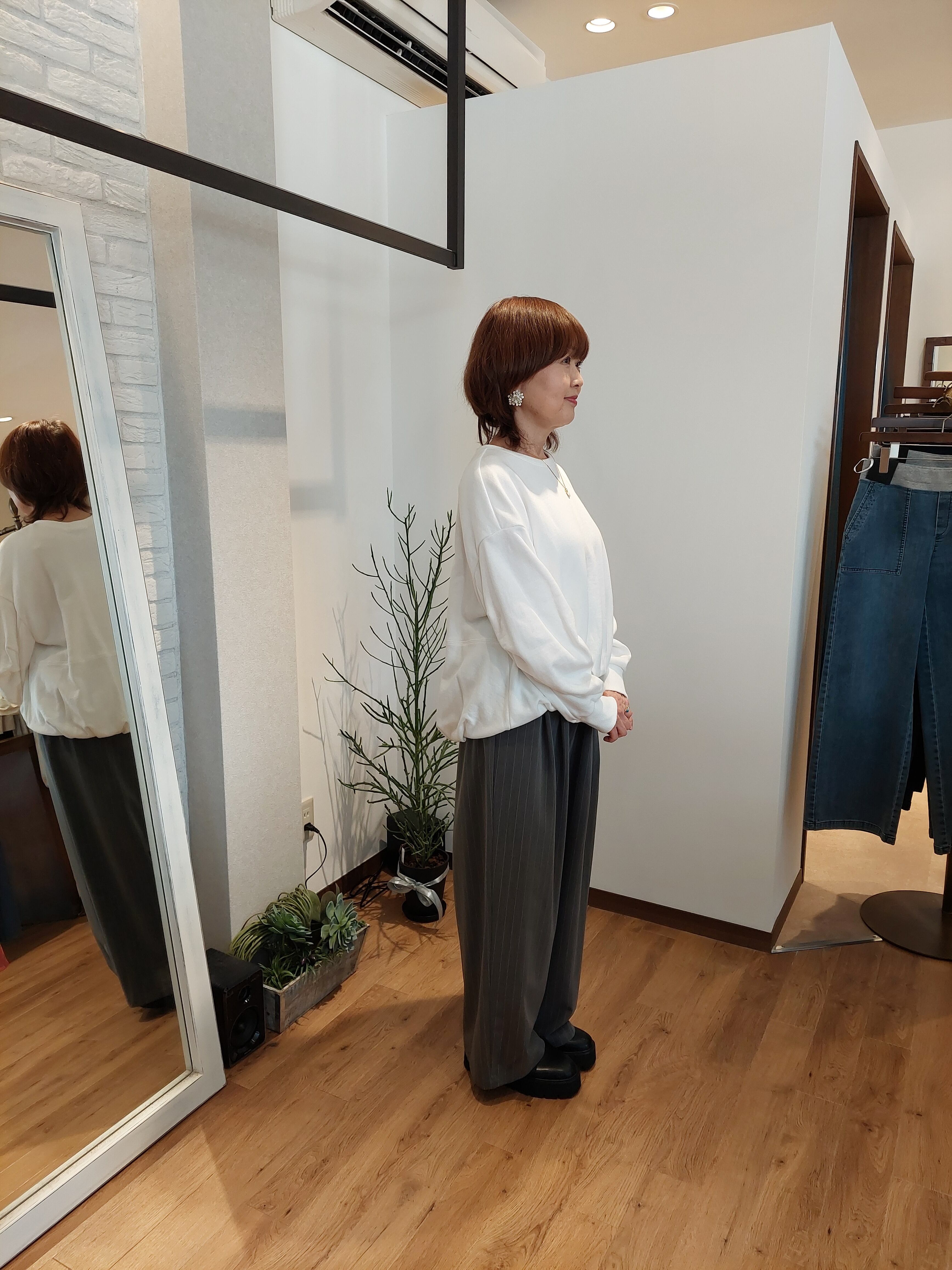 裾タックとボリューム袖でバランスの良いシルエットの一枚。
