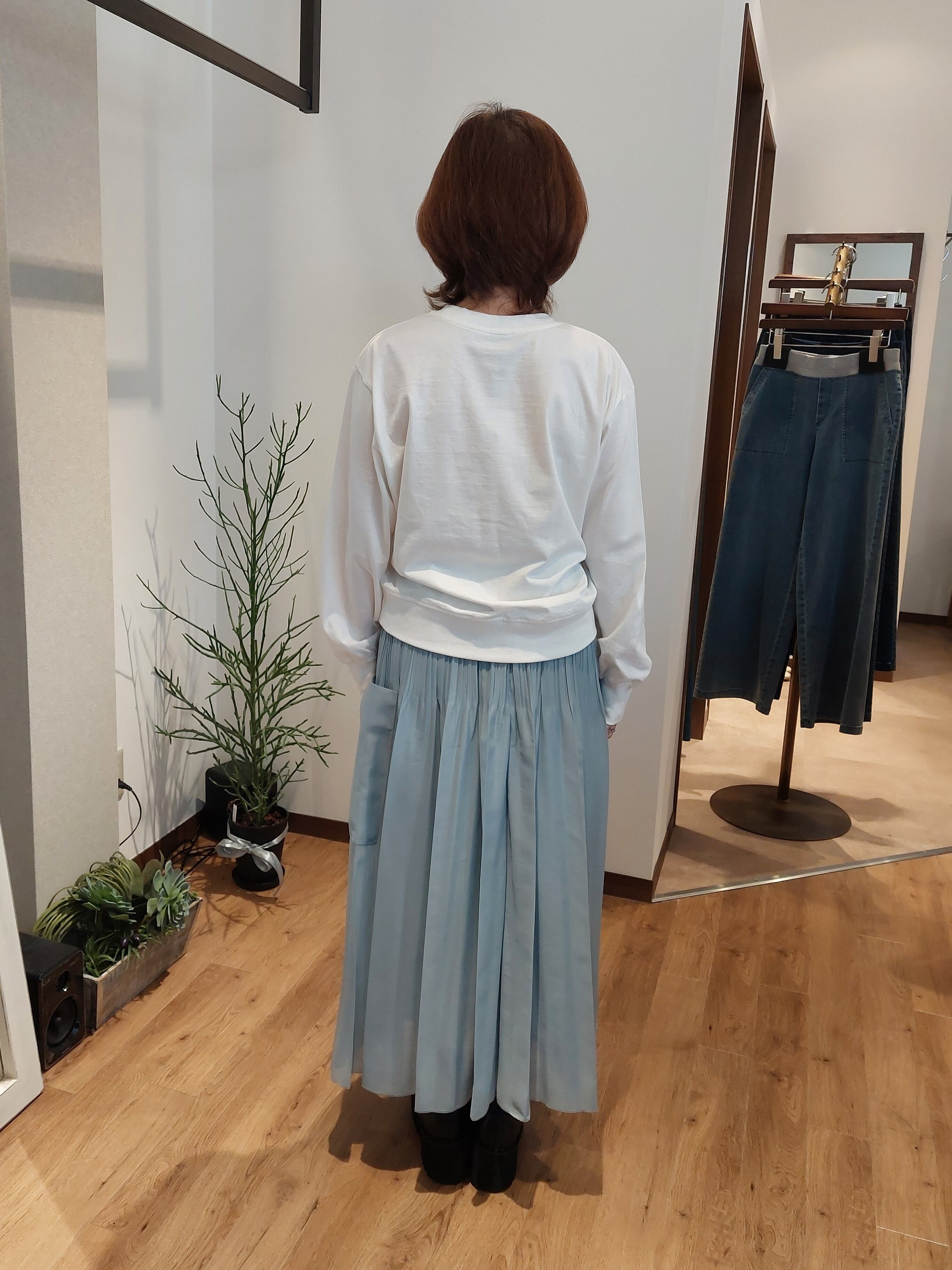 シャツやブラウスをレイヤードするのもおすすめ。