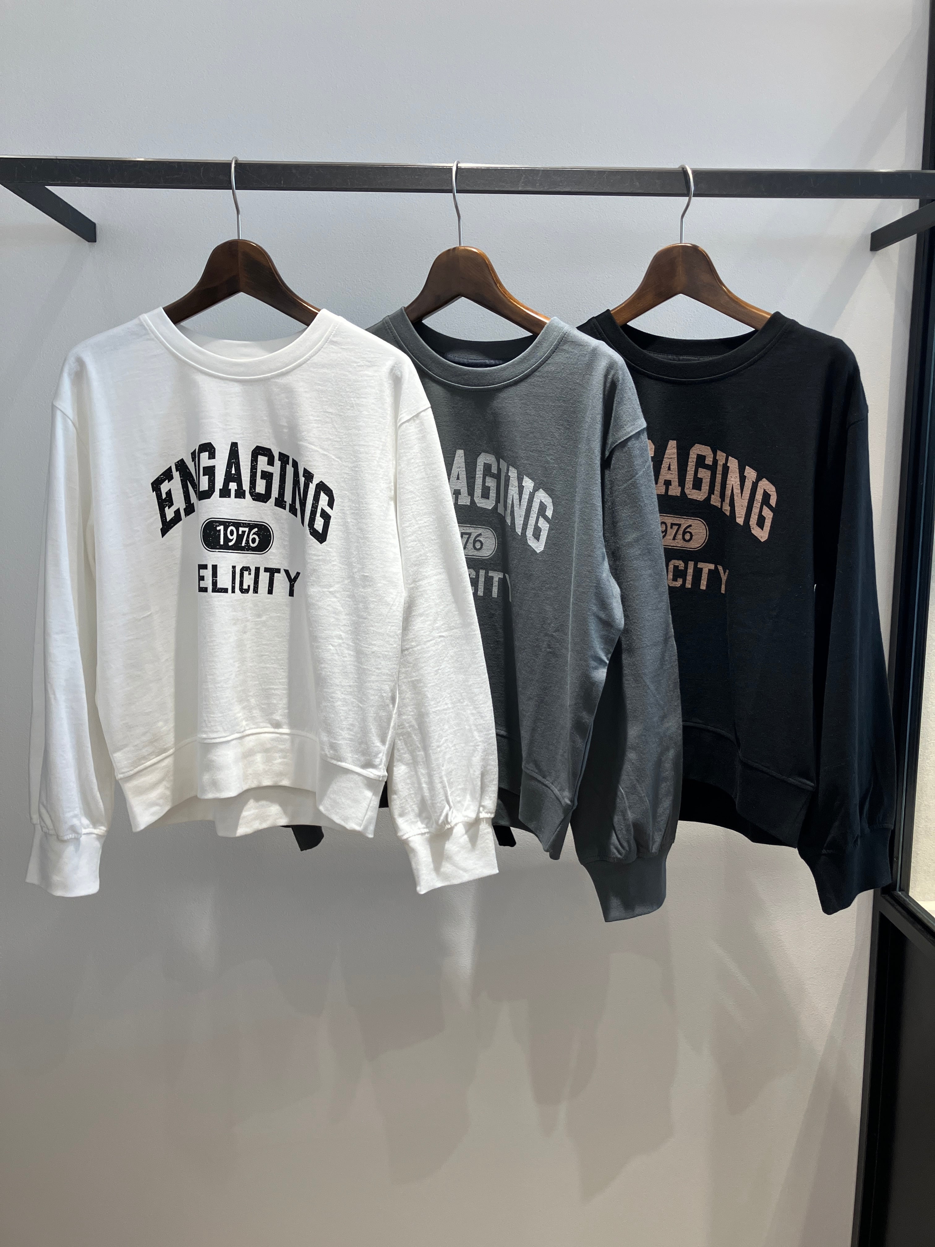フロントのロゴプリントが程よいアクセントになる、大人カジュアルなロンT。