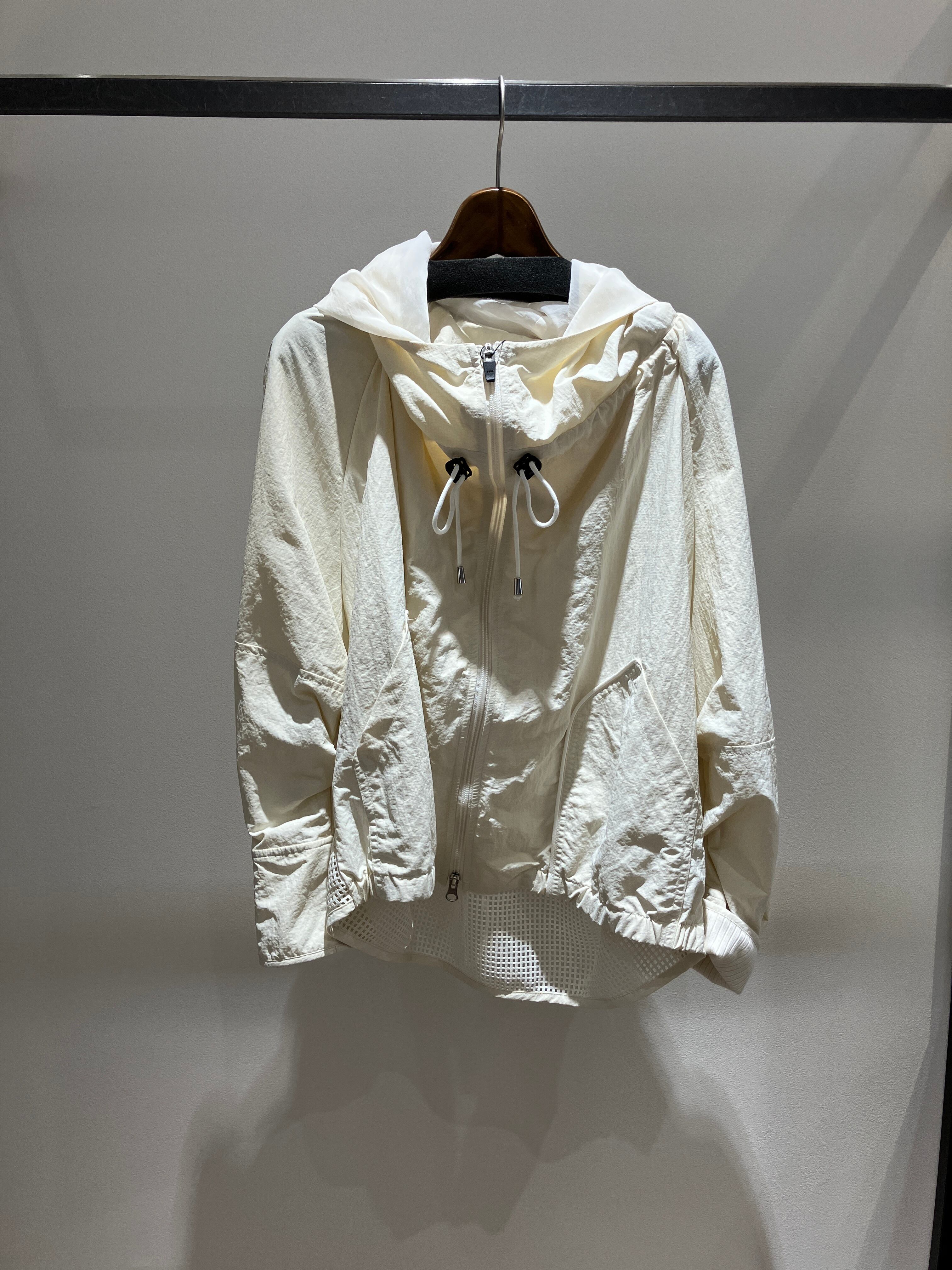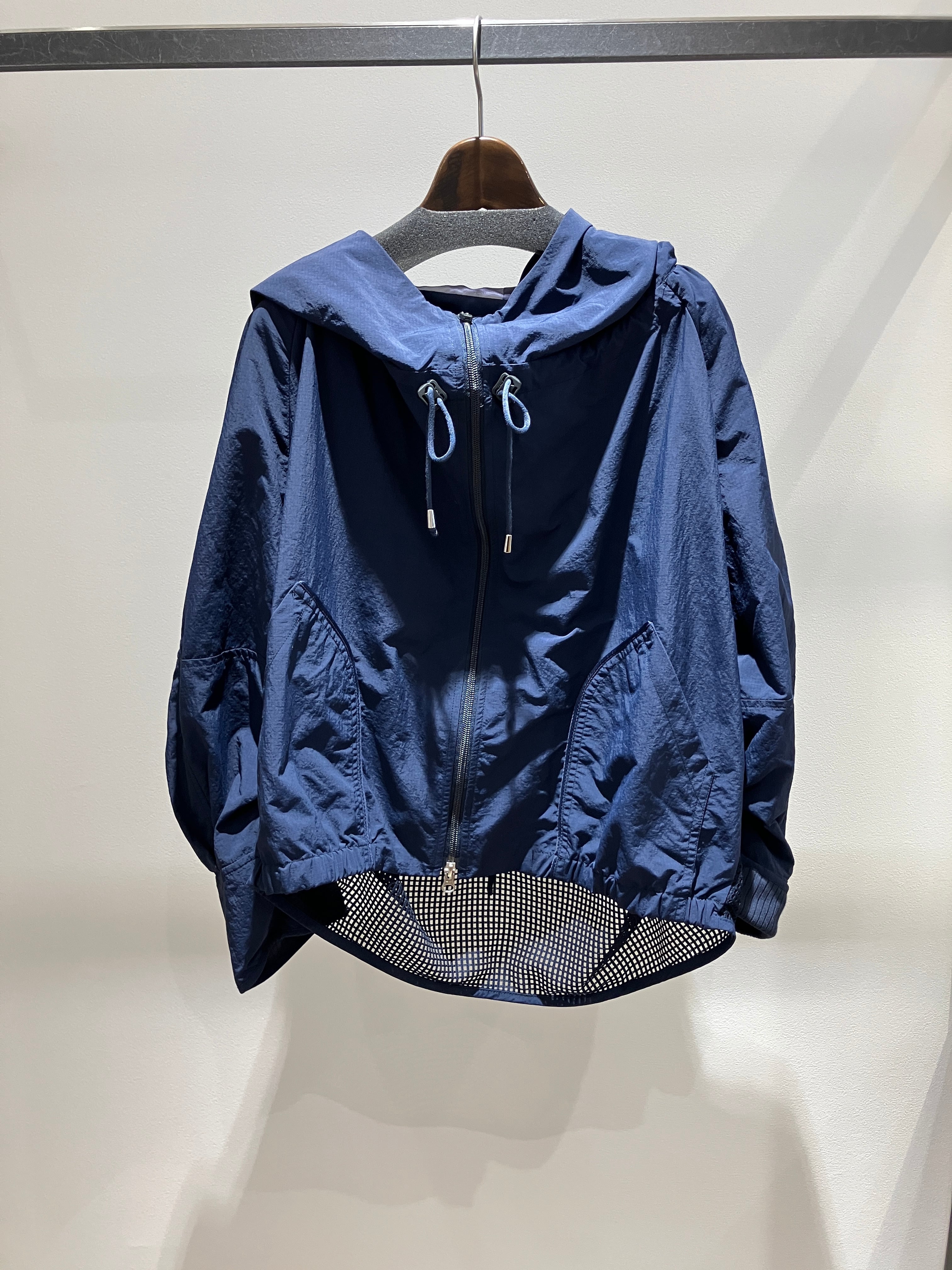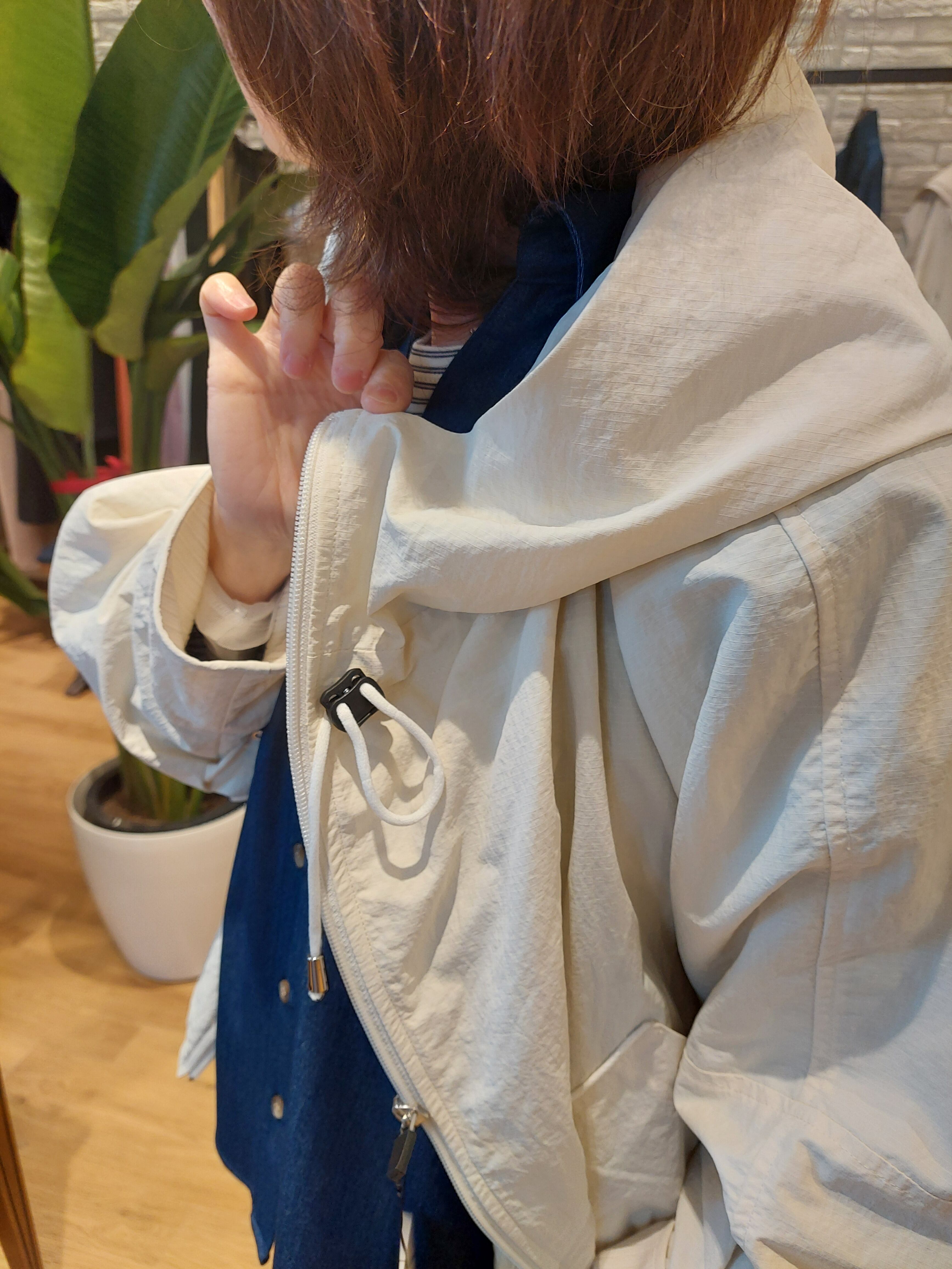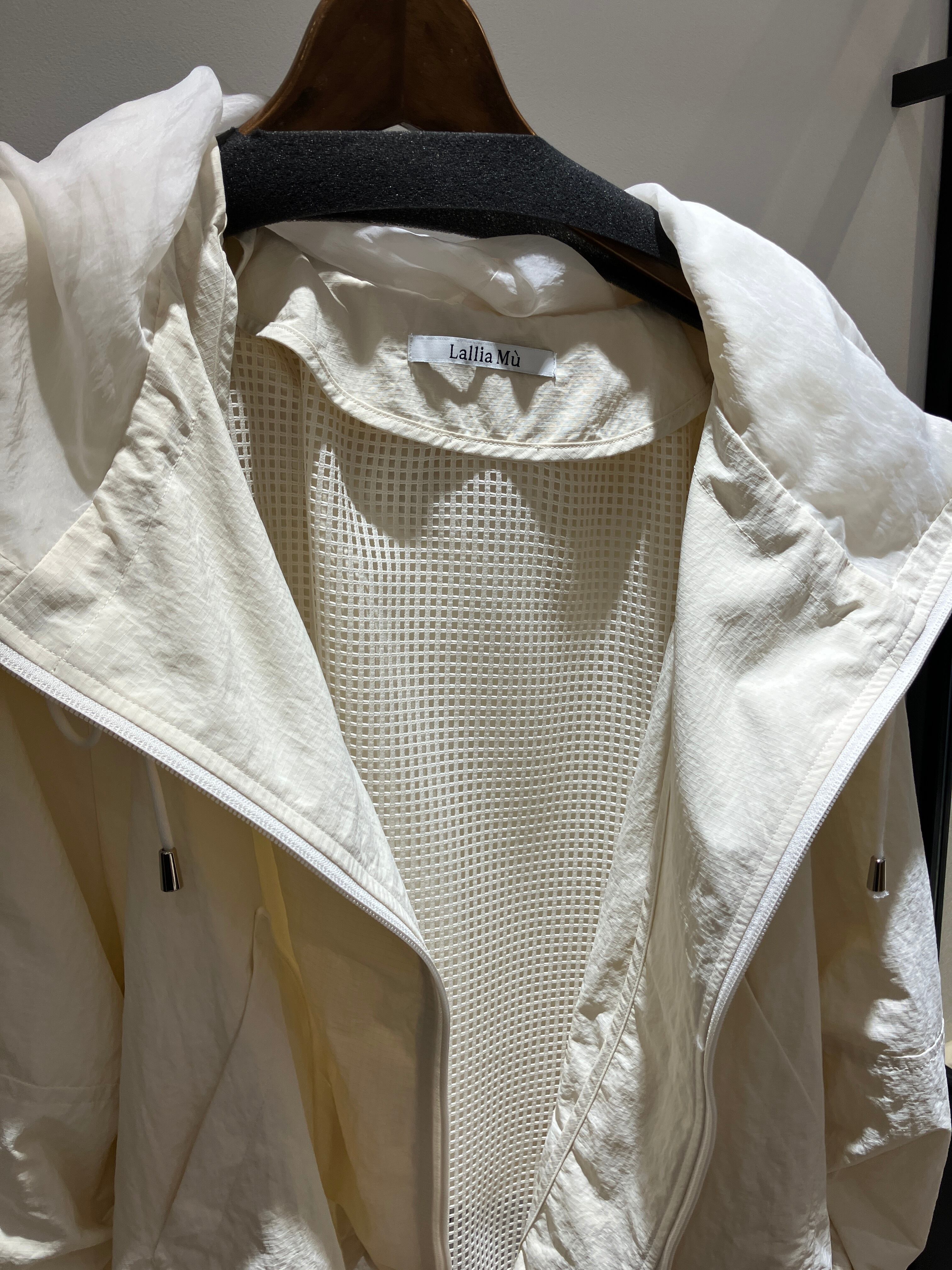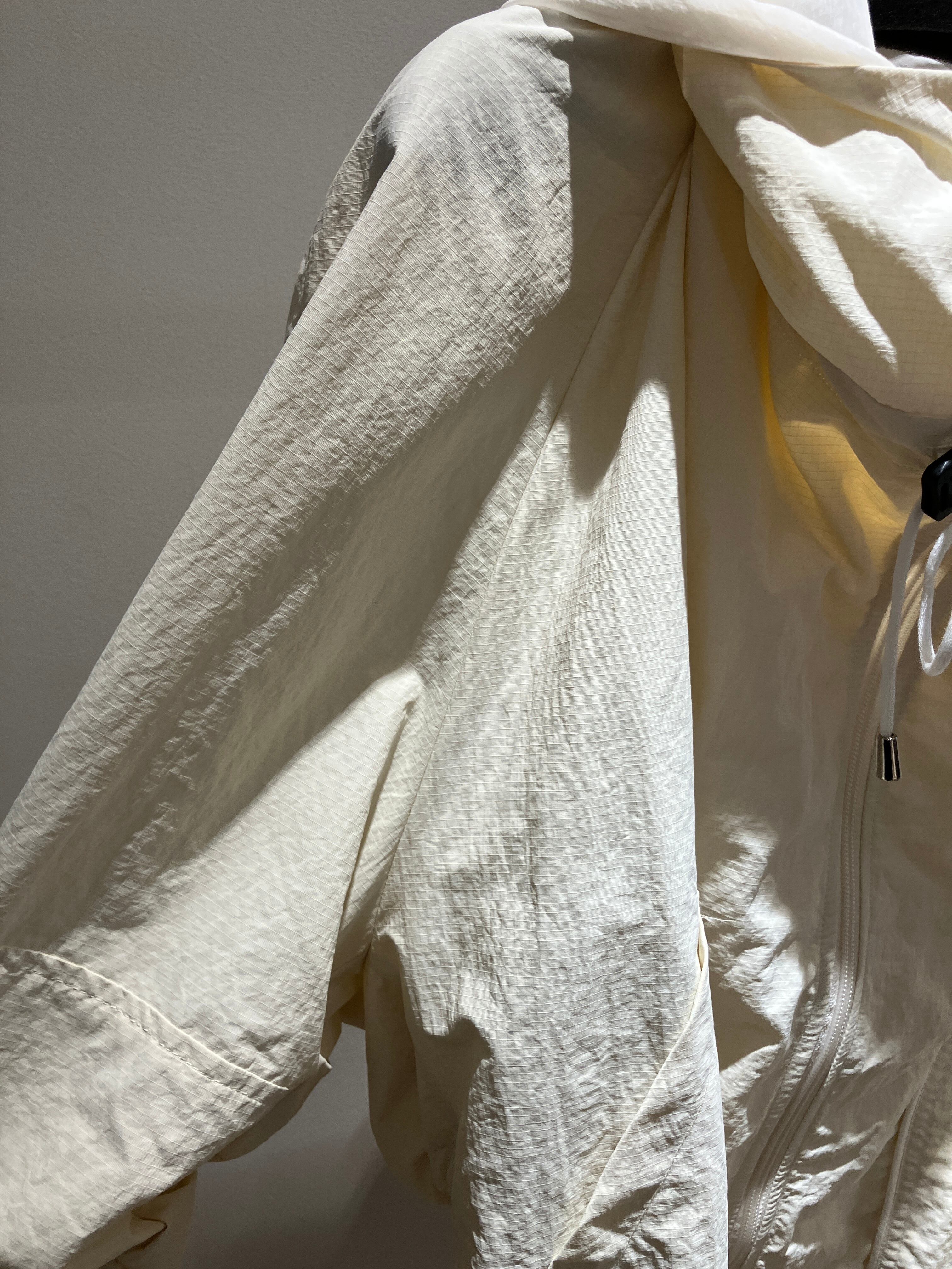 着心地も見た目にも軽い印象のフード型ブルゾン。