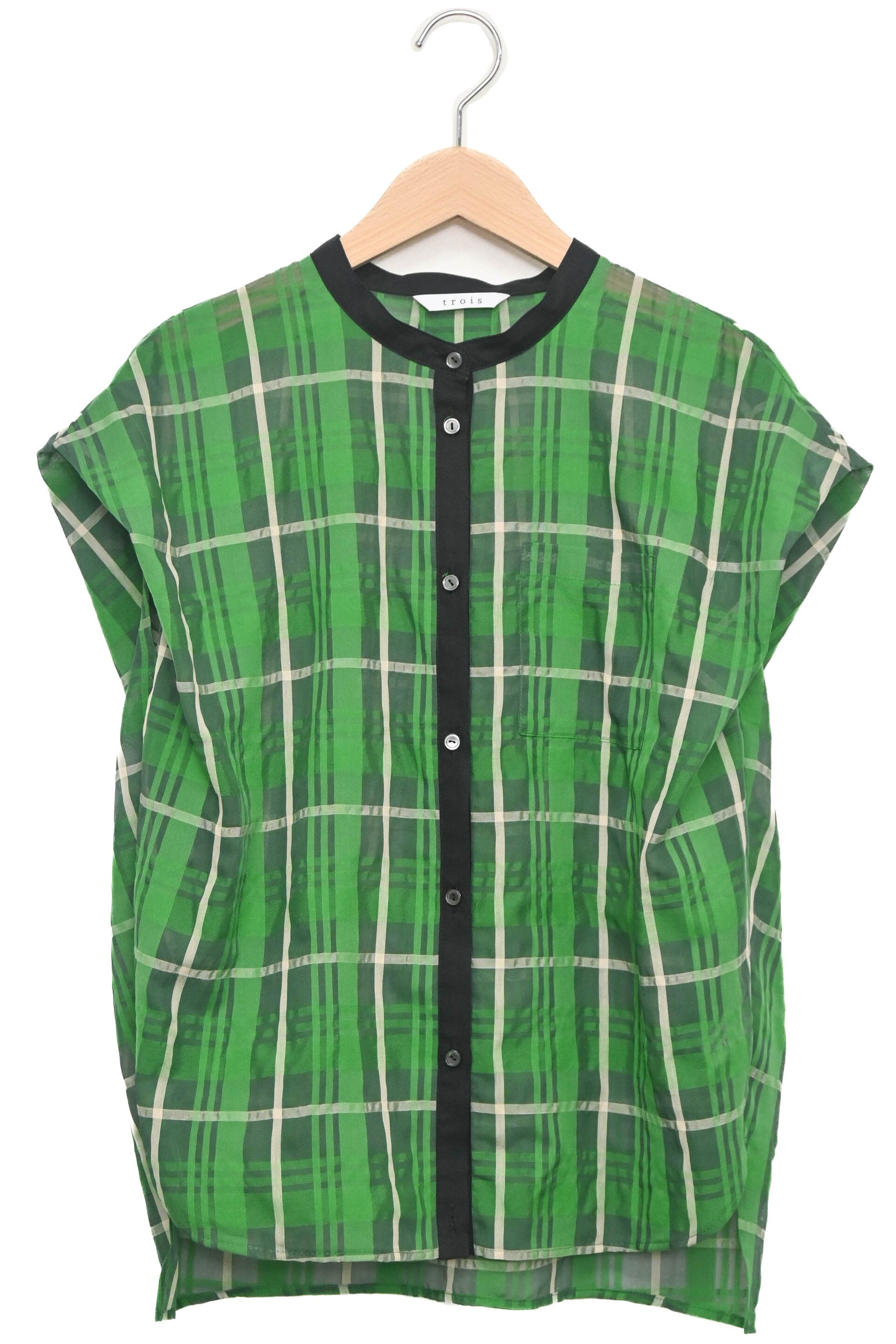 trois トロア / シアーチェックフレンチスリーブブラウス (T26181047)