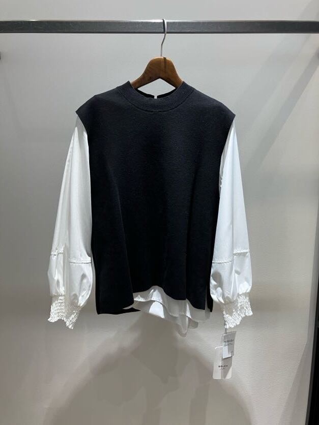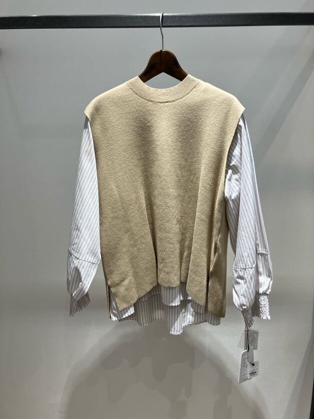 ニットベストはバックパールになっており抜け感の中にも上品さが見え隠れしています。