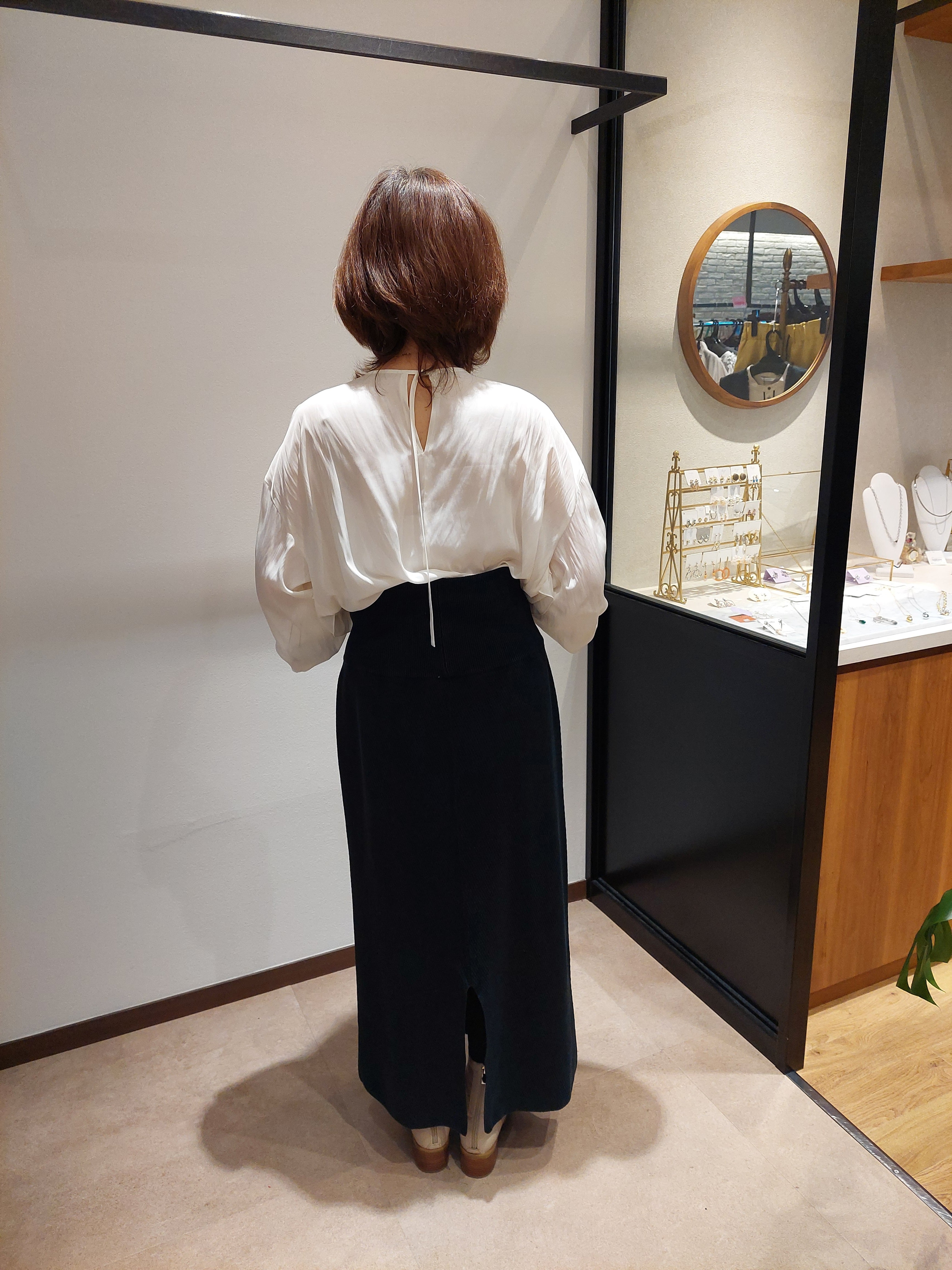 すっきりとしたIラインシルエットに、バックスリットを入れることで足さばきも良く、女性らしさをプラス。