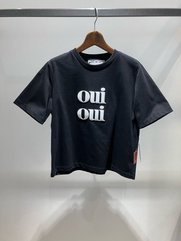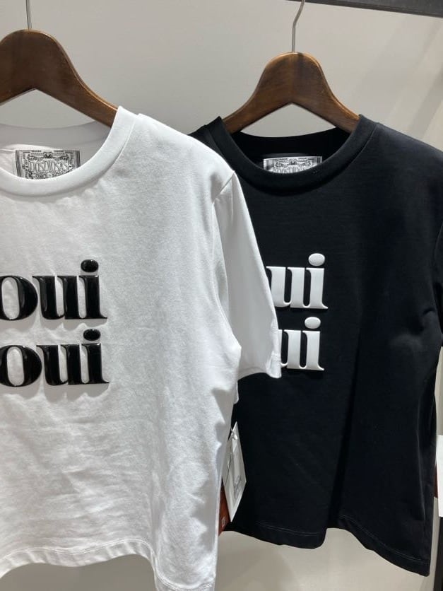 まるで浮き出ているかのような立体的な3Dのロゴが目を引く、遊び心たっぷりの一着。特殊な3Dプリントで表現された「ouioui」のロゴが、シンプルなTシャツスタイルにモダンな奥行きとアクセントを添えてくれます。体型をスマートに見せてくれるコンパクトなシルエットは、ボリュームのあるワイドパンツやふんわりとしたスカートとも相性抜群。一枚で着るのはもちろん、ジャケットやカーディガンのインナーとしてもロゴが引き立ち、大人のカジュアルを格上げしてくれるアイテムです。