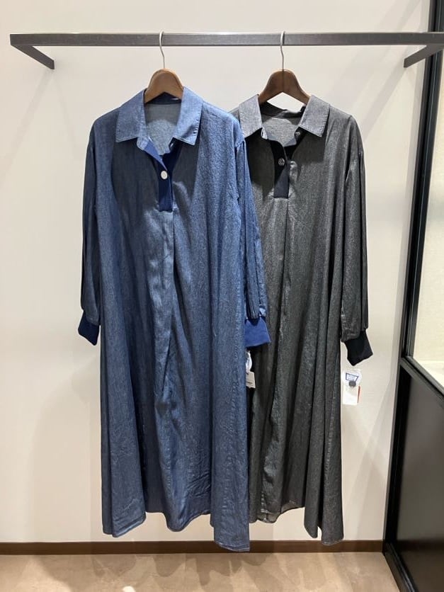 カジュアルながらも、程よいハリと光沢を感じさせる上質なデニムの質感を活かしたロングワンピース。顔まわりを聡明に見せる襟付きのデザインが、ワークテイストの中にクリーンな大人っぽさをプラスします。一番のこだわりは袖リブ仕様。腕まくりがしやすく、ぽわんとした袖のボリュームをキープできるので、着るだけでこなれたニュアンスが生まれます。