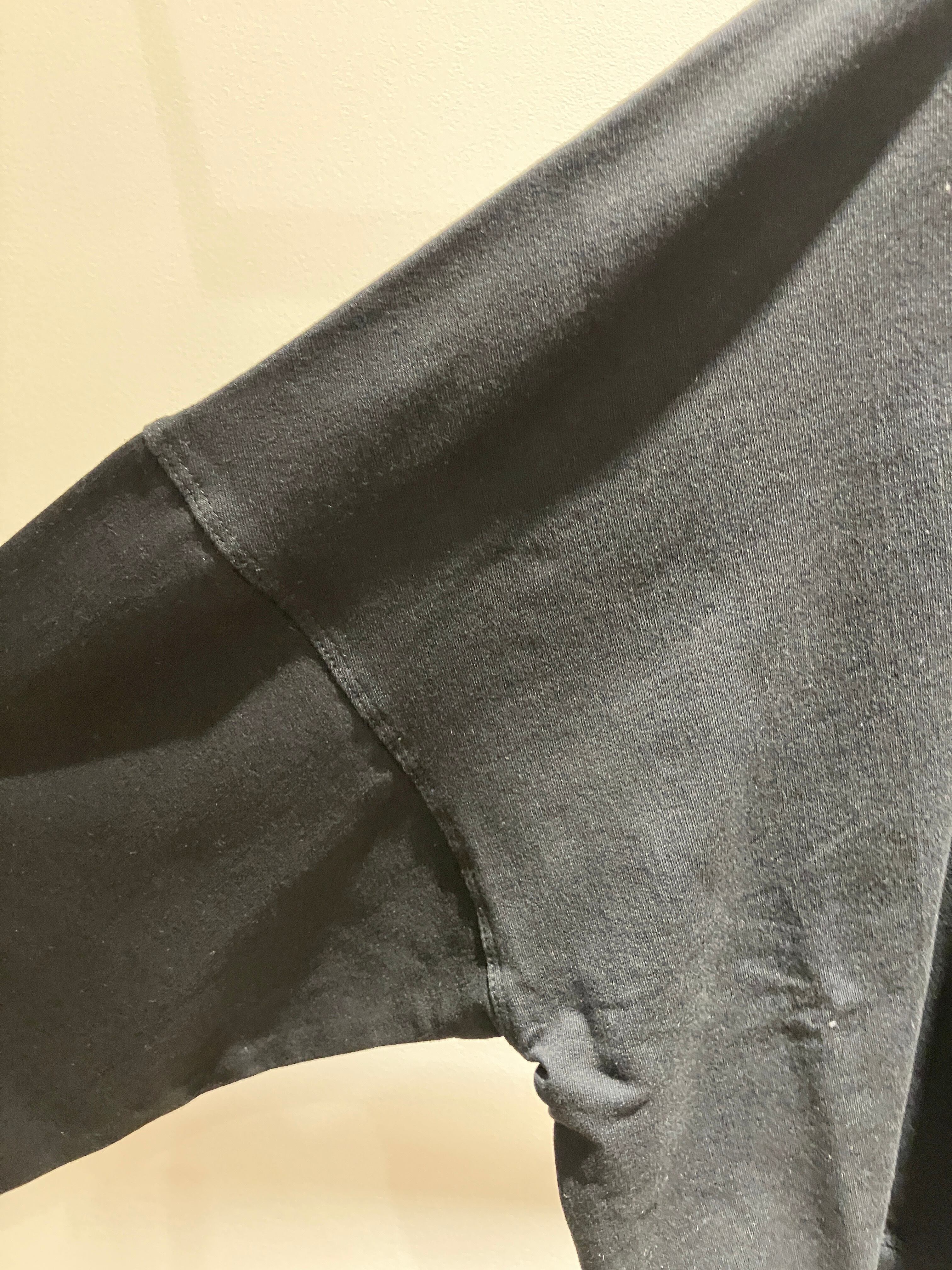 フロントに配された、芝生を思わせるモコモコとした立体感のあるロゴ刺繍が目を引くカットソー。遊び心のある独特なテクスチャーが、いつものカジュアルスタイルに新鮮な奥行きをプラスします。身体のラインを拾わないゆったりとしたサイズ感に加え、裾にかけて描く丸みのあるシルエットが、女性らしく柔らかなニュアンスを演出。着丈に前後差をつけることで、タックインしなくてもすっきりとこなれた印象にまとまります。大人の日常にさりげない個性を添えてくれる、着心地にもこだわった一着です。