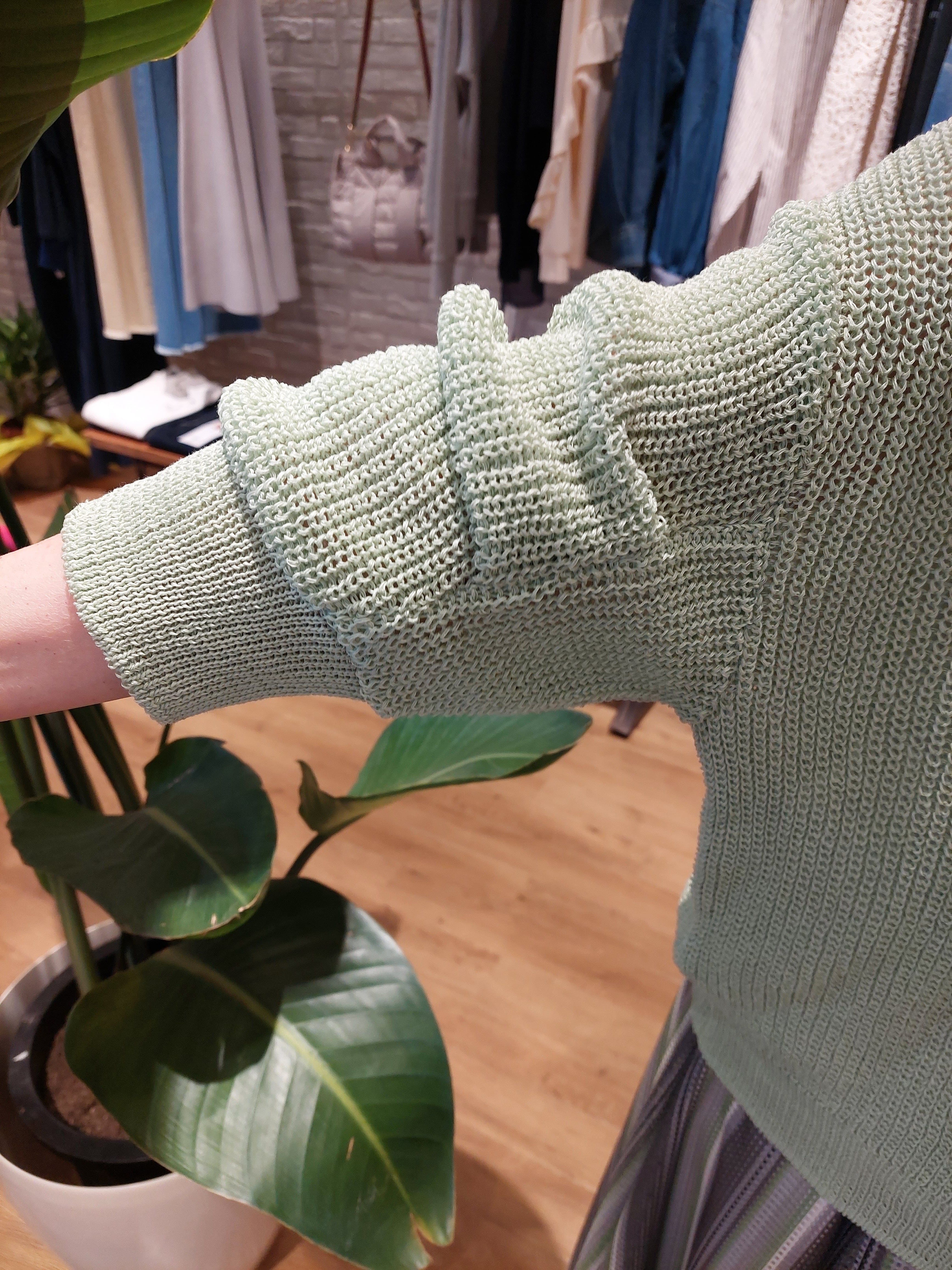 前後どちらでも着用できる2WAY仕様が魅力のギマコットンニットプルオーバー。