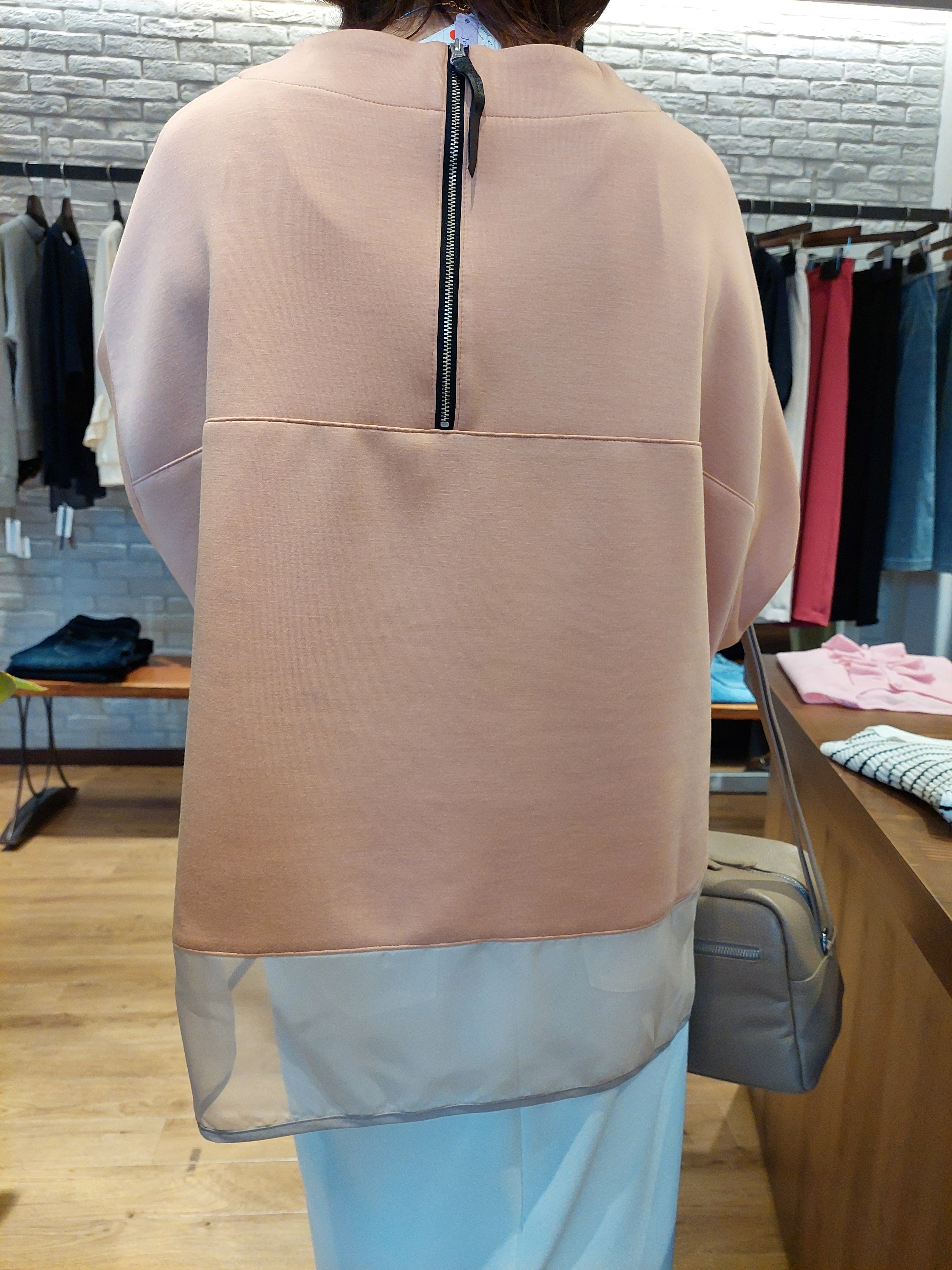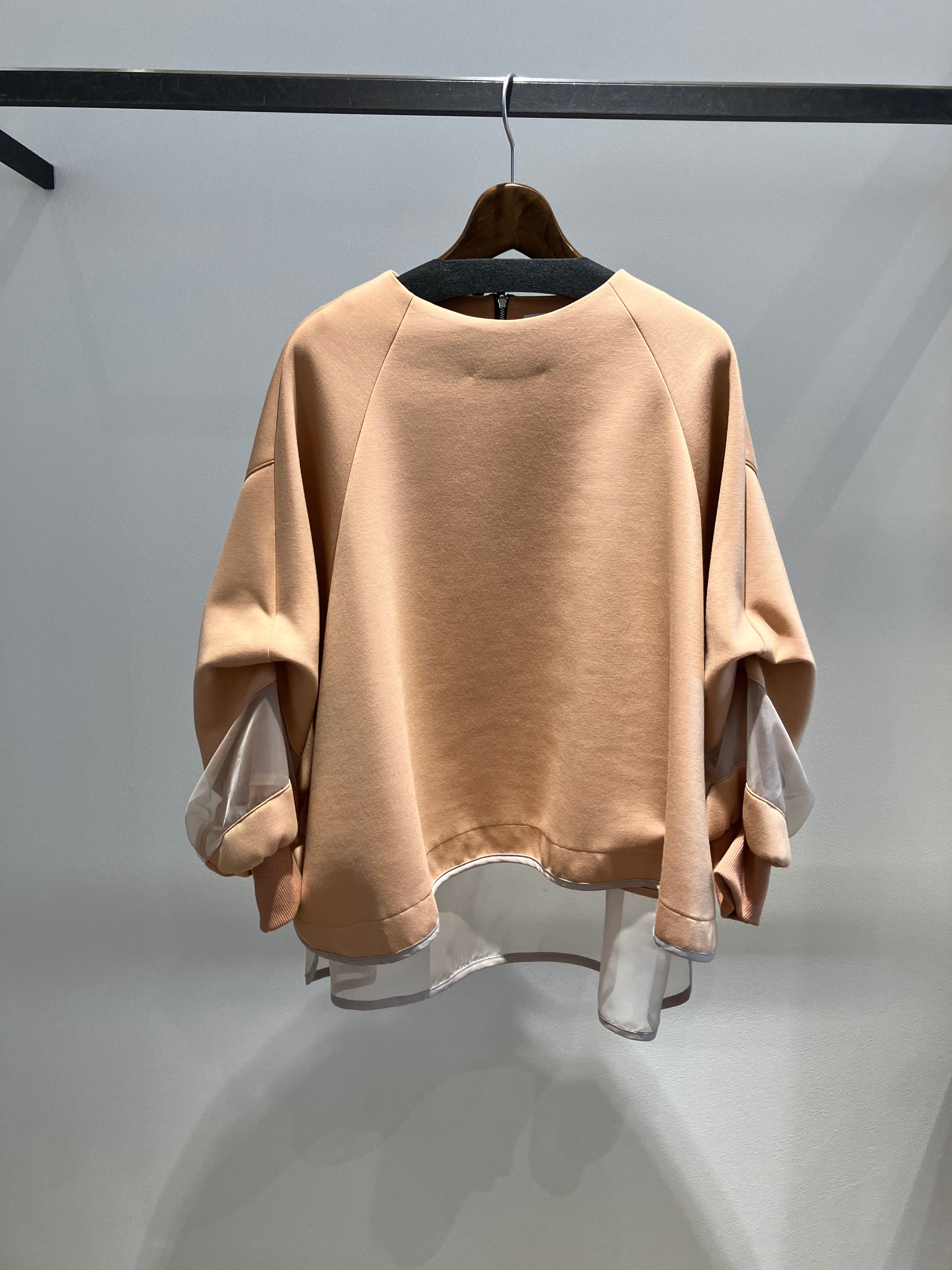 袖にはオーガンジーをドッキングし、透けで抜け感をプラス。