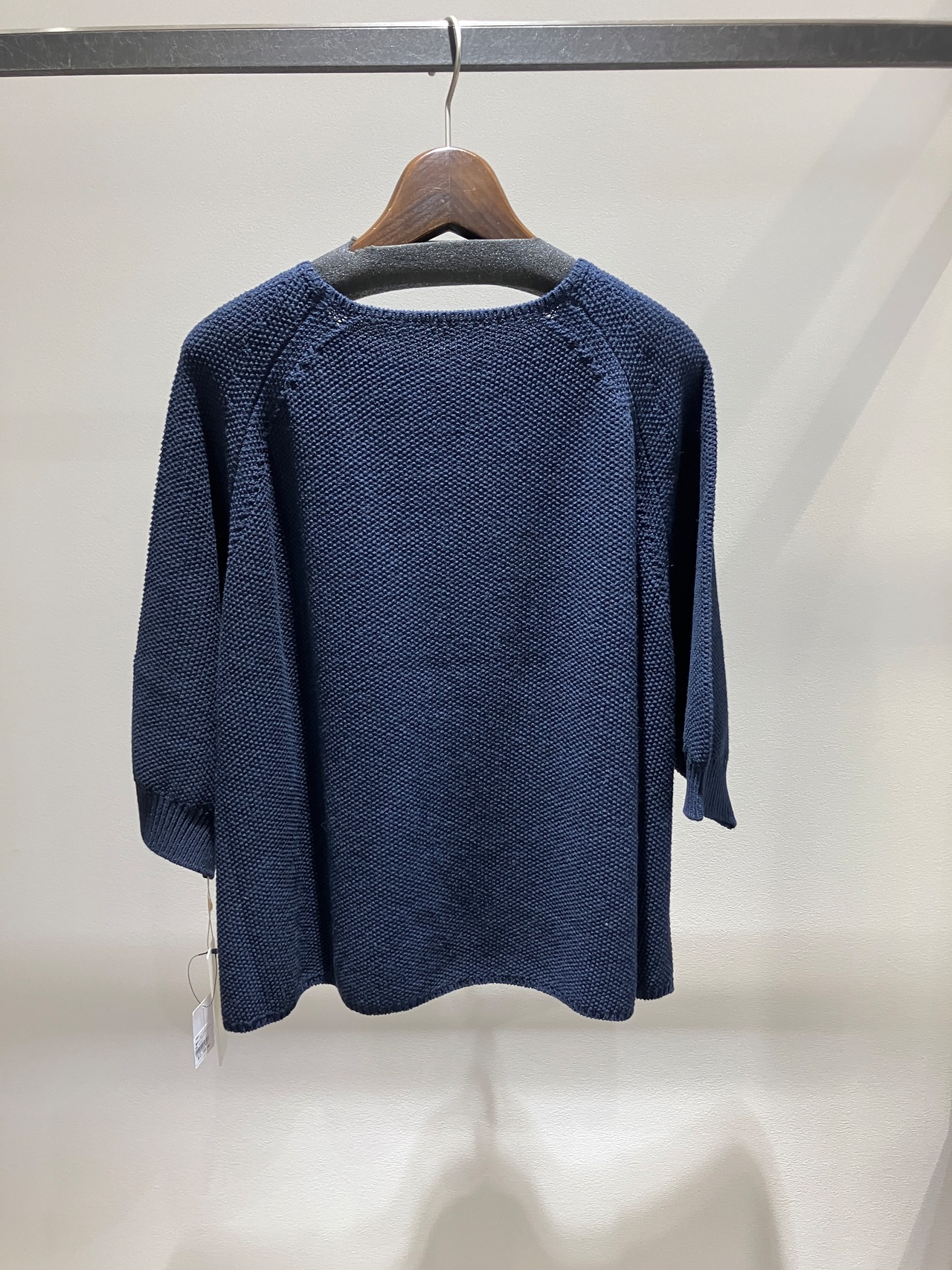表面に細やかな凹凸感のある鹿の子編みを採用し、肌離れが良くシャリっとした清涼感のある肌触りに仕上げたサマーニット。肩周りを華奢に見せてくれるラグランスリーブのデザインが、ワイドな身幅と相まって、大人の余裕を感じさせるリラクシーなシルエットを描きます。安心感のある五分袖は、気になる二の腕をスマートにカバーしつつ、手元をすっきりと見せてくれる絶妙な丈感。シンプルながらも編み地の表情が際立ち、きれいめなスラックスからカジュアルなデニムまで、合わせるボトムスを選ばず洗練されたデイリースタイルを叶えてくれる一着です。