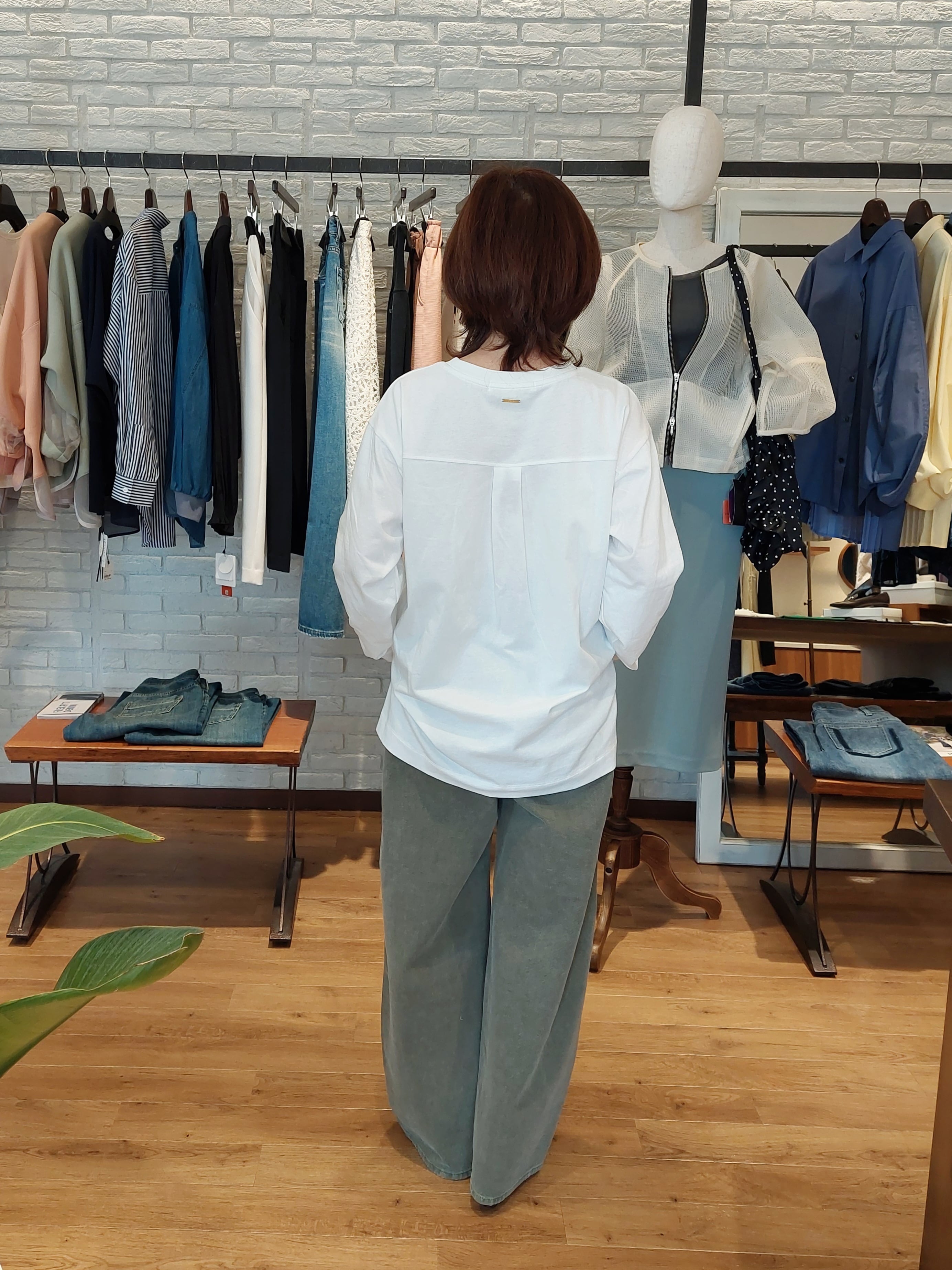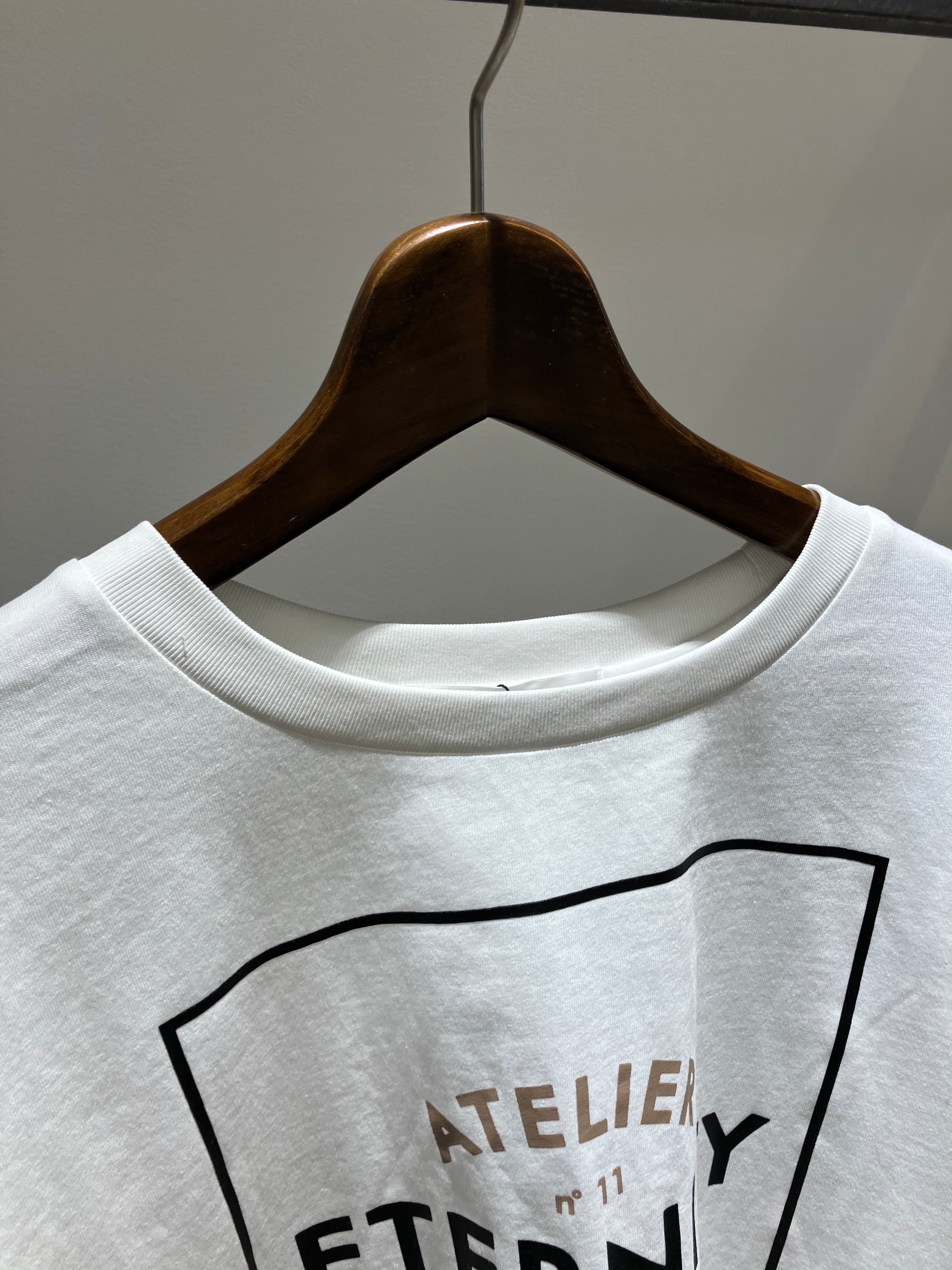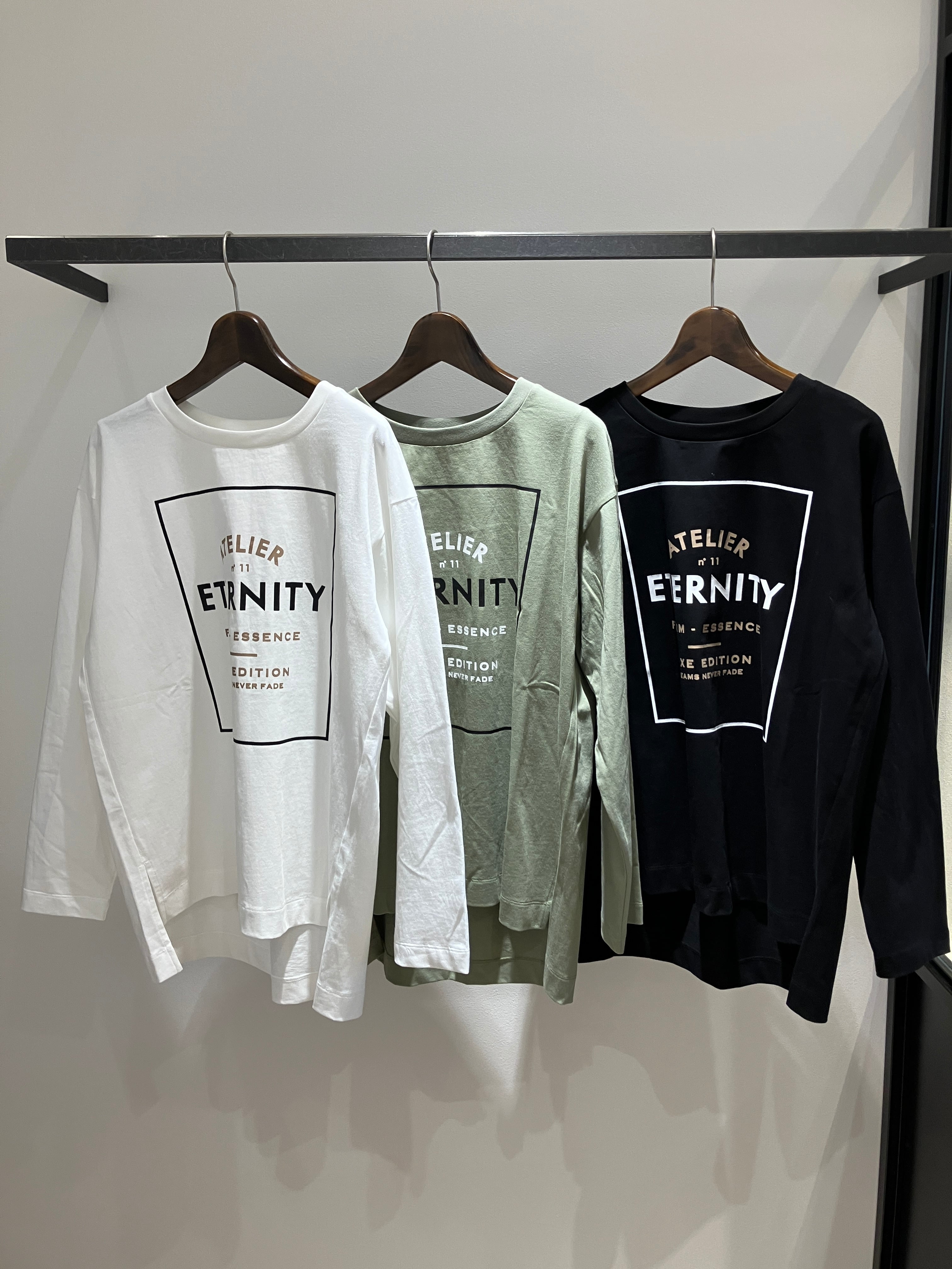 カジュアルの定番を大人の仕様に。洗練された書体のボックスロゴを配し、きれいめな印象に仕上げました。上質な素材感で着心地も抜群。ジャケットやカーディガンのインナーとしても品よく決まる万能アイテムです。2種類のプリント技法を使って立体感のある表情にしています。