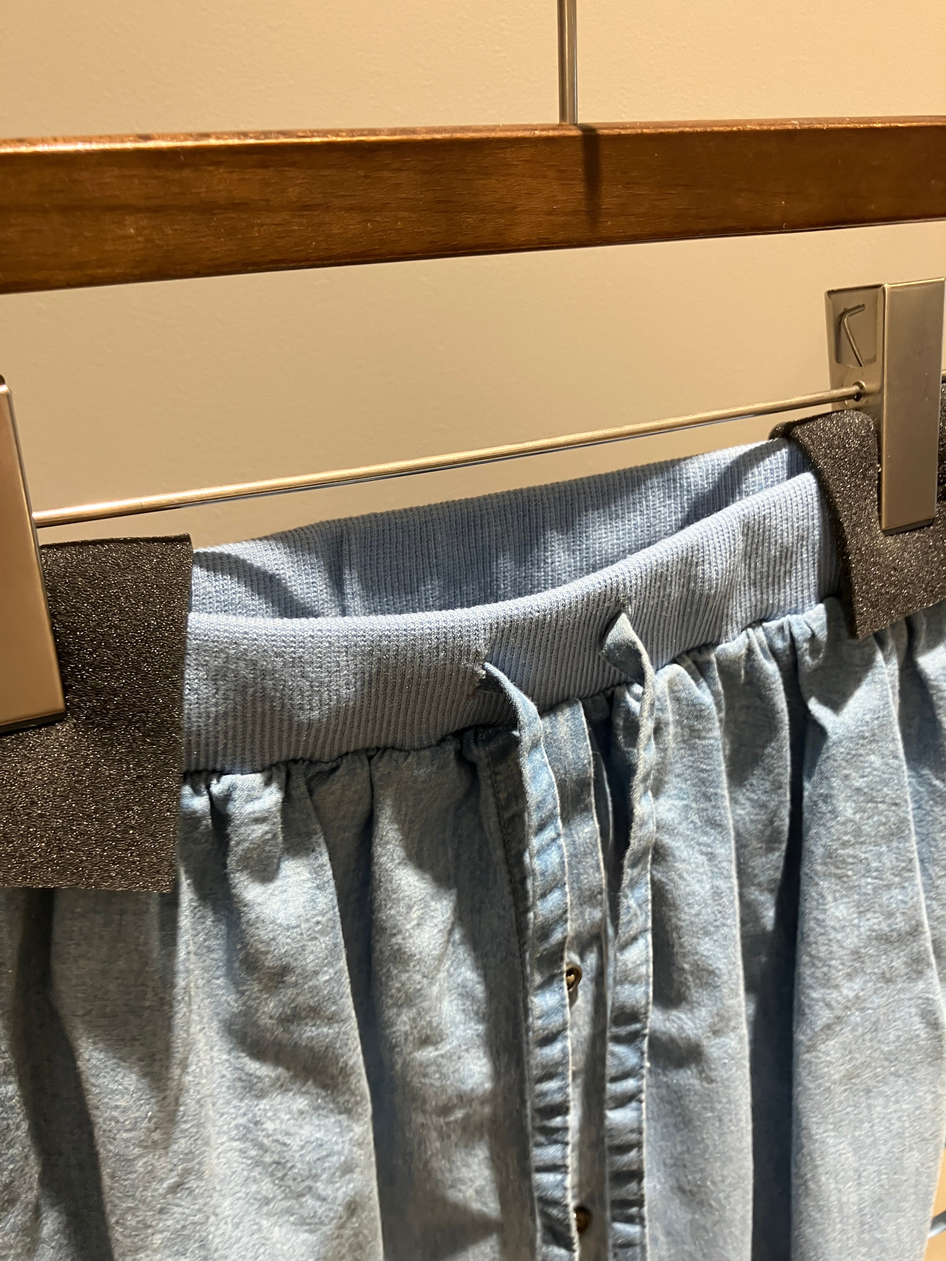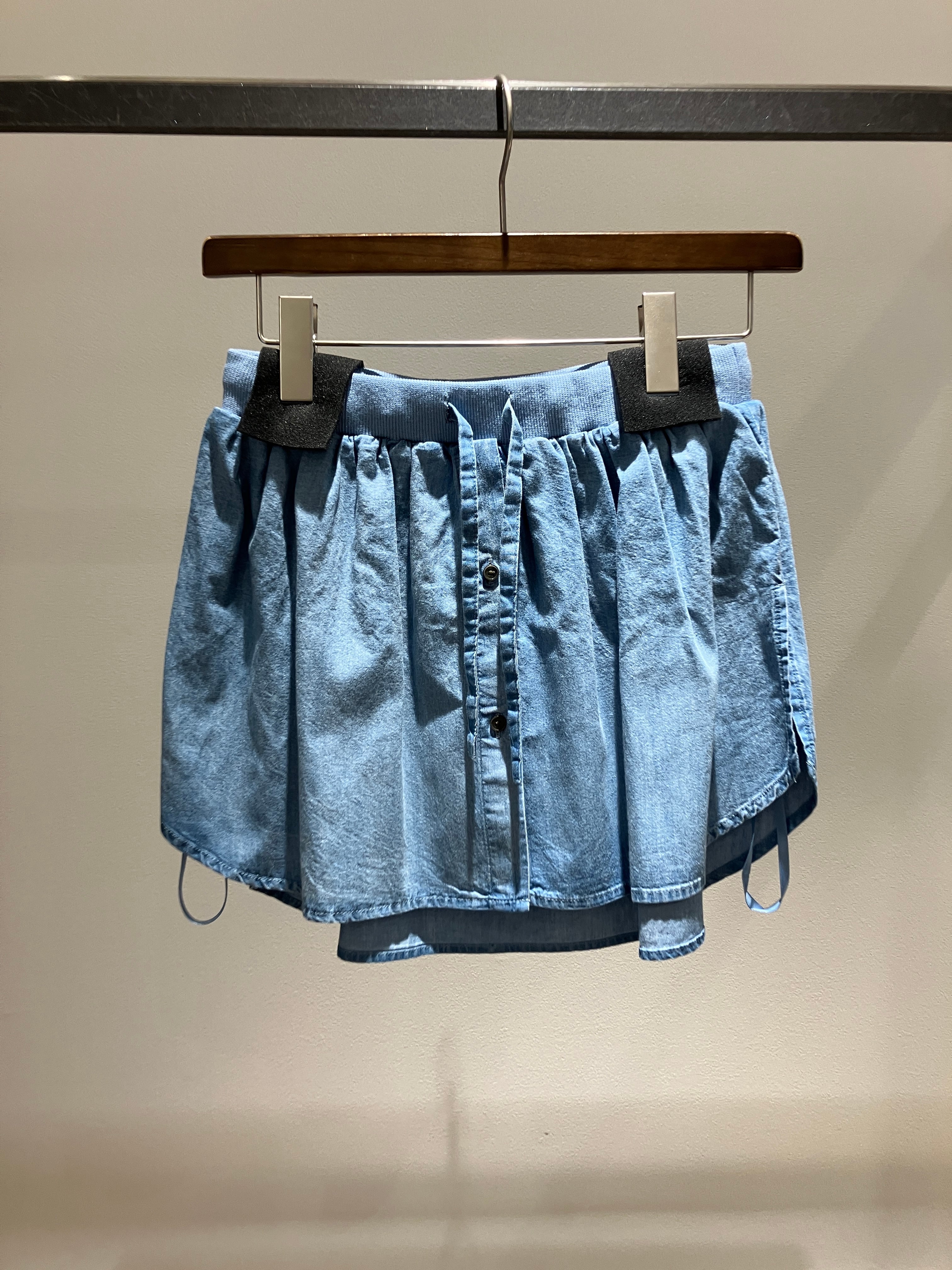 一着でこなれ感のある重ね着風デザインが完成する、遊び心の効いたデニムシャツ。セットになった付属のスカートを合わせると、気になる腰回りをカバーしつつ、今季らしいレイヤードシルエットへと様変わりします。もちろんシャツ単体としても優秀で、袖口リブ仕様にすることで、袖をまくった時もしっかり止まり、ニュアンスのある手元をキープ。カジュアルなデニム素材ながらも計算されたディテールが光り、その日の気分やボトムスに合わせて自由にアレンジを楽しめる、ワードローブの新定番にふさわしい一着です。
