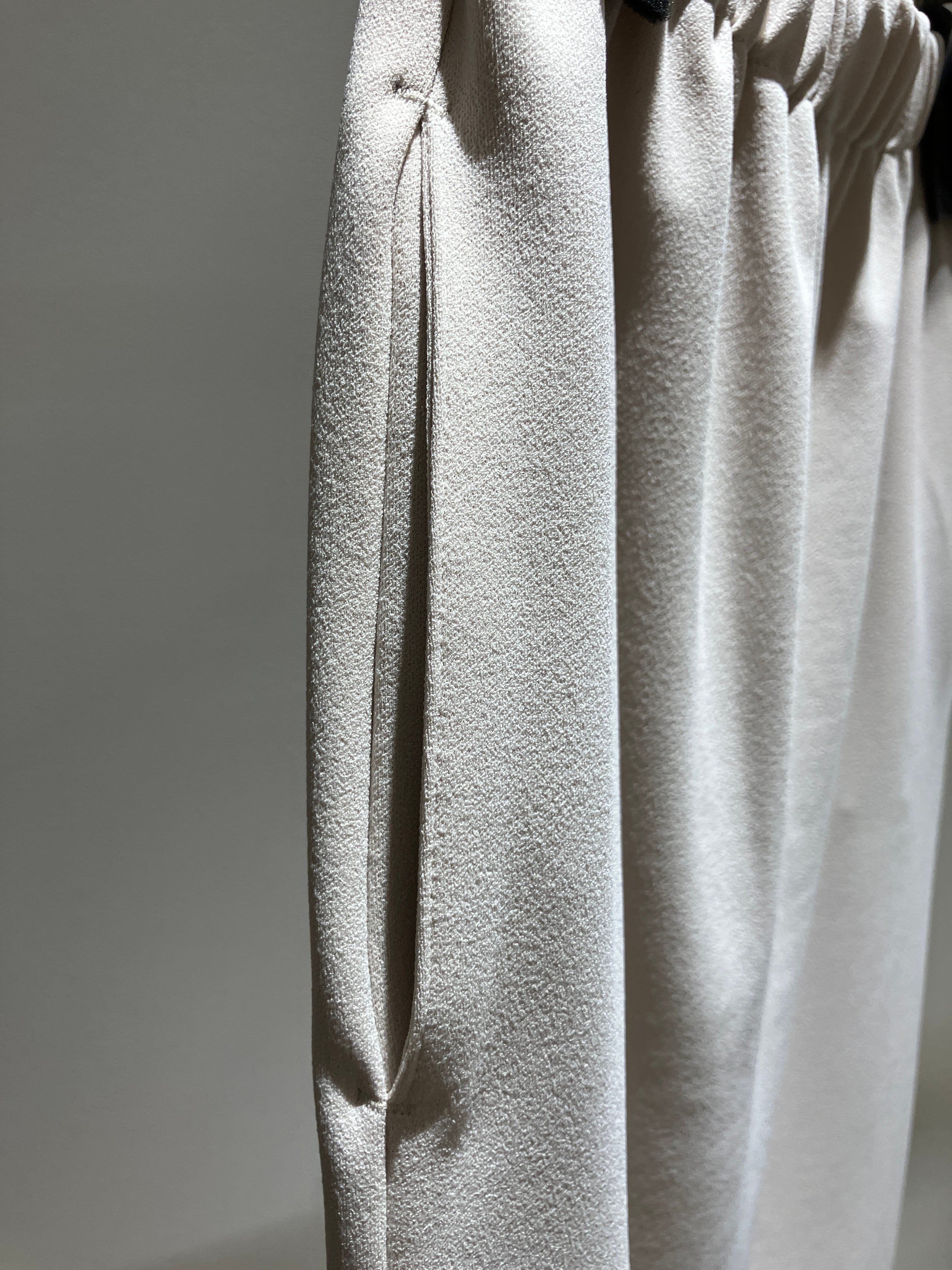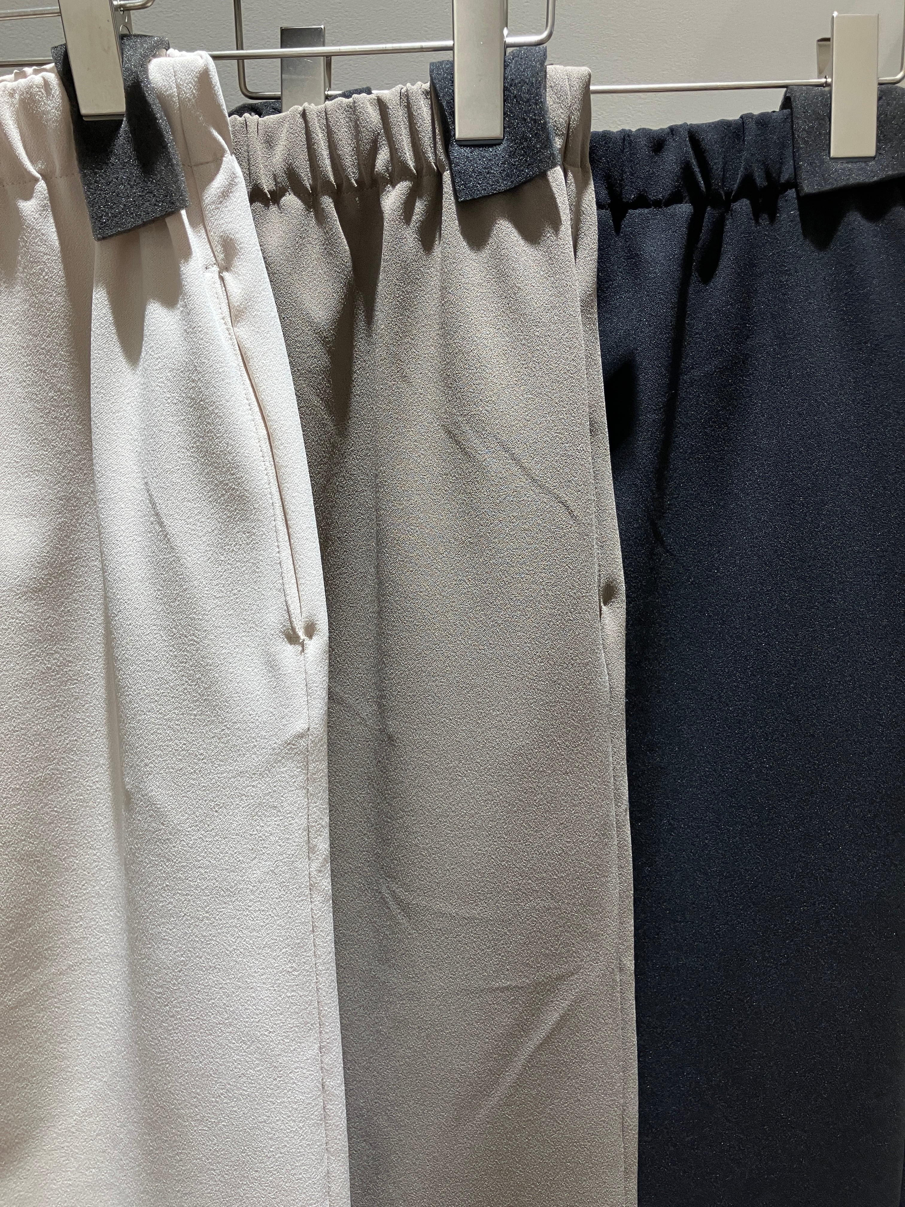 まるできれい目ジョーゼットの布帛(ふはく)のように、きちんと見える上品な質感が魅力のアイラインスカート。実はシワになりにくく、伸縮性に優れたジャージ素材を使用しており、一日中アクティブに動いてもノンストレスな穿き心地を叶えます。程よい生地の厚みと落ち感があるため、気になる身体のラインを拾わず、スッキリ見えるアイラインシルエットをキープ。やや短めのロング丈が足元に軽やかさと上品な印象をプラスし、さらにスリット入りで足さばきも抜群です。デイリーなお出かけから、少し背筋を伸ばしたいオフィスシーンまで幅広く活躍する、まさに「パーフェクト」な一着です。