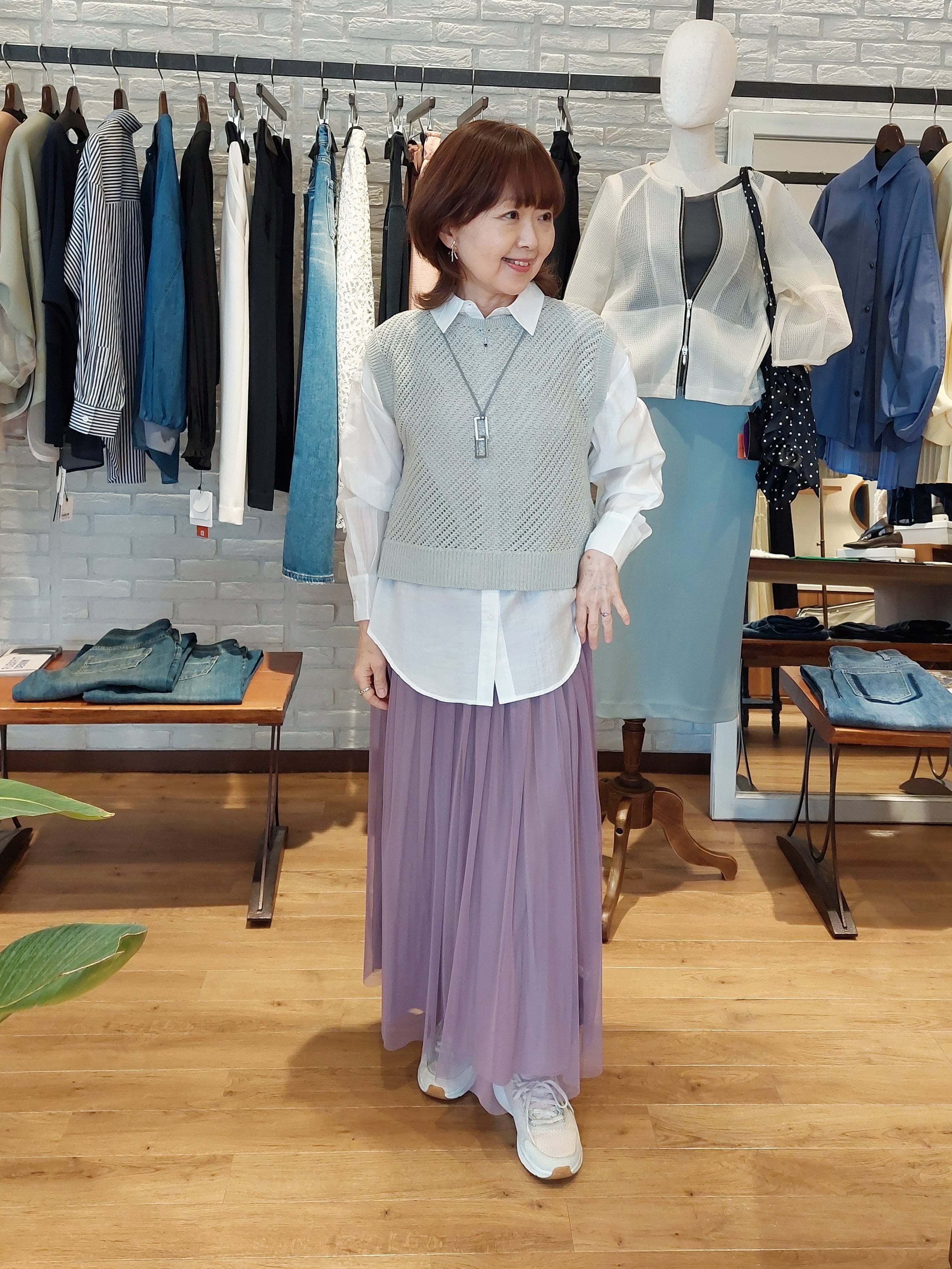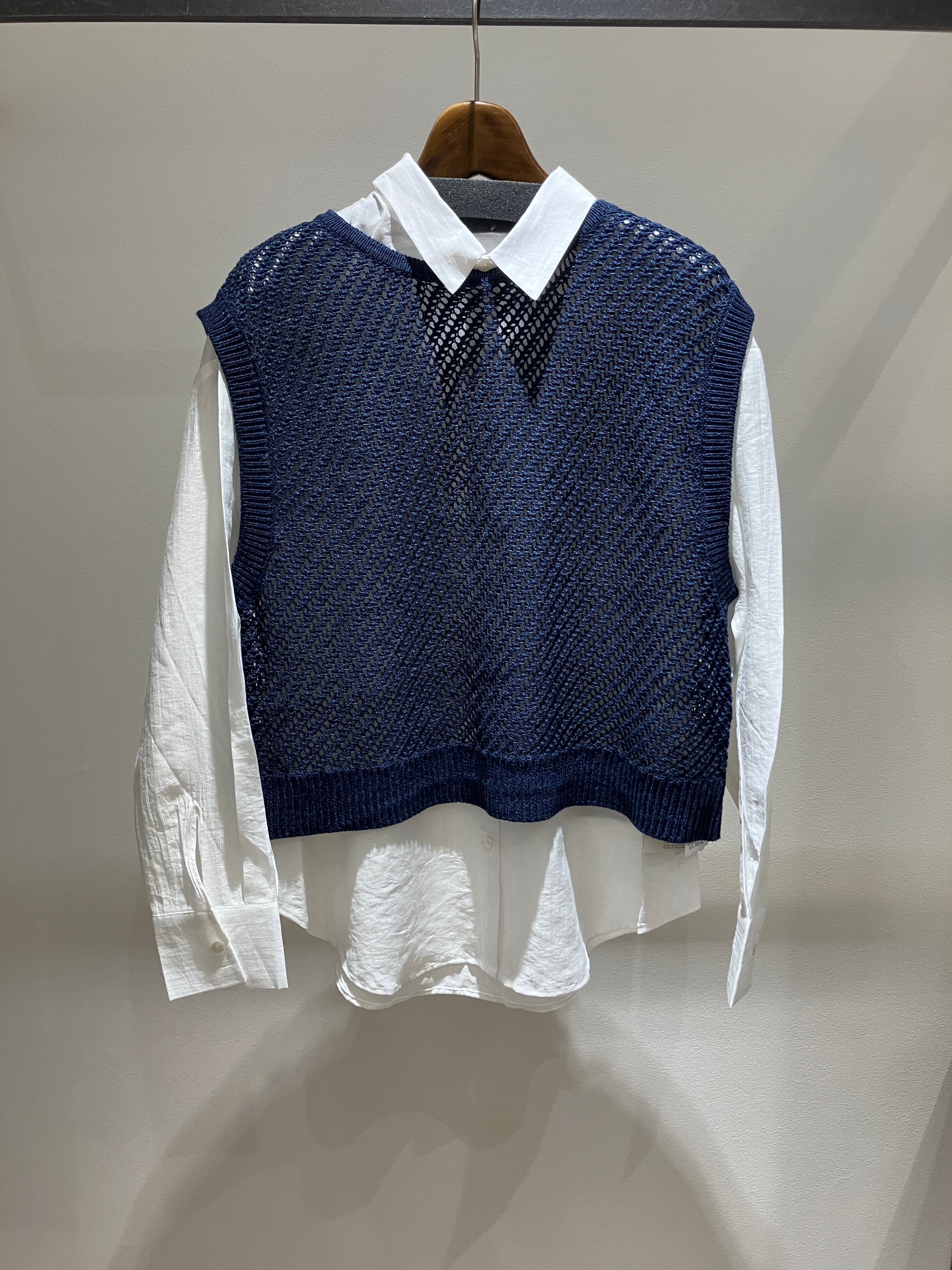旬のメッシュ素材を使用したニットベストとシャツのアンサンブル。セットで着るだけで、計算された奥行きのあるレイヤードスタイルが即座に完成します。メッシュの軽やかな表情が魅力のベストは、バックシャンなリボンデザインがアクセント。後ろ姿まで抜かりなく、女性らしい華やかさを演出します。インナーのシャツは、セルロース混の滑らかな肌触りが心地よく、上品な落ち感が大人っぽい印象に。それぞれ単品使いも可能なので、お手持ちのアイテムと合わせて幅広い着こなしを楽しめる、着回し力抜群の優秀なセットアイテムです。