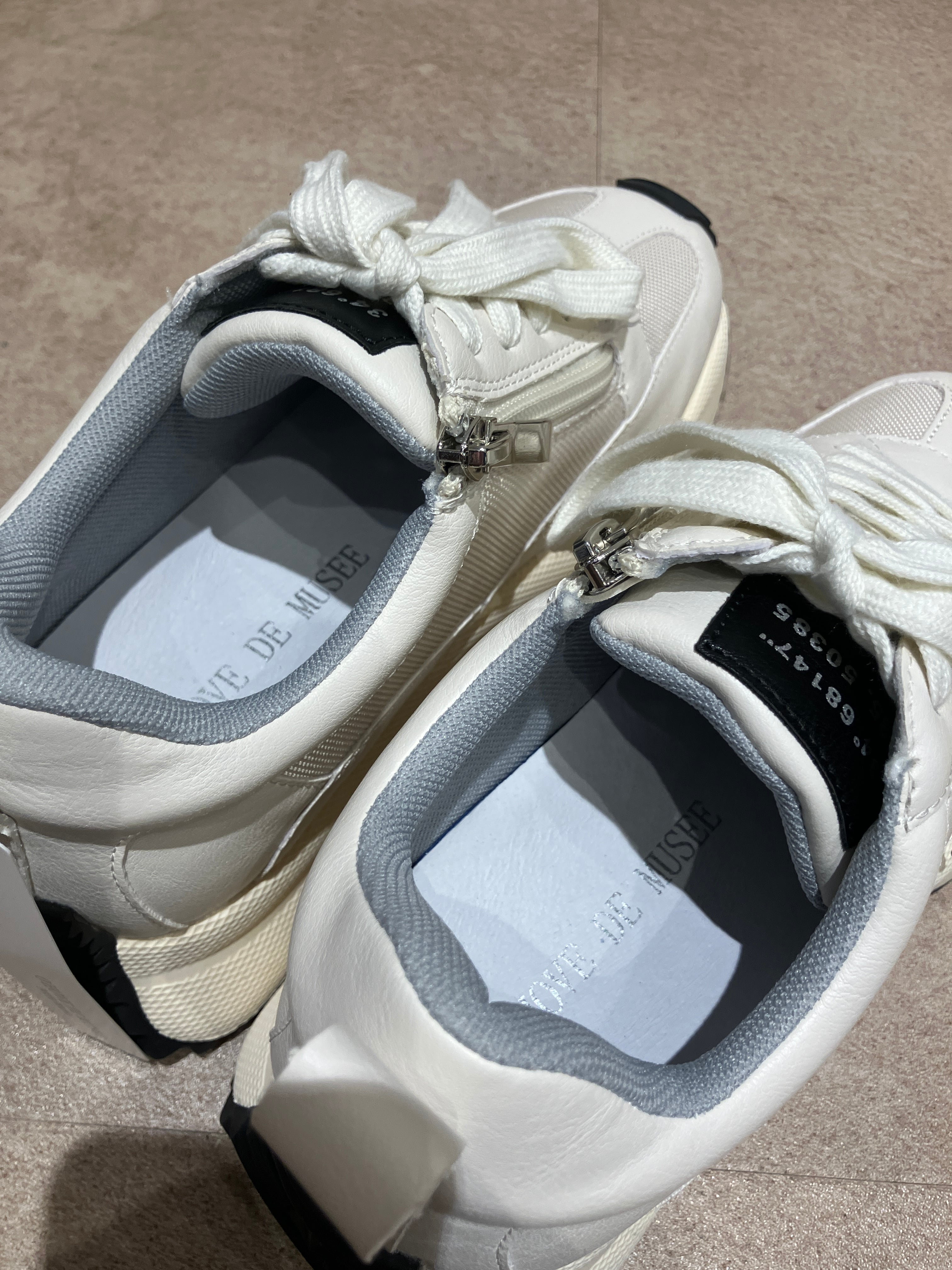 異素材を組み合わせた立体的なデザインが、足元に程よいボリューム感をプラスするメッシュコンビスニーカー。スタイルアップを叶える厚底ソールは、クッション性にも優れており、長時間歩いても疲れにくい快適な穿き心地を実現します。最大のポイントは、サイドに施されたジップ付きのデザイン。紐を解く手間なくスムーズに着脱できる実用性はちろん、ゴールドのジップがスポーティーな中に上品なアクセントを添えます。デイリーユースからアクティブなシーンまで、幅広いコーディネートに合わせやすい一足です。