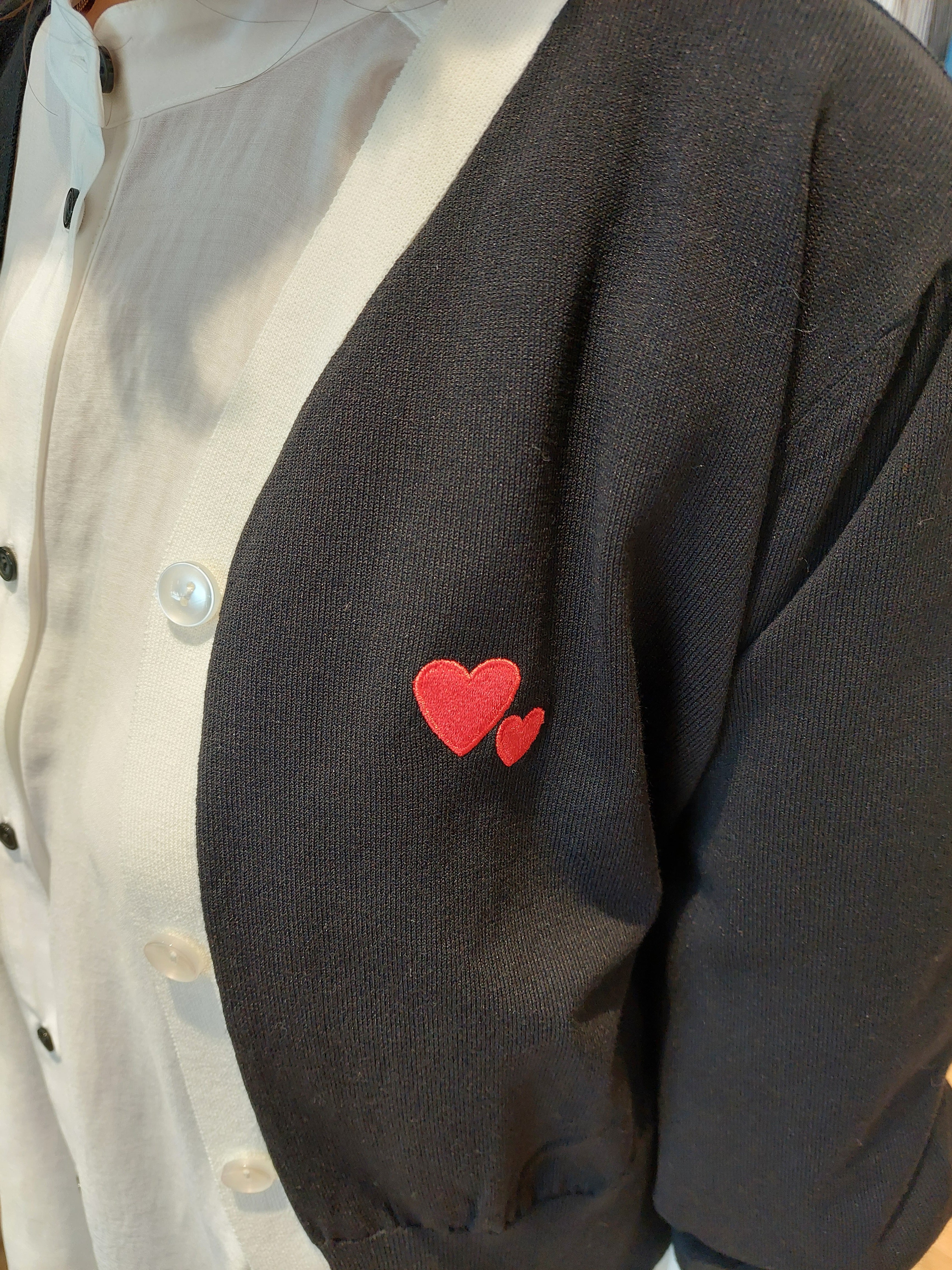 胸元に施された真っ赤なハートの刺繍が、大人可愛いアクセントを添えるニットカーディガン。前立てのバイカラーデザインが、コーディネートにメリハリをプラスし、顔周りをすっきりと印象付けます。素材には、ナイロン混でシャリ感のある素材感を採用。さらりとしたドライな肌触りで、汗ばむ季節もベタつきにくく、快適な着心地をキープします。身体のラインを拾いすぎない程よいゆとりのあるシルエットは、一枚着としてはもちろん、羽織りとしても重宝。シンプルなボトムスを合わせるだけで、存在感のあるスタイルが完成する一着です。