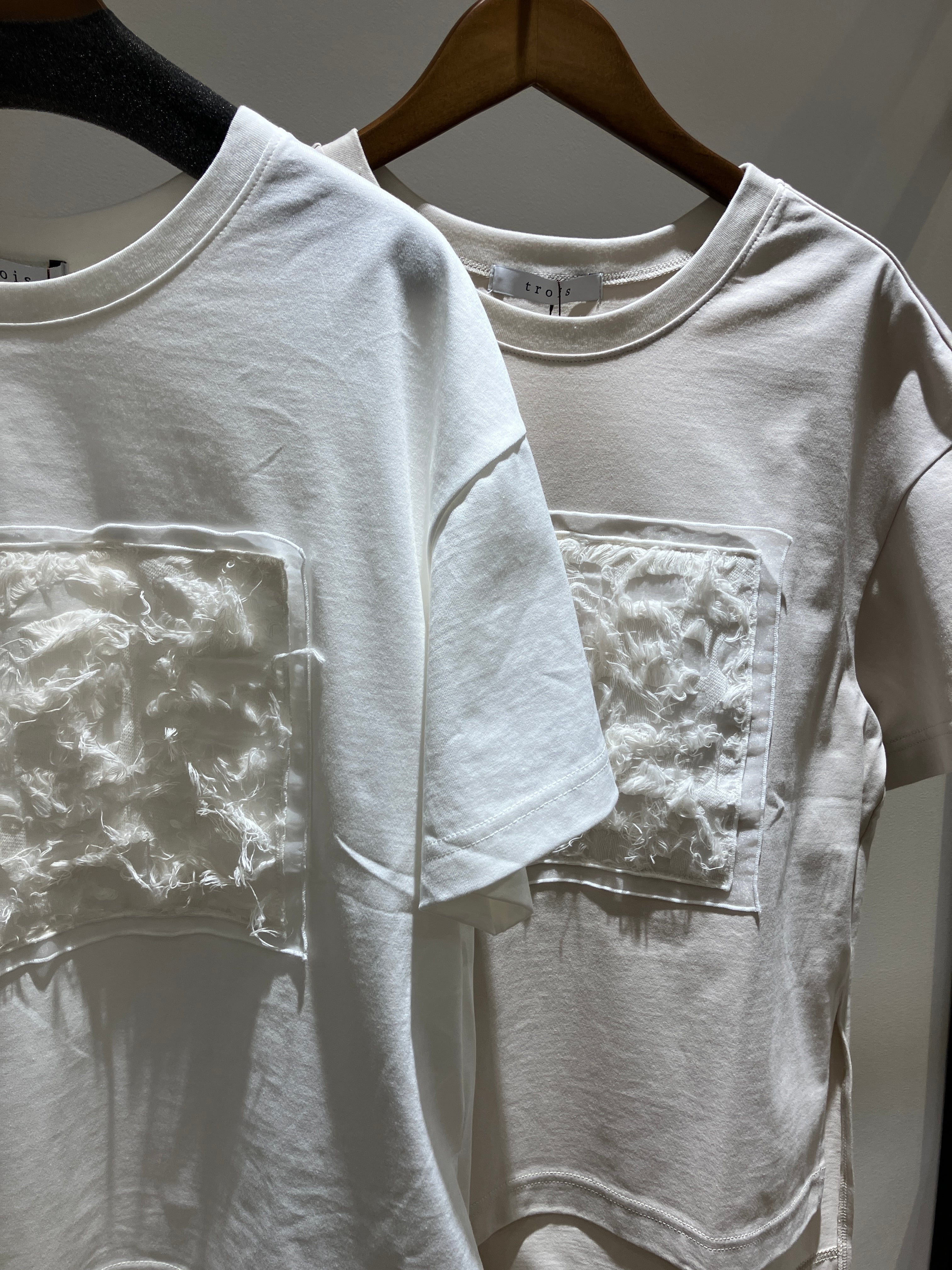 trois トロア / マーセライズ天竺&ジャガード 異素材Tシャツ (T26182057)