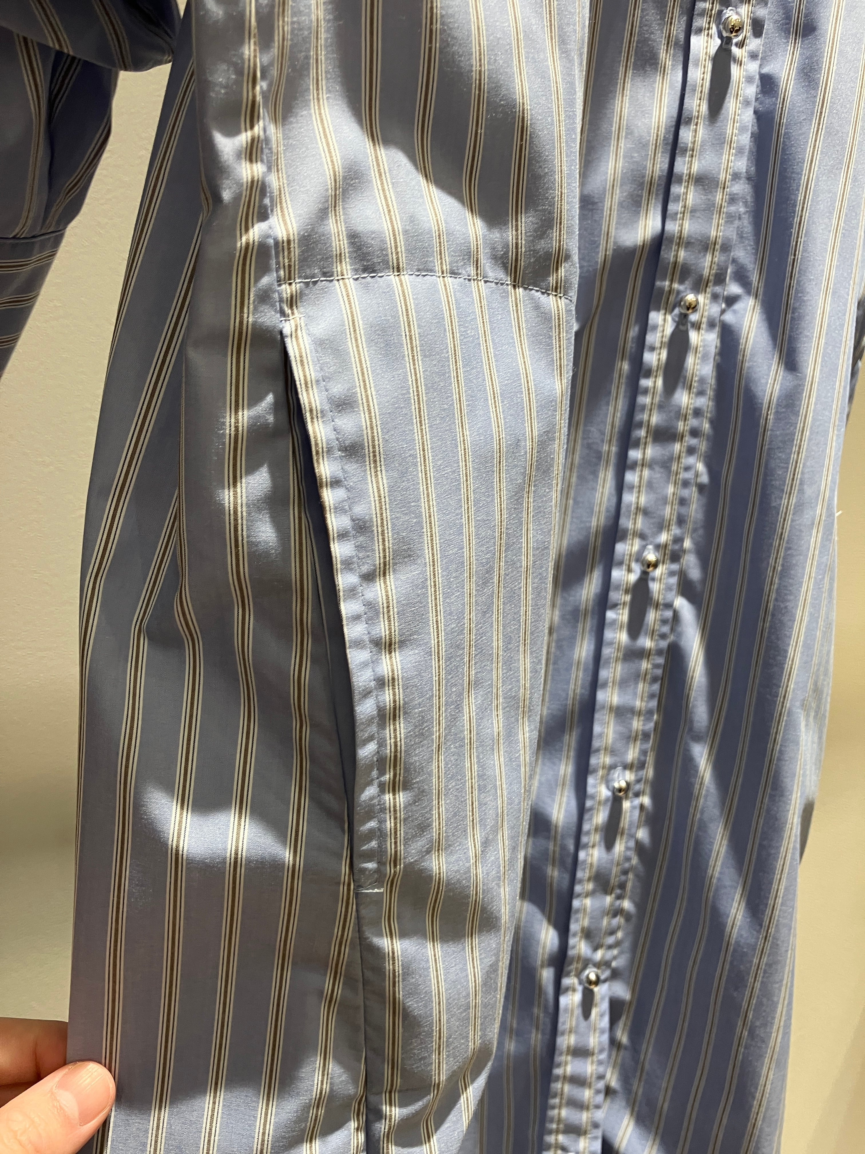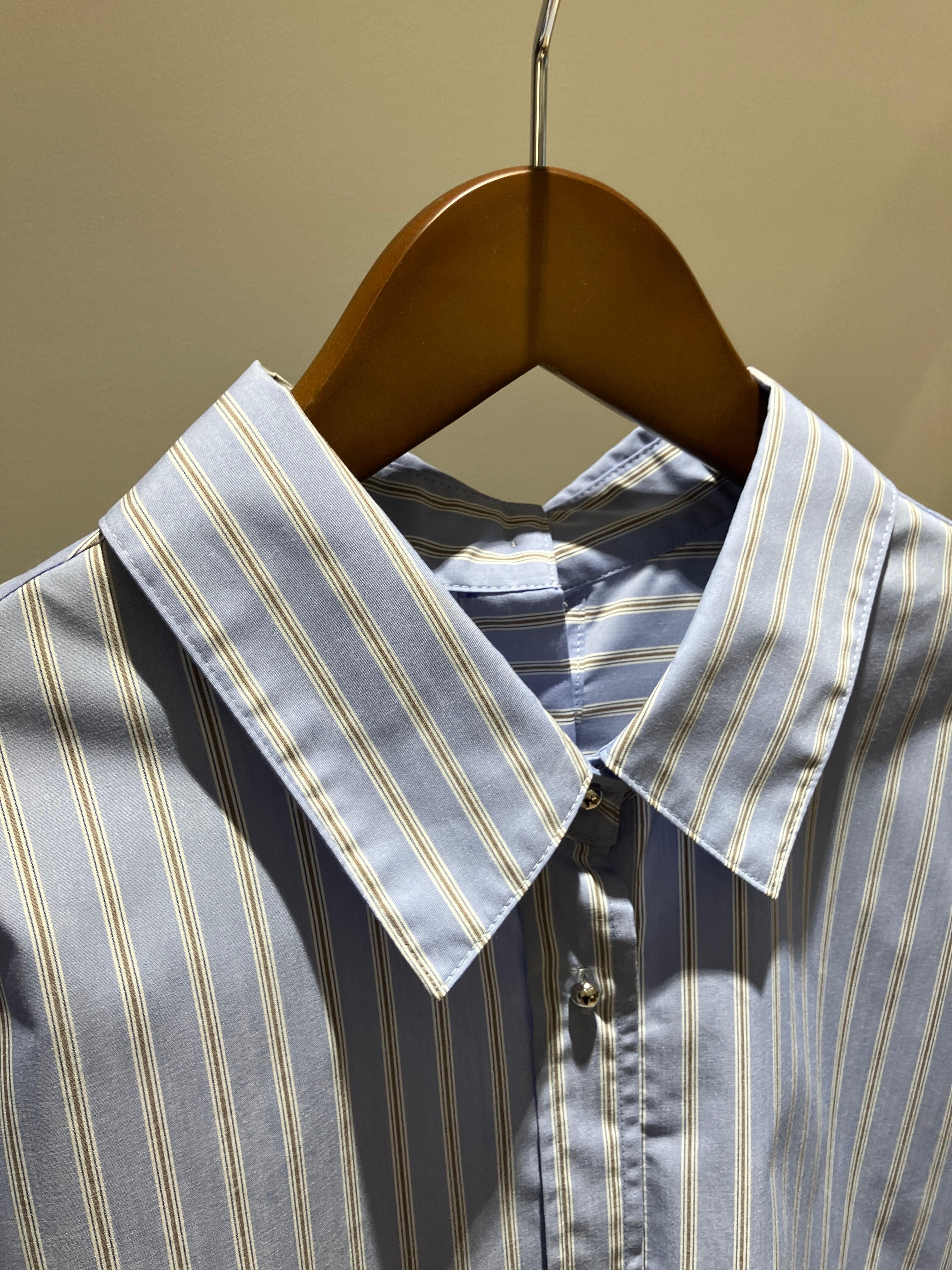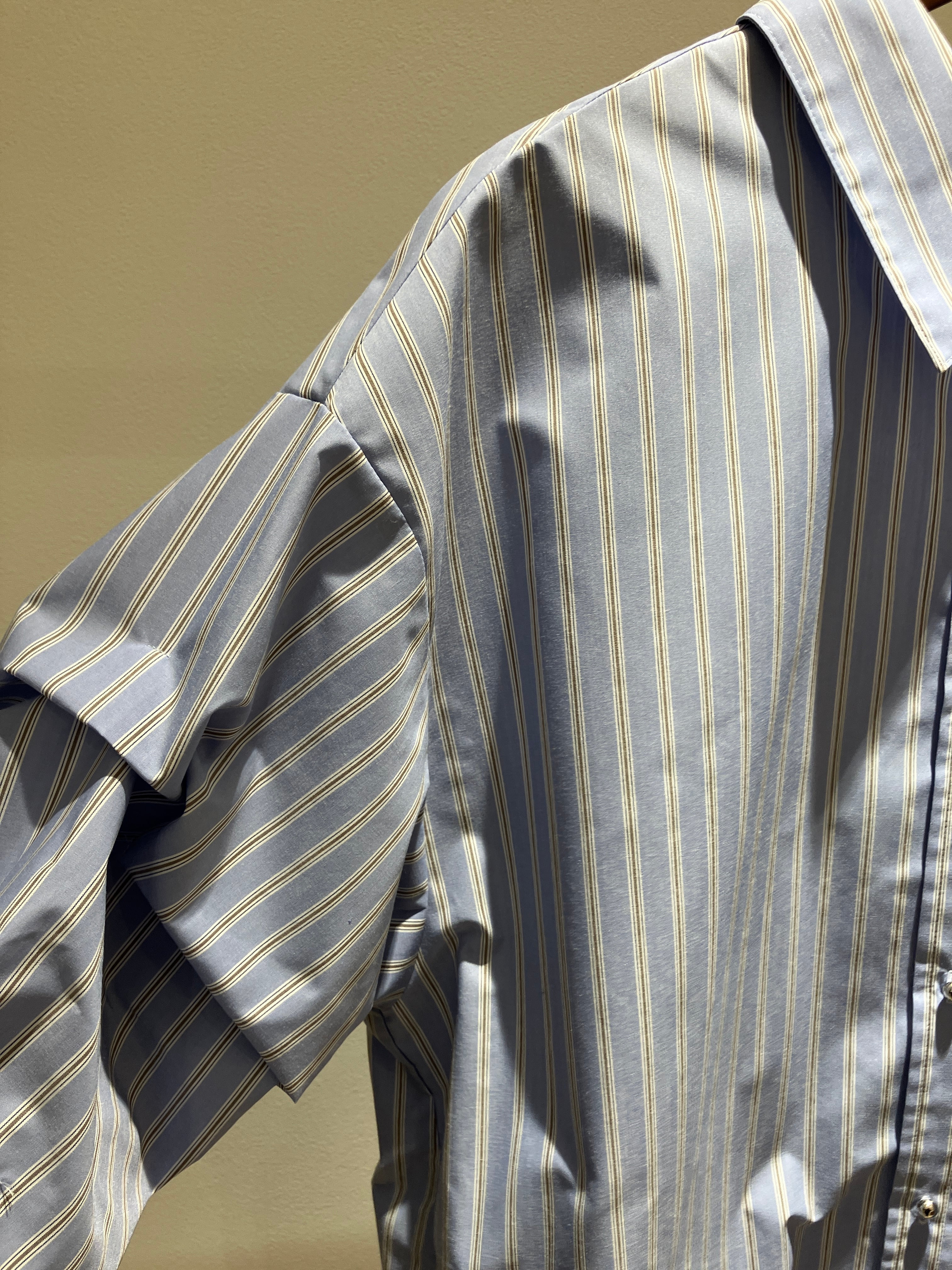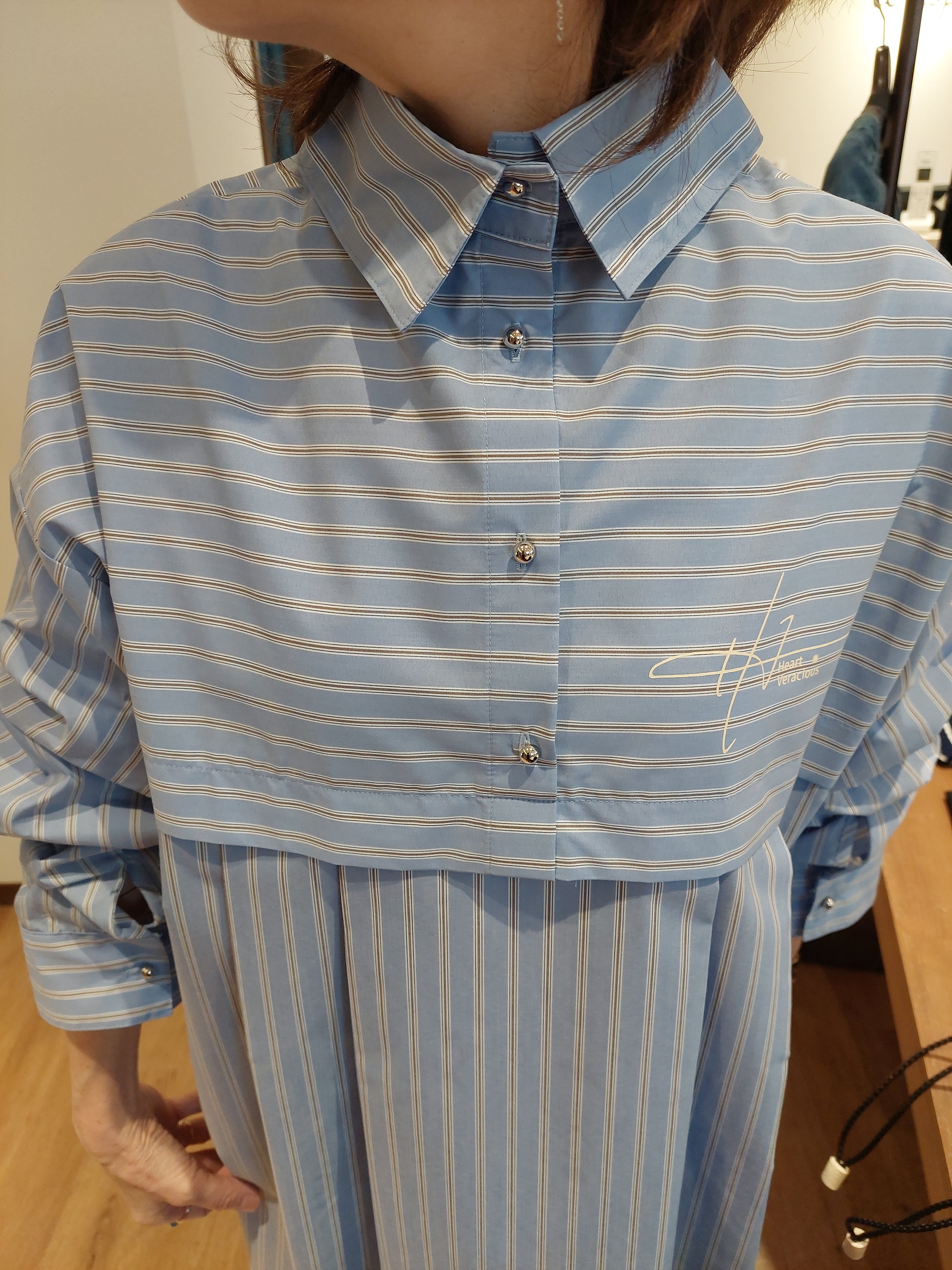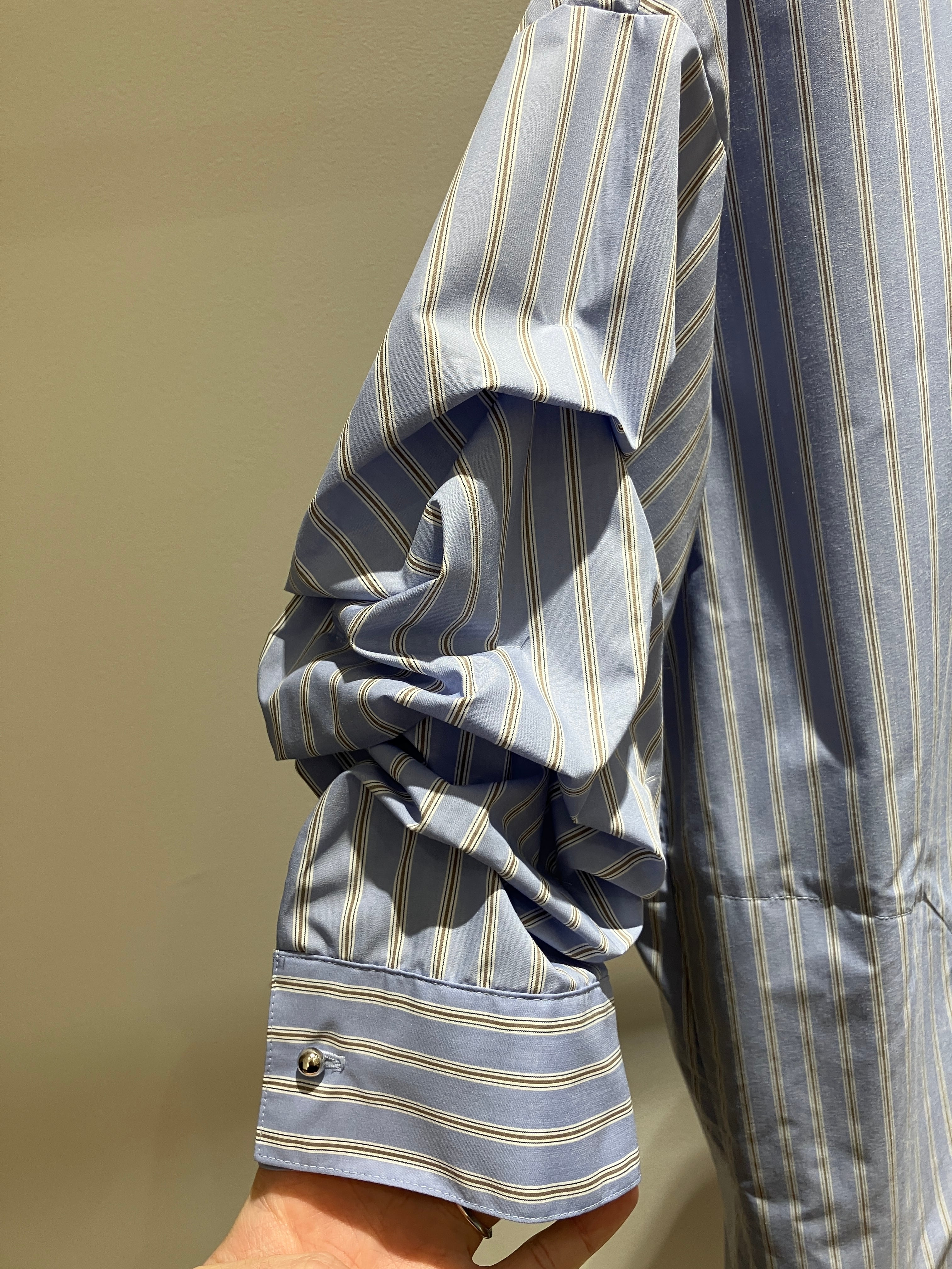 くしゅくしゅスリーブ×こなれシルエット ストライプシャツワンピ
