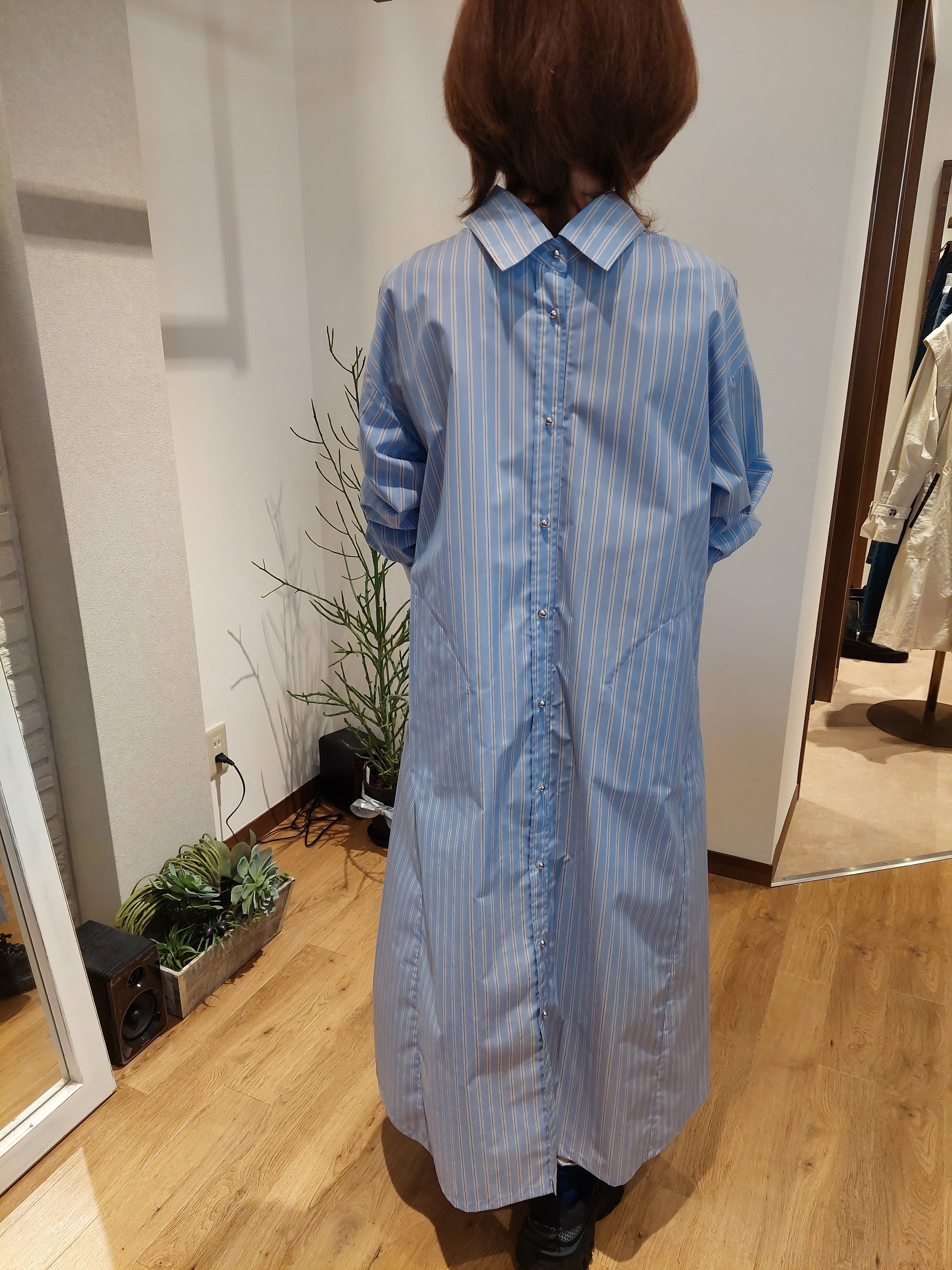 スタイルアップが叶うストライプ柄のシャツワンピースです。