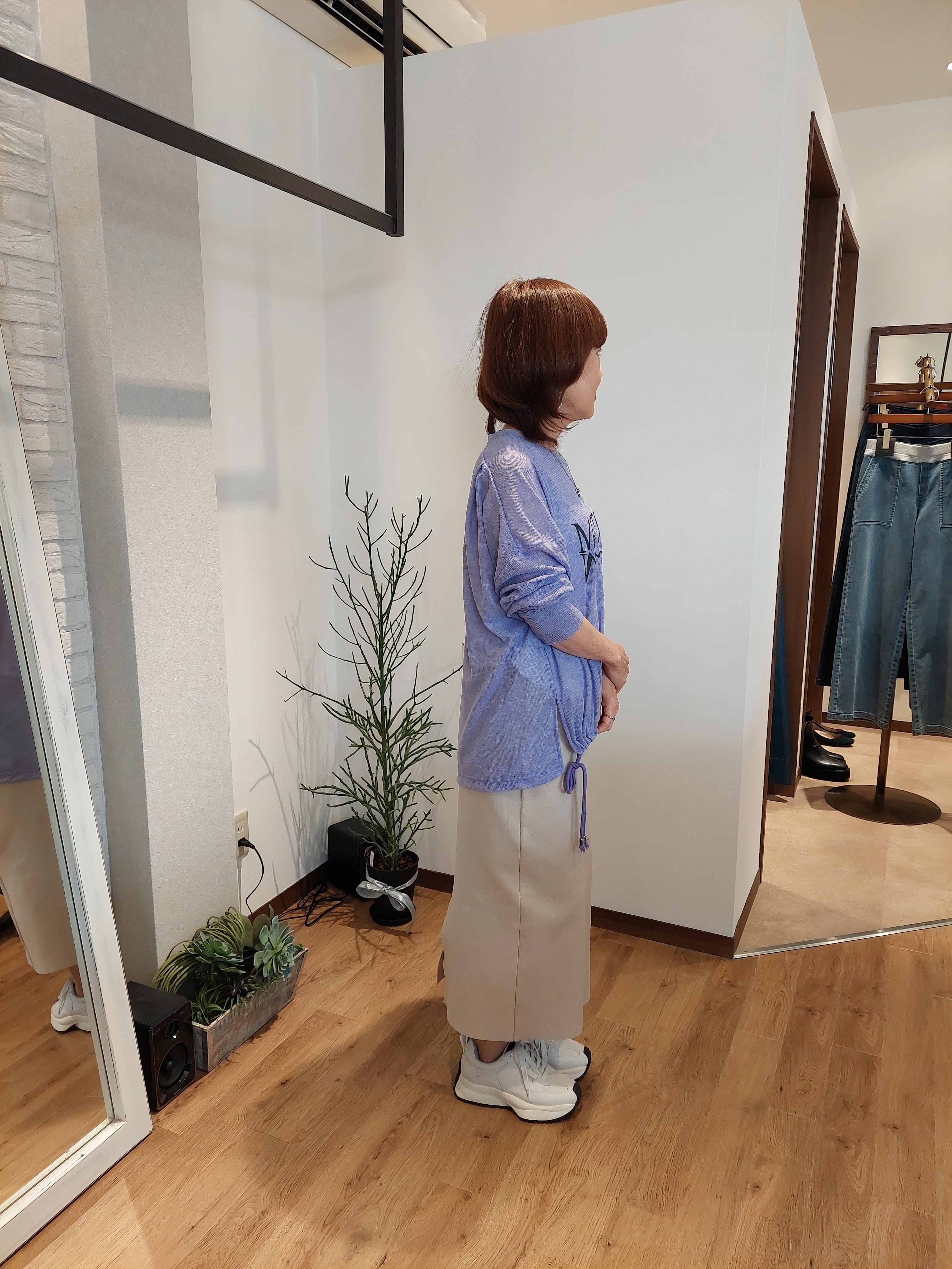 着こなしに旬の抜け感を与える、ソフトメッシュ素材を使用したプルオーバー。いつものカットソーやシャツに重ねるだけで、ぐっと今年らしい印象に。軽やかで柔らかな素材感と透け感が魅力のトレンドアイテムです。裾のドロストを絞ってシルエットに変化をつけることもでき、シアーアイテムも立体的なデザインがLallia Muらしいこだわりです。プリントは製法上、自然なムラが出る仕様です。