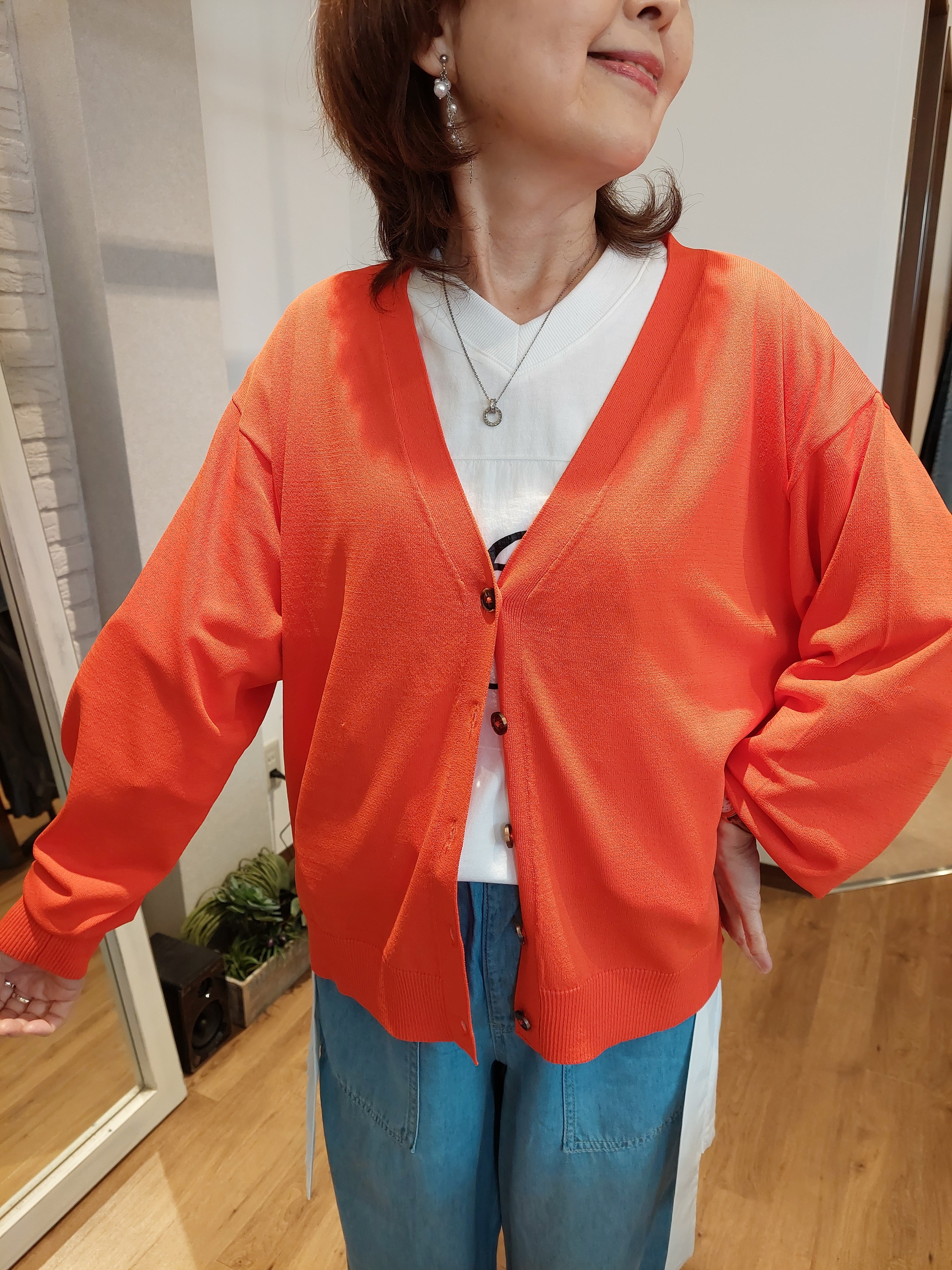 纏うだけで気分が上がる、春らしいカラーバリエーションが魅力のニットカーディガン。無駄を削ぎ落としたシンプルなデザインだからこそ、発色の良さとシルエットの美しさが際立ちます。素材には、滑らかな肌触りのレーヨンナイロンを使用しており、ひんやりとした接触冷感性と程よい落ち感が特徴。さらりとした質感でシワになりにくく、バッグに忍ばせて外出時の体温調節や日除けとしても重宝します。ボタンを閉じてプルオーバー風に着こなしたり、肩掛けしてコーディネートのアクセントにしたりと、春のワードローブに彩りを添えてくれる万能な一着です。