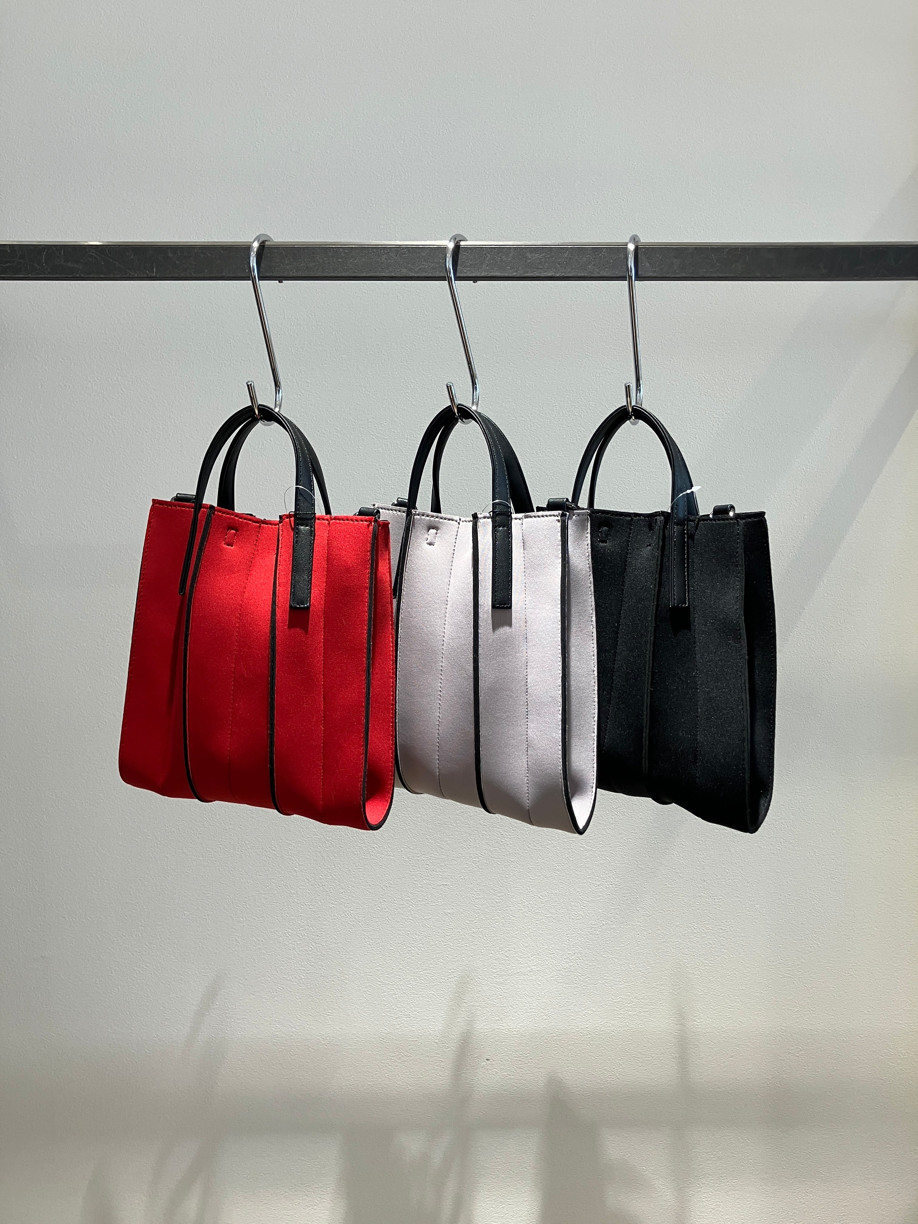 繊細なプリーツ加工が施された、立体感のある表情が魅力のミニバッグ。手に馴染む柔らかい生地感に仕上げることで、ハードになりすぎず女性らしく優しい印象を演出します。付属のショルダーストラップ付なので、その日のスタイルに合わせて手持ちと斜め掛けの2wayで楽しめるのも嬉しいポイント。ミニマルなサイズ感ながら、プリーツの伸縮性によって見た目以上の収納力を発揮します。コーディネートに華やかさと軽やかさを添えてくれる、アクセサリー感覚で持ち歩きたい旬のアイテムです。