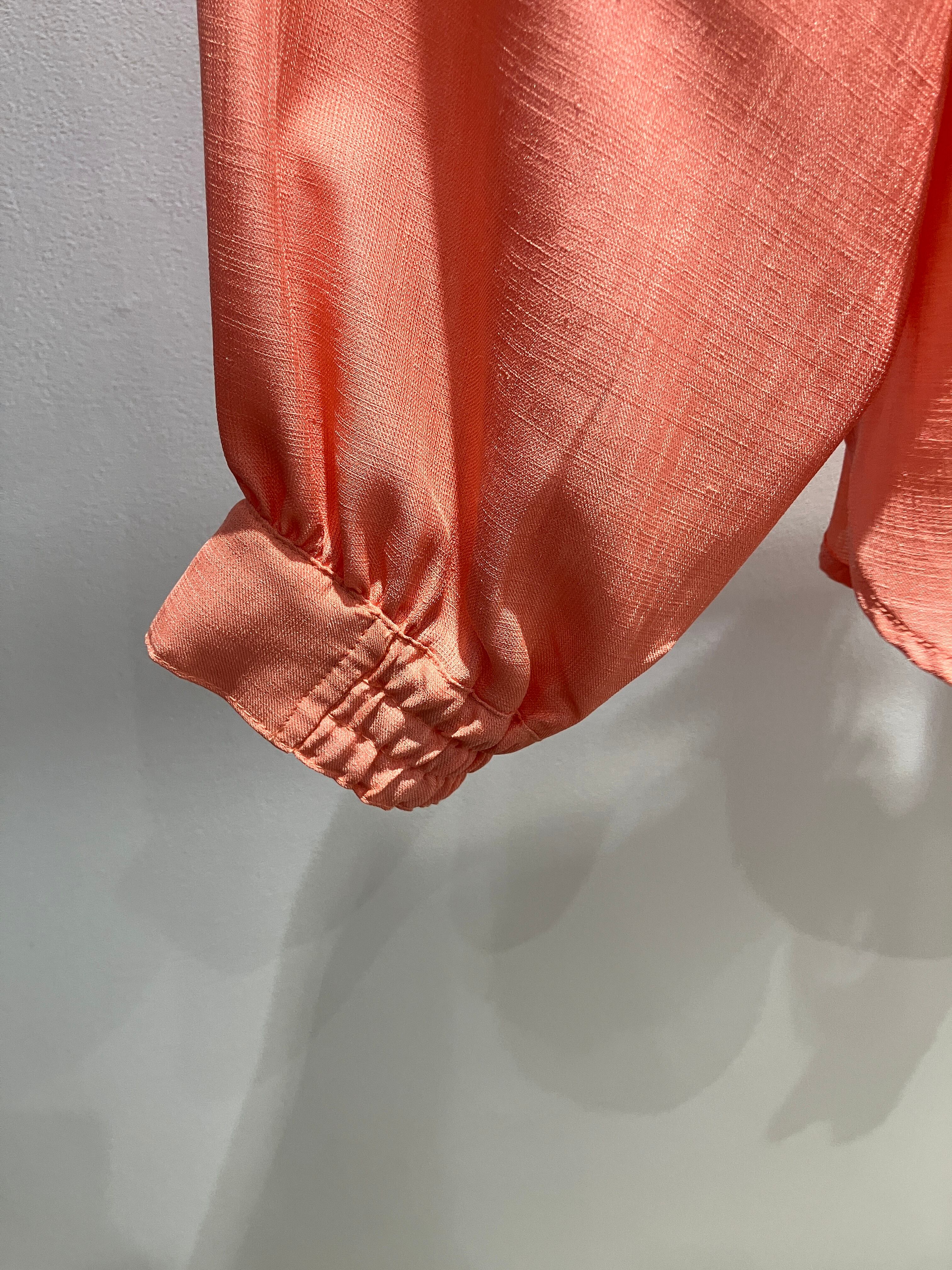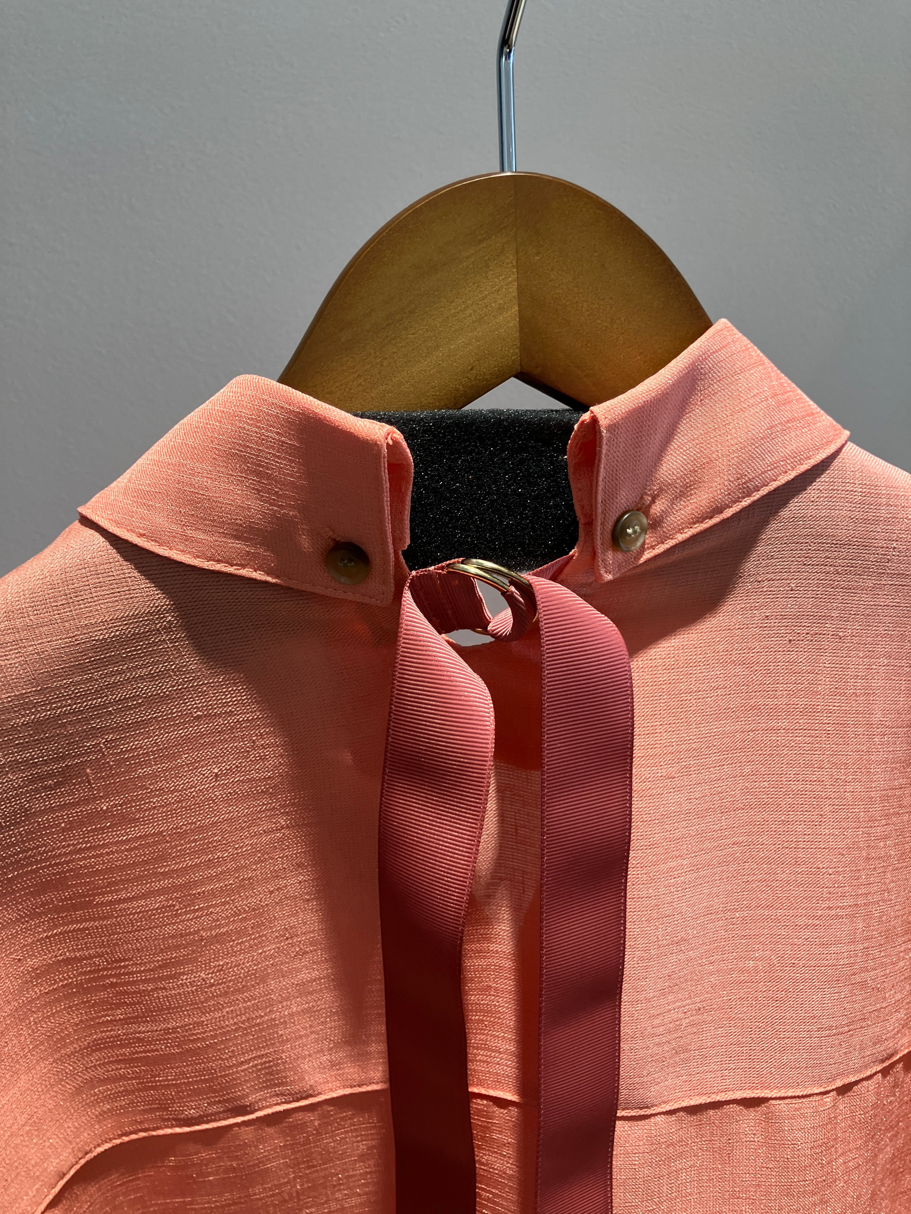 バックリボンでアクセントを添えたデザインブラウス。