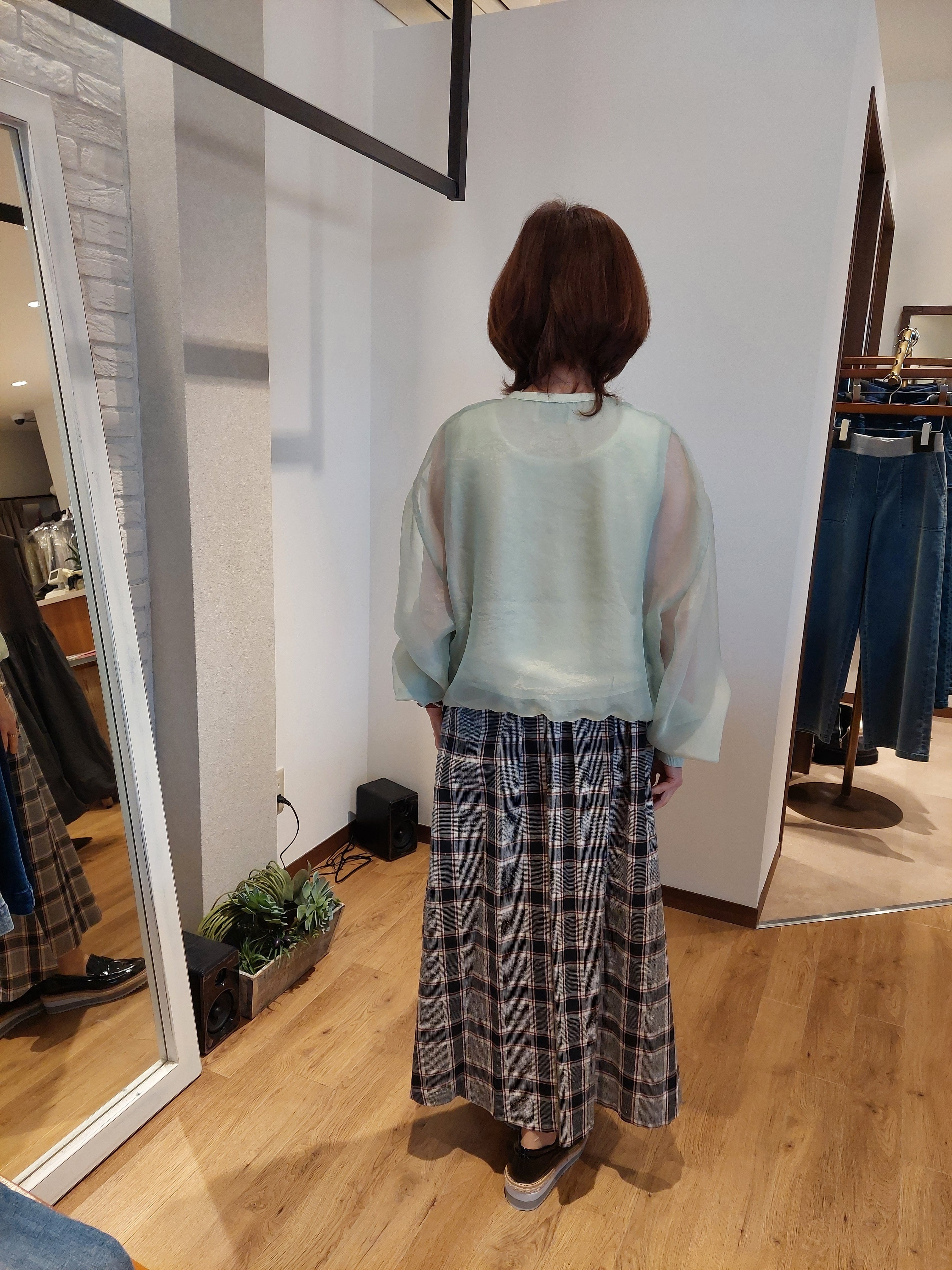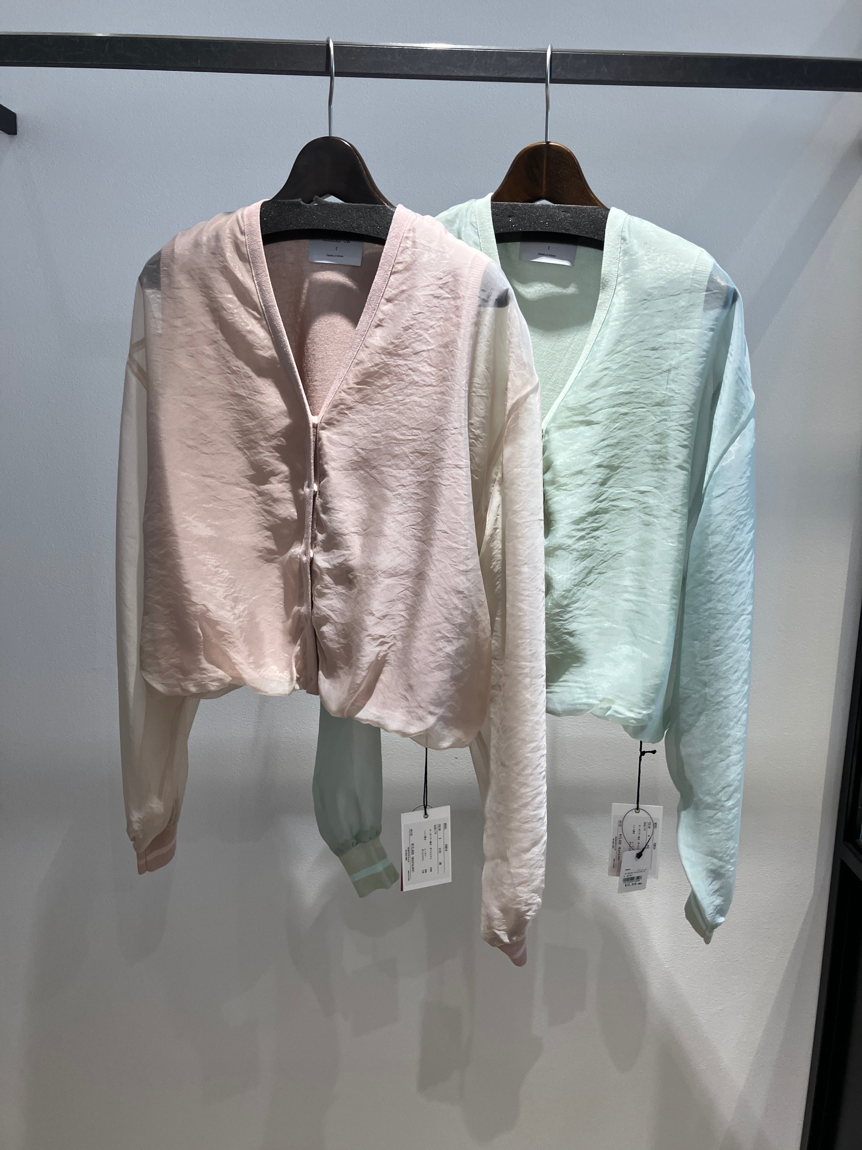 柔らかなニットの上にオーガンジーを重ねた、贅沢な異素材使いが魅力のVネックカーディガン。身頃を二重にすることで、程よいハリ感と奥行きのある上品な光沢が生まれ、纏うだけで洗練された印象に。最大のポイントは、袖部分に現れるドラマティックなシアーカーデの透明感。肌を美しく透かせ、春夏の装いに軽やかさと抜け感をプラスします。さらに、袖口リブ仕様にすることで、袖をたくし上げた際もしっかりと止まり、ニュアンスのある手元をキープ。冷房対策や日除けとしても重宝する、機能性とデザイン性を兼ね備えた優秀な一着です。