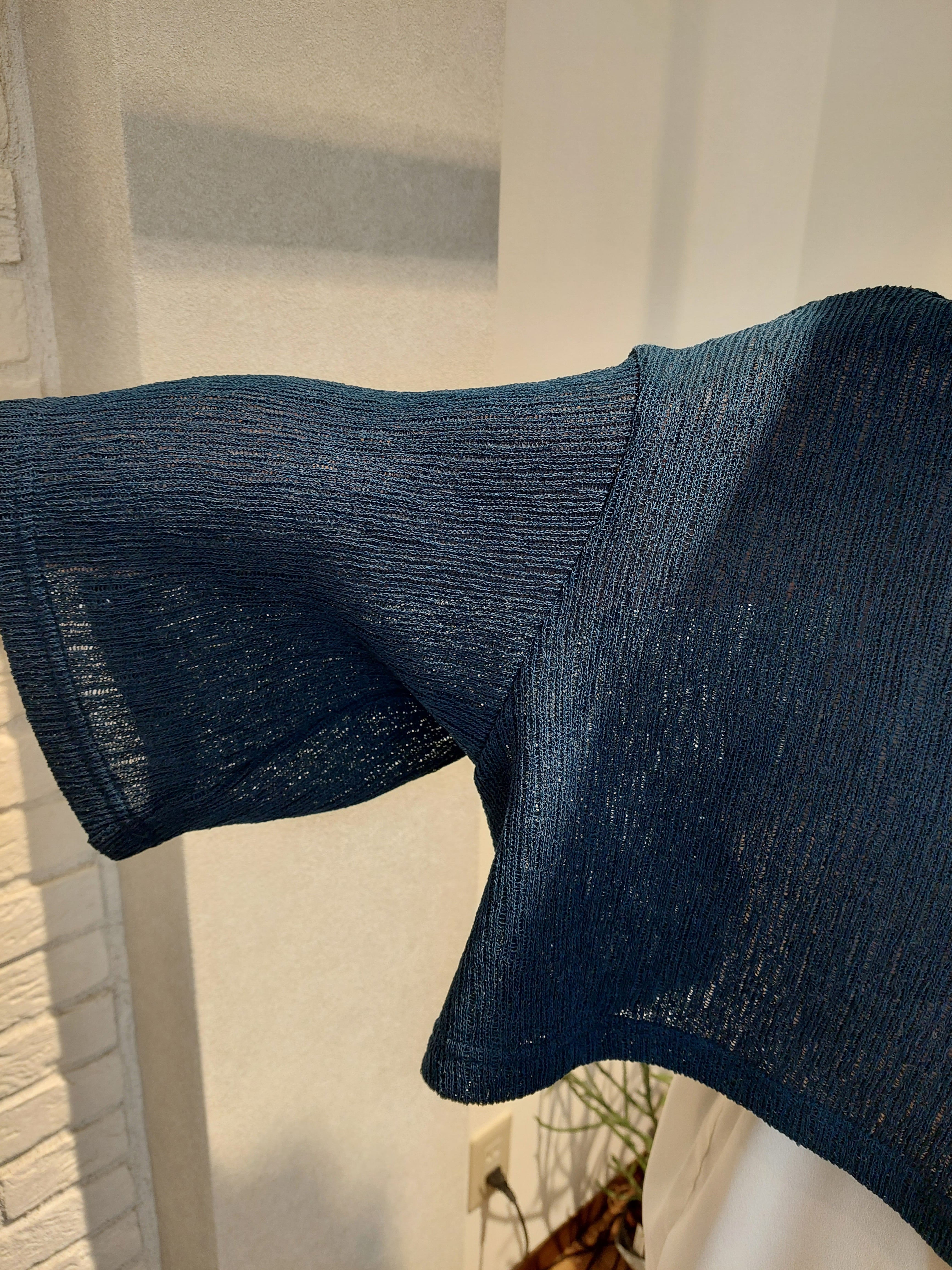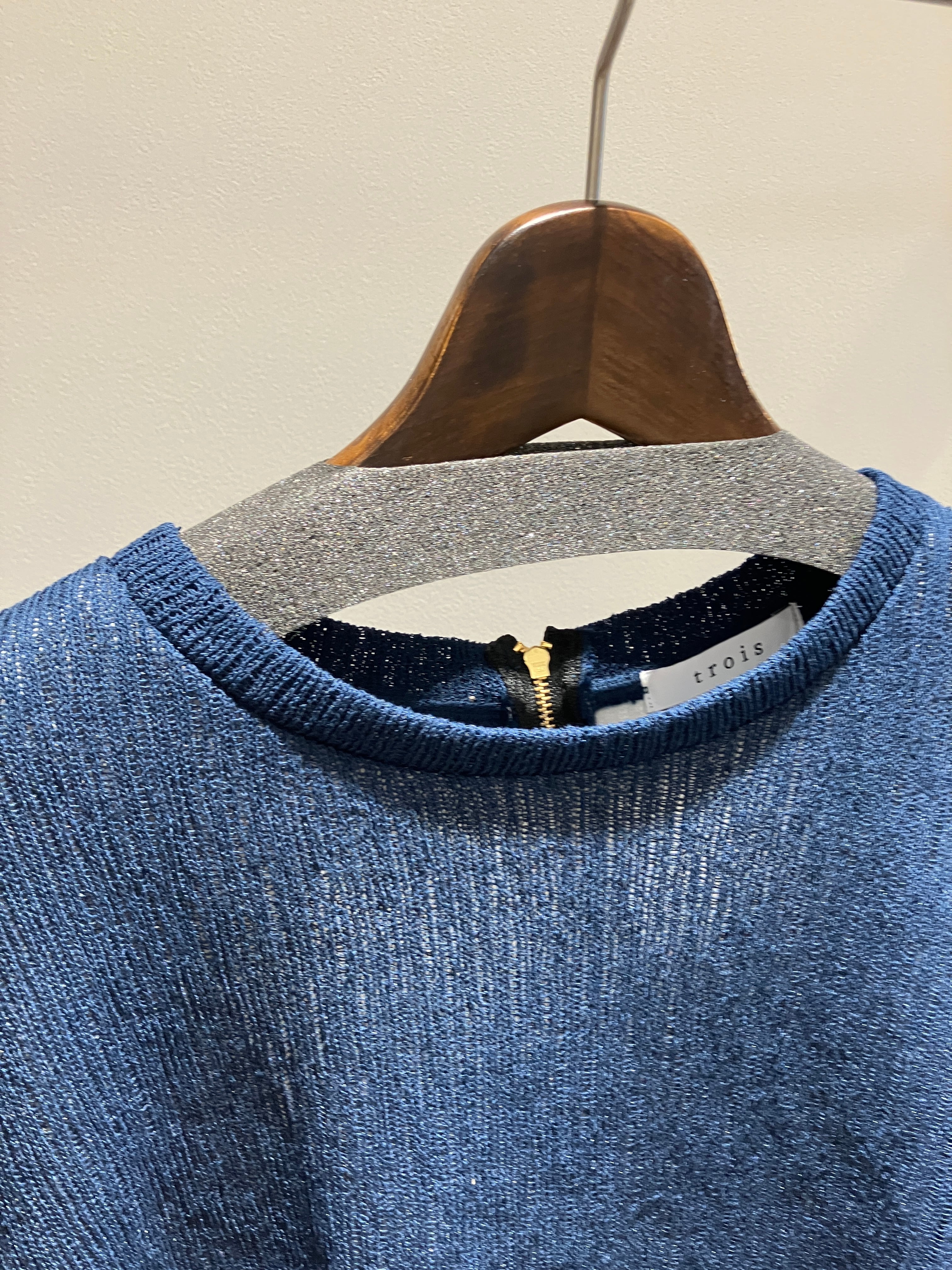 trois トロア / 針抜きニット×ジョーゼット ショート丈ワイドスリーブプルオーバー (T26182016)