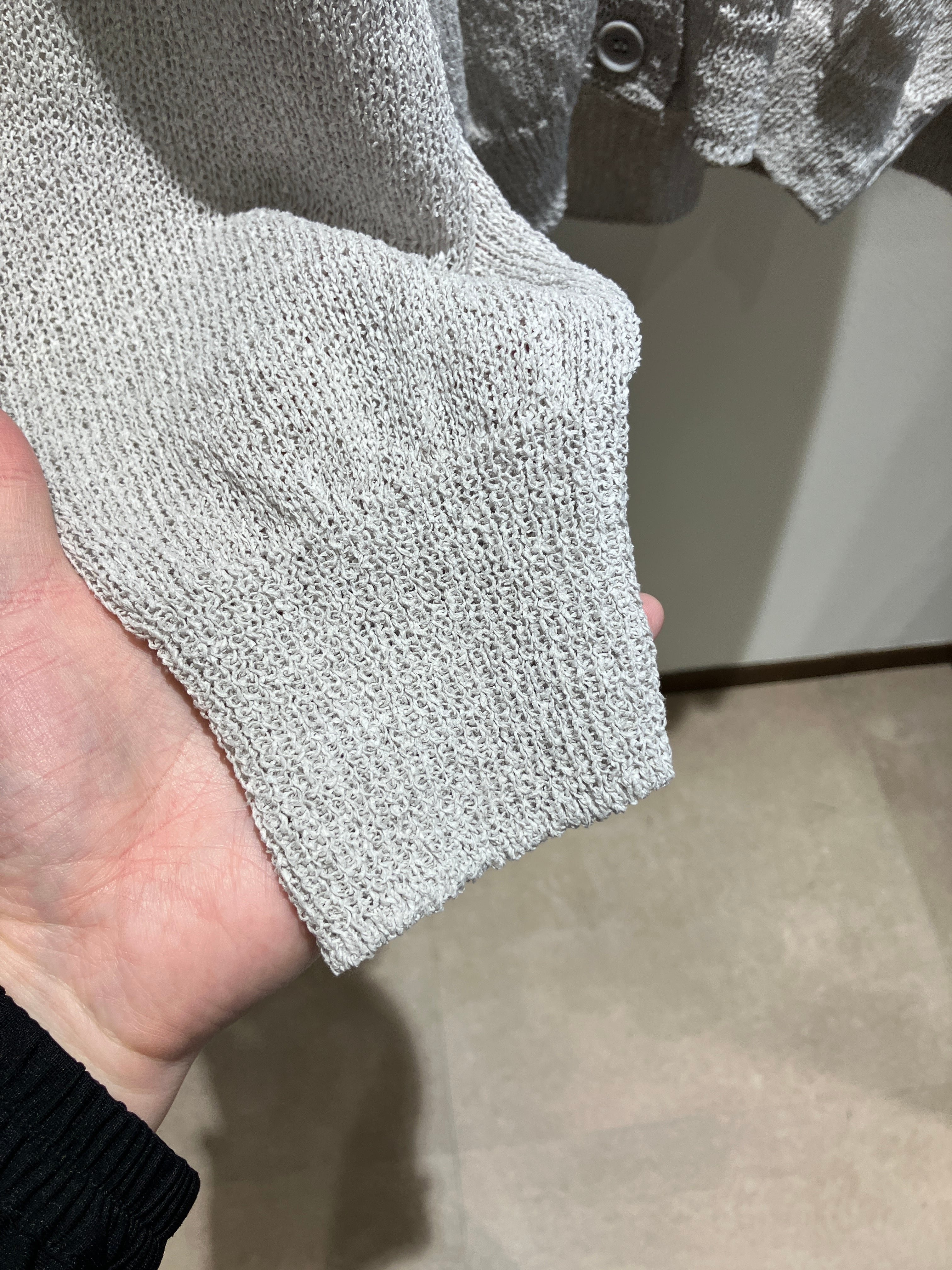 その名の通り、糸を紡ぐような繊細な技術が息づく「TUMUGI」カーディガン。素材には、軽やかで吸湿性に優れた和紙混の糸を使用しており、肌に触れた瞬間に感じる清涼感のあるシャリ感が魅力です。計算されたシンプルなシルエットは、どんなボトムスとも相性が良く、大人の日常にスッと馴染む上質な一着。独特の編み地が奥行きのある表情を生み出し、羽織るだけで洗練された雰囲気を纏えます。和紙ならではの軽さと機能美、そして飽きのこないデザインを兼ね備えた、まさに長く愛用したい名品です。