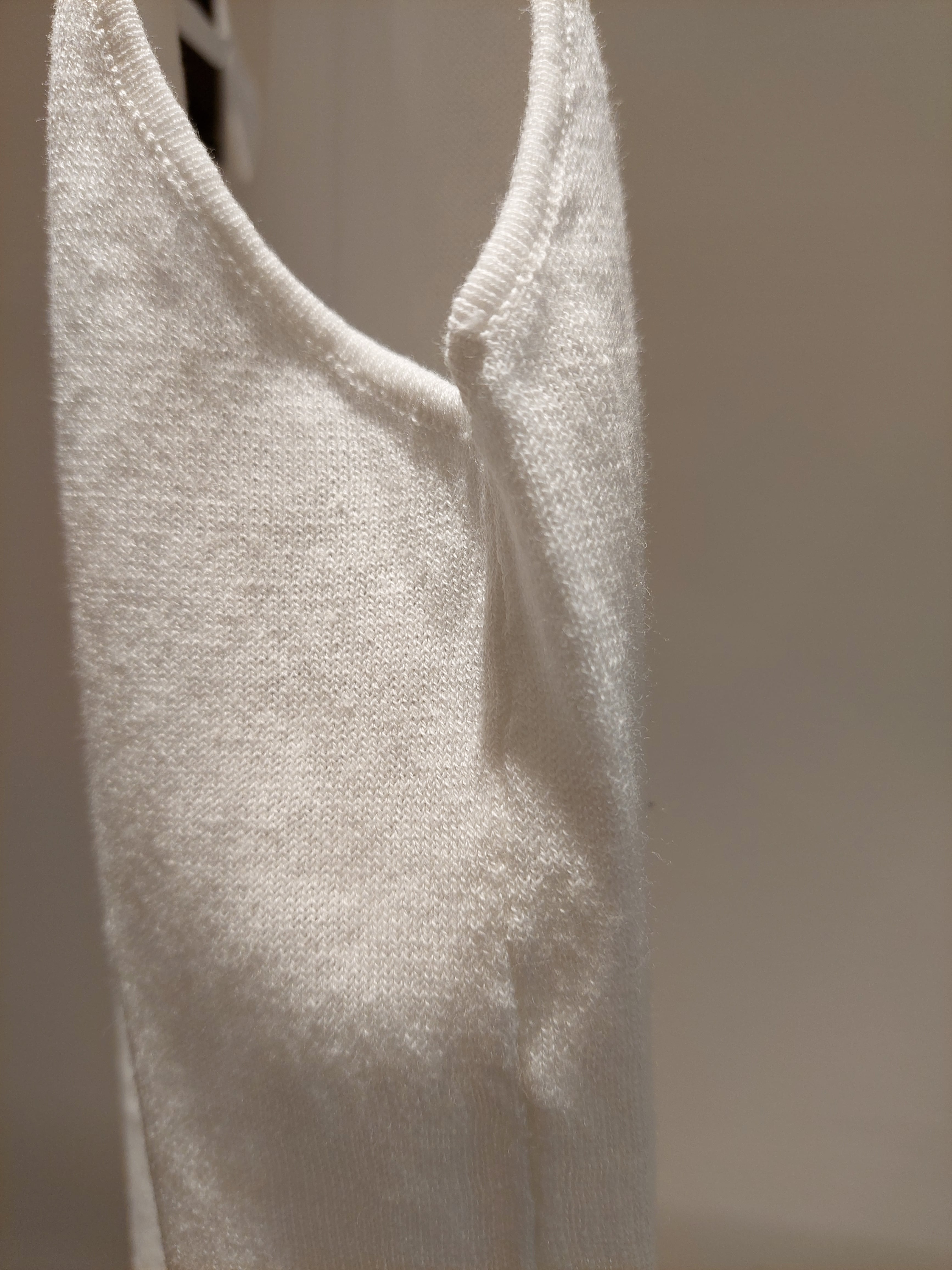 さらりとした心地よい肌触りの綿100%強撚糸を使用した、大人のためのニットタンクトップ。カットソーにはない上品な編み地の表情が、カジュアルなスタイリングをクラスアップさせてくれます。最大のお洒落ポイントは、襟の後ろに施された小さなロゴプリント。バックスタイルにさりげないアクセントを添え、シアーシャツやカーディガンを羽織った際も、後ろ姿からこだわりを感じさせてくれます。一枚ではもちろん、レイヤードのインナーとしても通年活躍する、ワードローブに欠かせない洗練されたベーシックアイテムです。