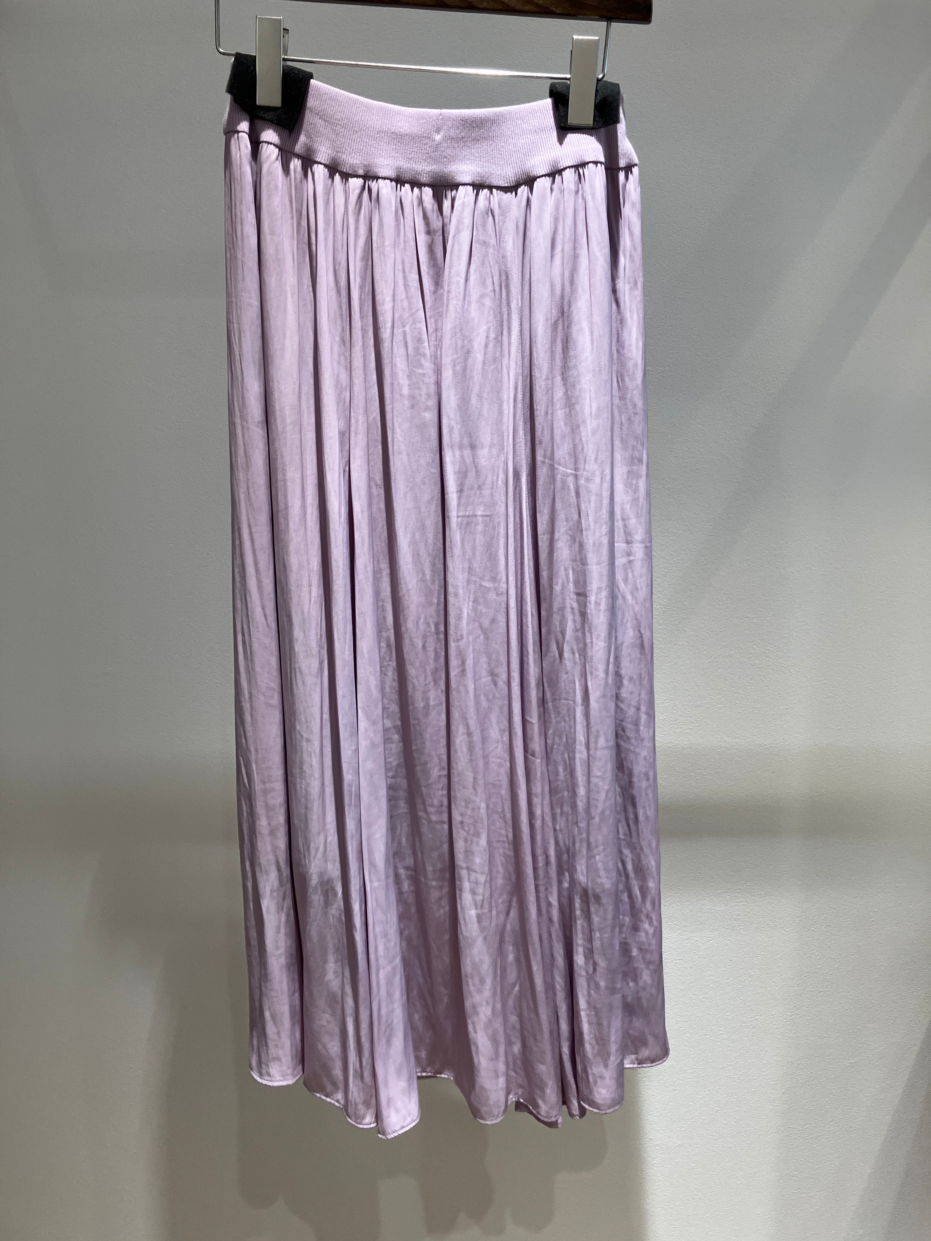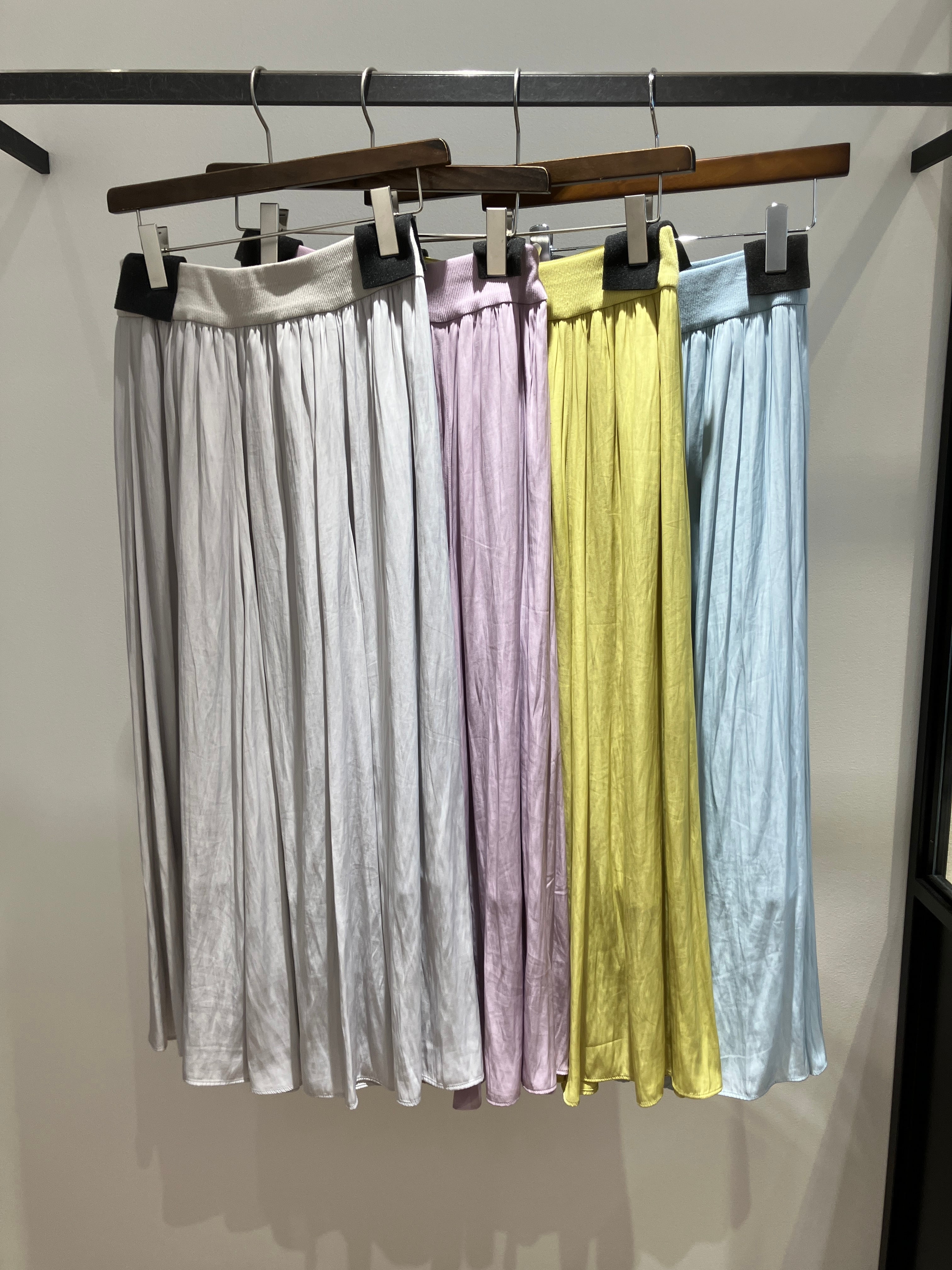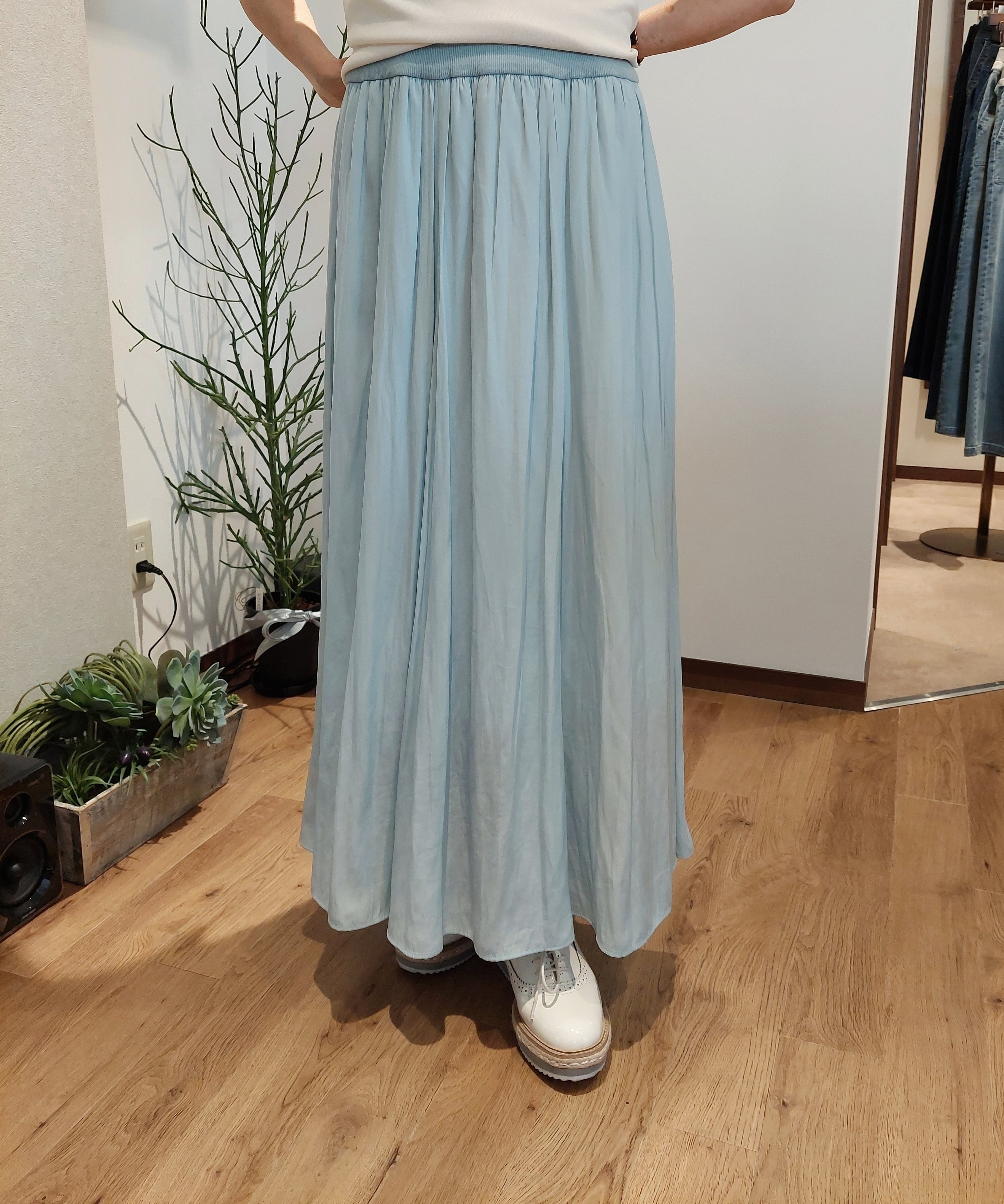 上品な光沢を纏ったサテン生地が、歩くたびに美しく揺れ、コーディネートに華やぎを添えるロングスカート。最大のポイントは、幅広にデザインされたウエストリブ仕様。お腹周りを優しく、かつしっかりとホールドしてくれるため、ストレスフリーな穿き心地とすっきりとした腰周りのシルエットを両立させました。さらっとした肌触りの素材は、季節を問わず快適に着用でき、デイリーに活躍。安心の裏地付きなので、透け感を気にせず着用できるのも嬉しいポイントです。きれいめブラウスからカジュアルなTシャツまで幅広いトップスと相性が良く、大人の洗練されたスタイルを叶えてくれる一着です。