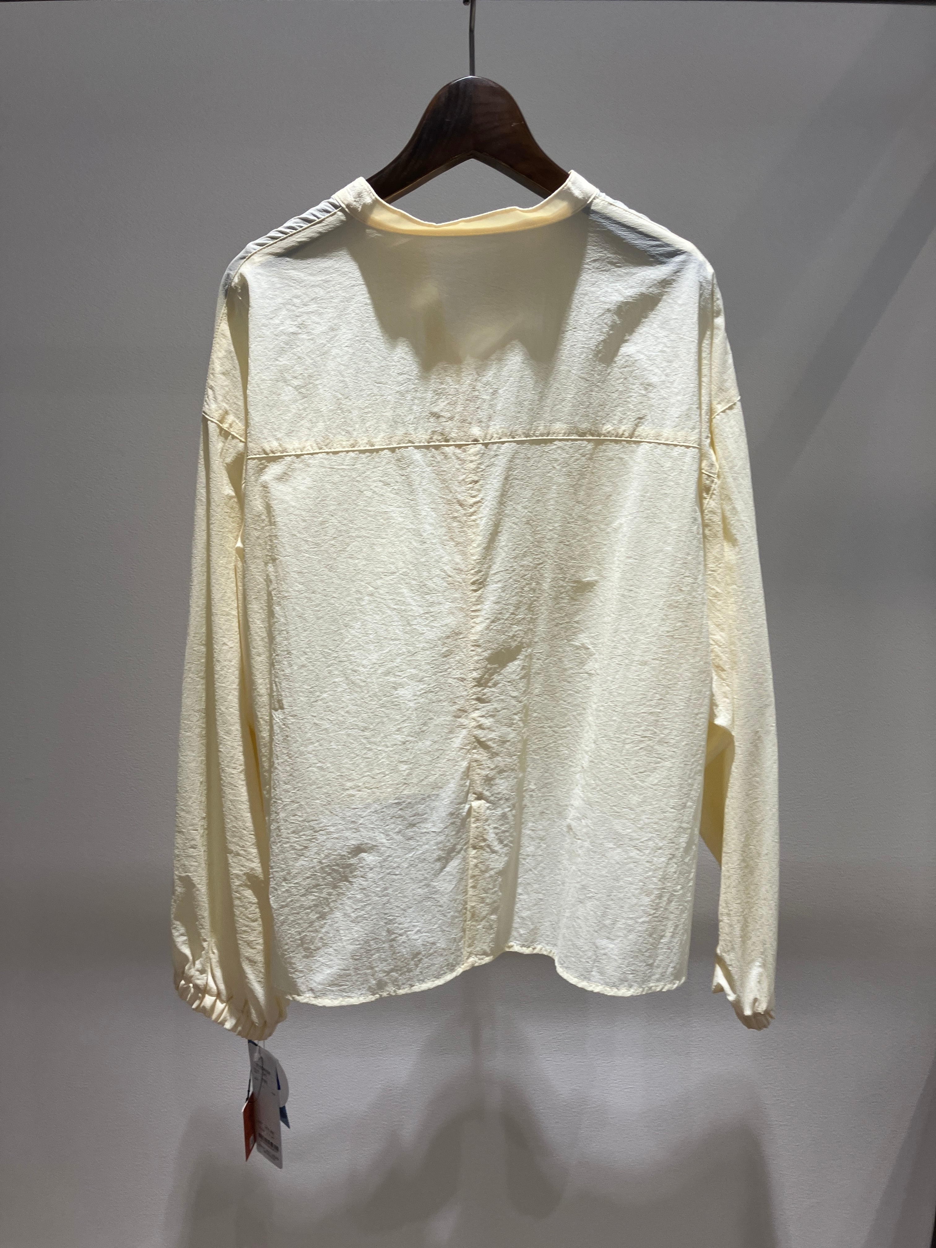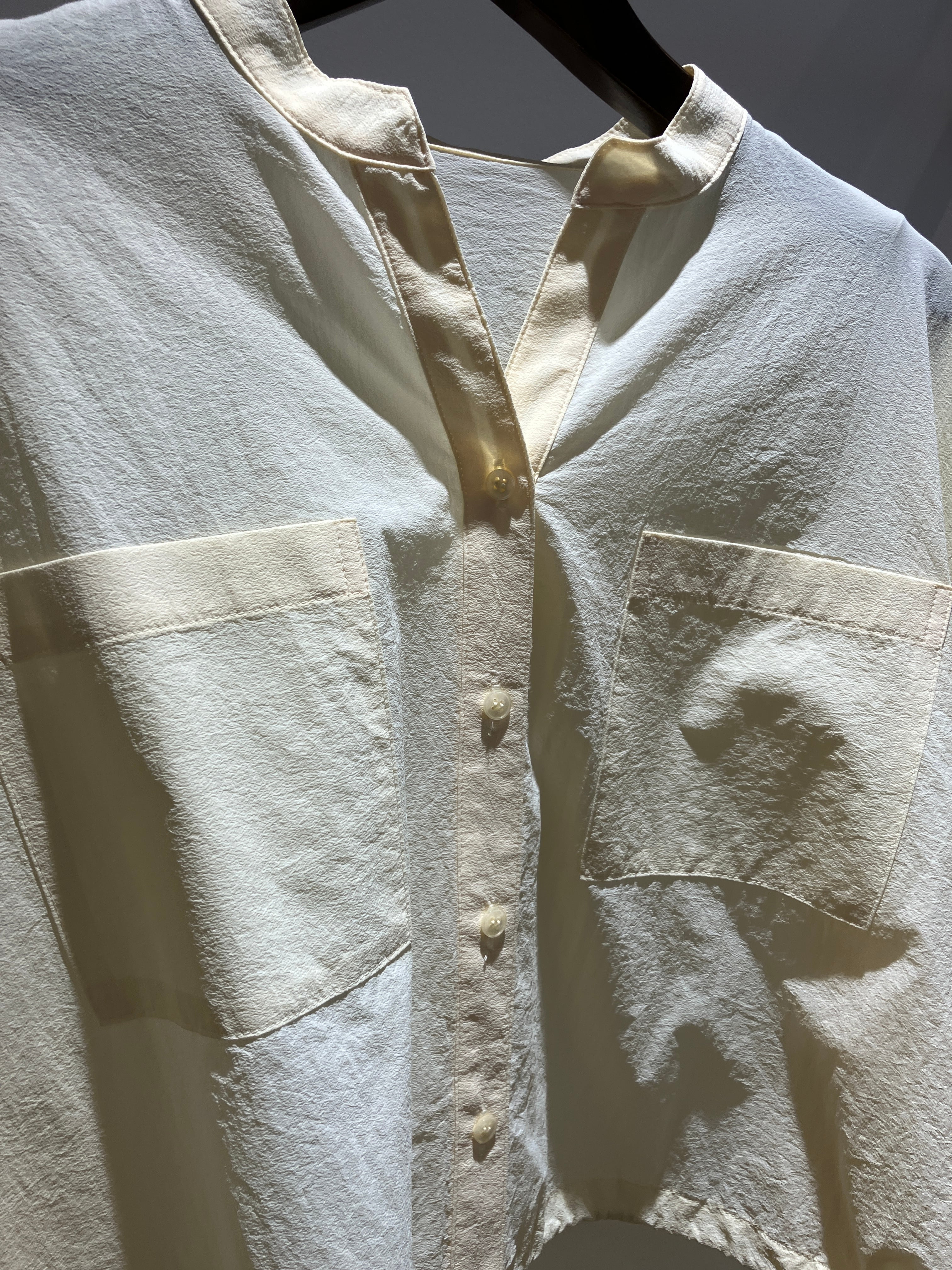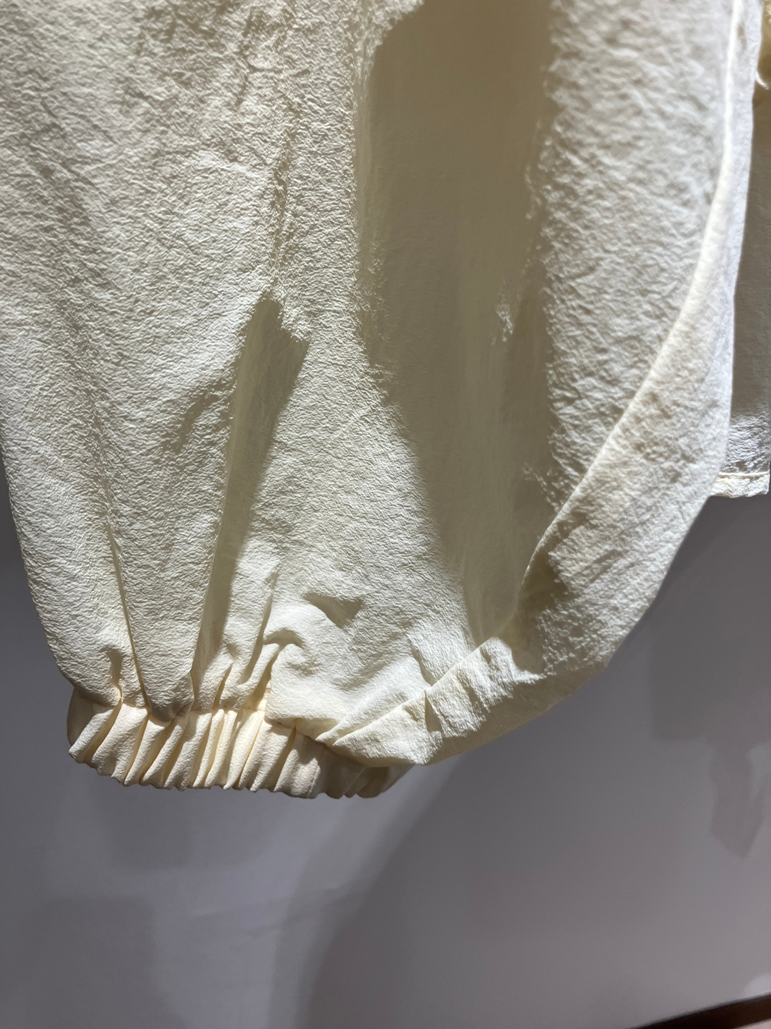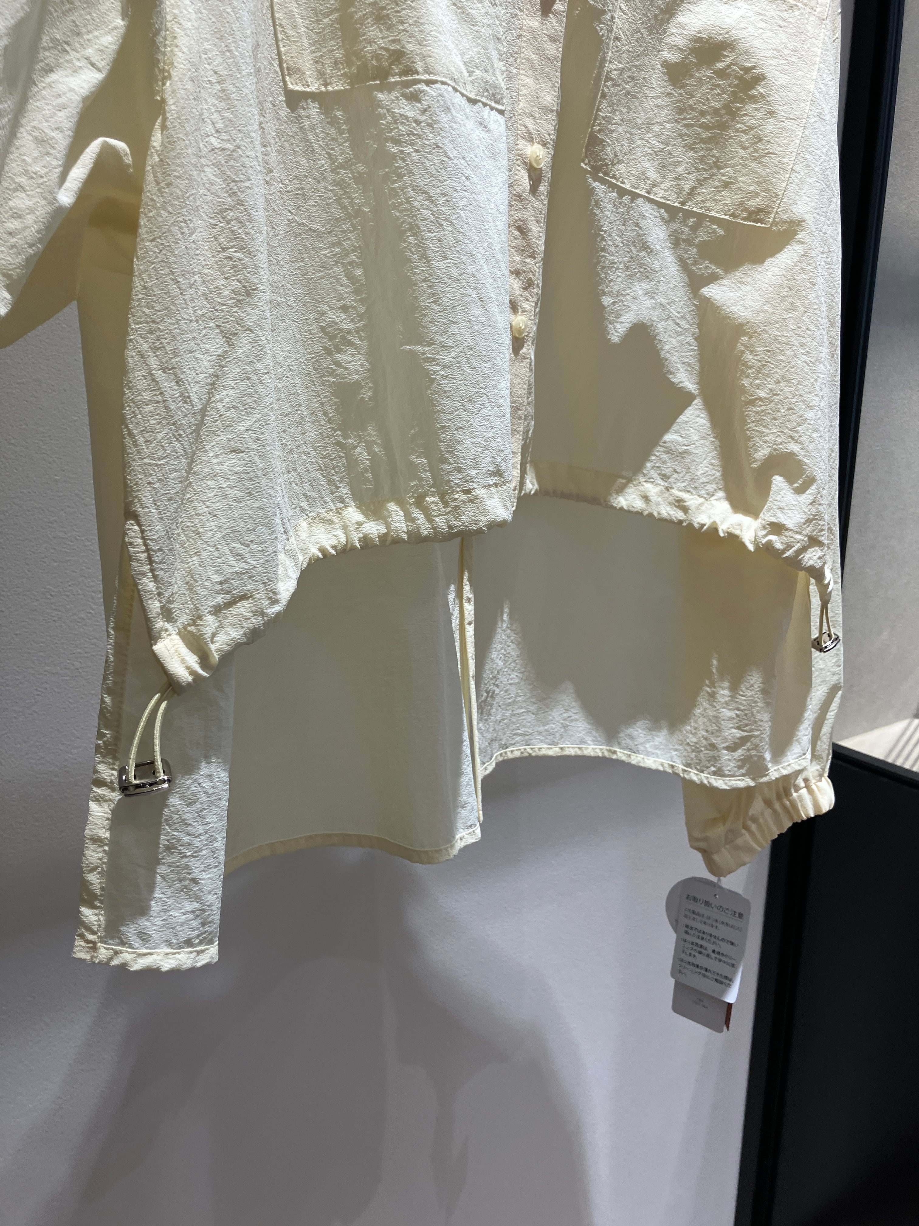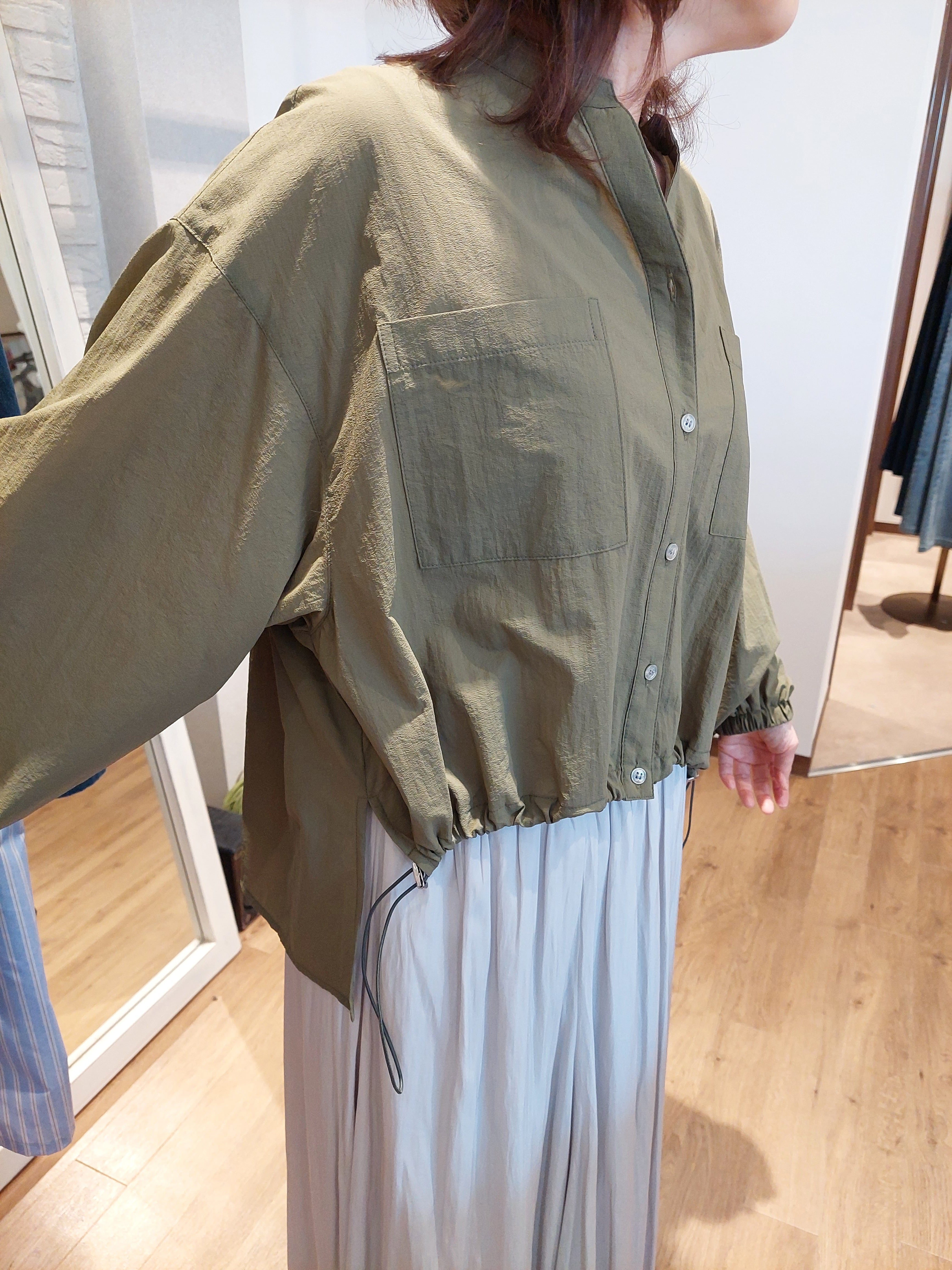機能性とデザイン性を兼ね備えた、トレンドのタフタ素材を使用したブラウス。最大の魅力は、そのシルエットを自在に操れる裾のドロスト仕様です。絞り具合でバルーンシルエットを楽しんだり、緩めてリラックス感を演出したりと、その日の気分やボトムスに合わせて裾の表情をアレンジできます。さらに、前後差のある着丈デザインは、気になるヒップ周りを自然にカバーしつつ、サイドから見た時のシルエットも洗練された印象に。首元はすっきりとしたスキッパーデザインで、顔周りをシャープに見せ、程よい抜け感をプラスしてくれます。デイリーからお出かけまで活躍する、機能美を纏った一枚です。