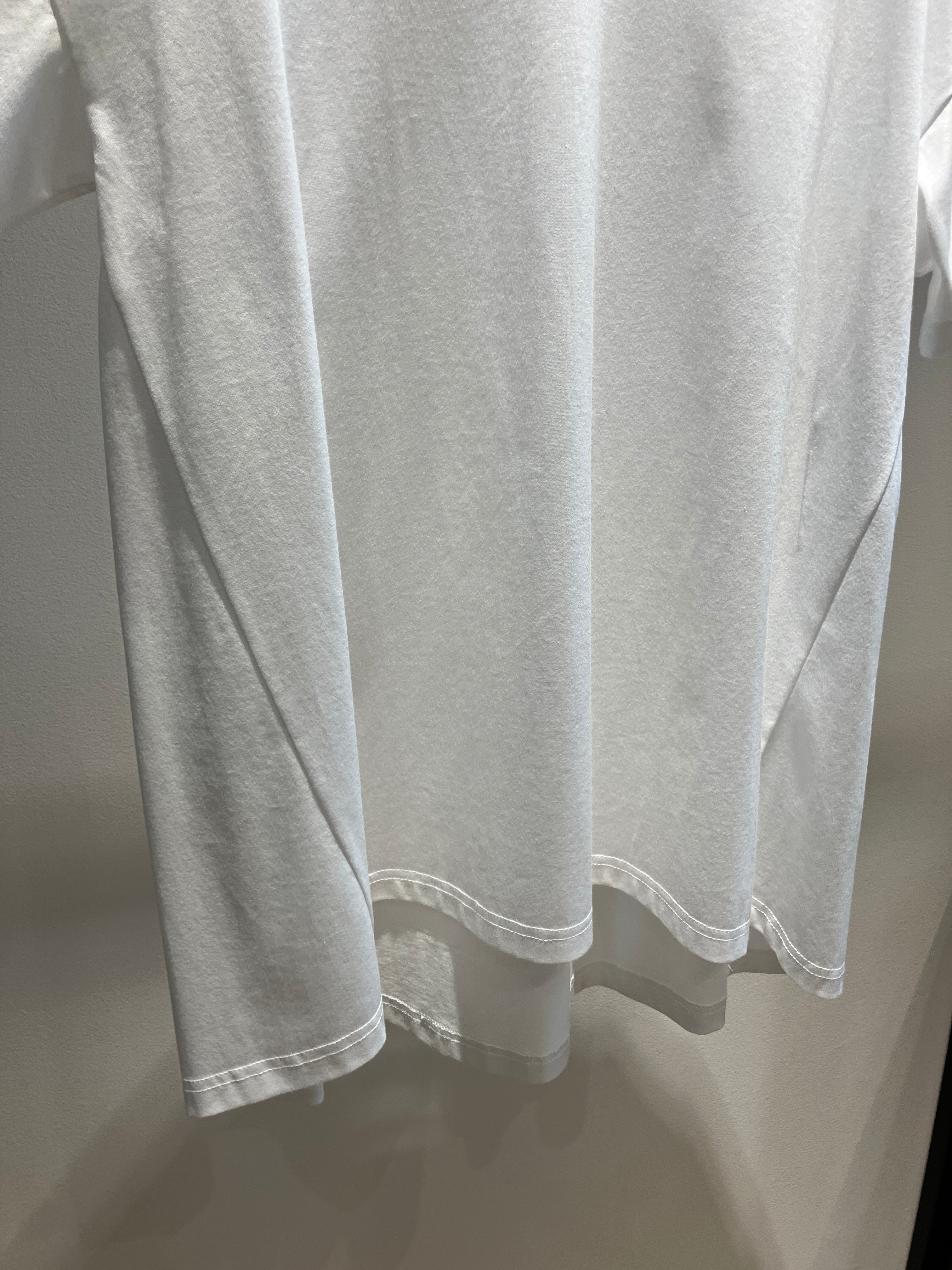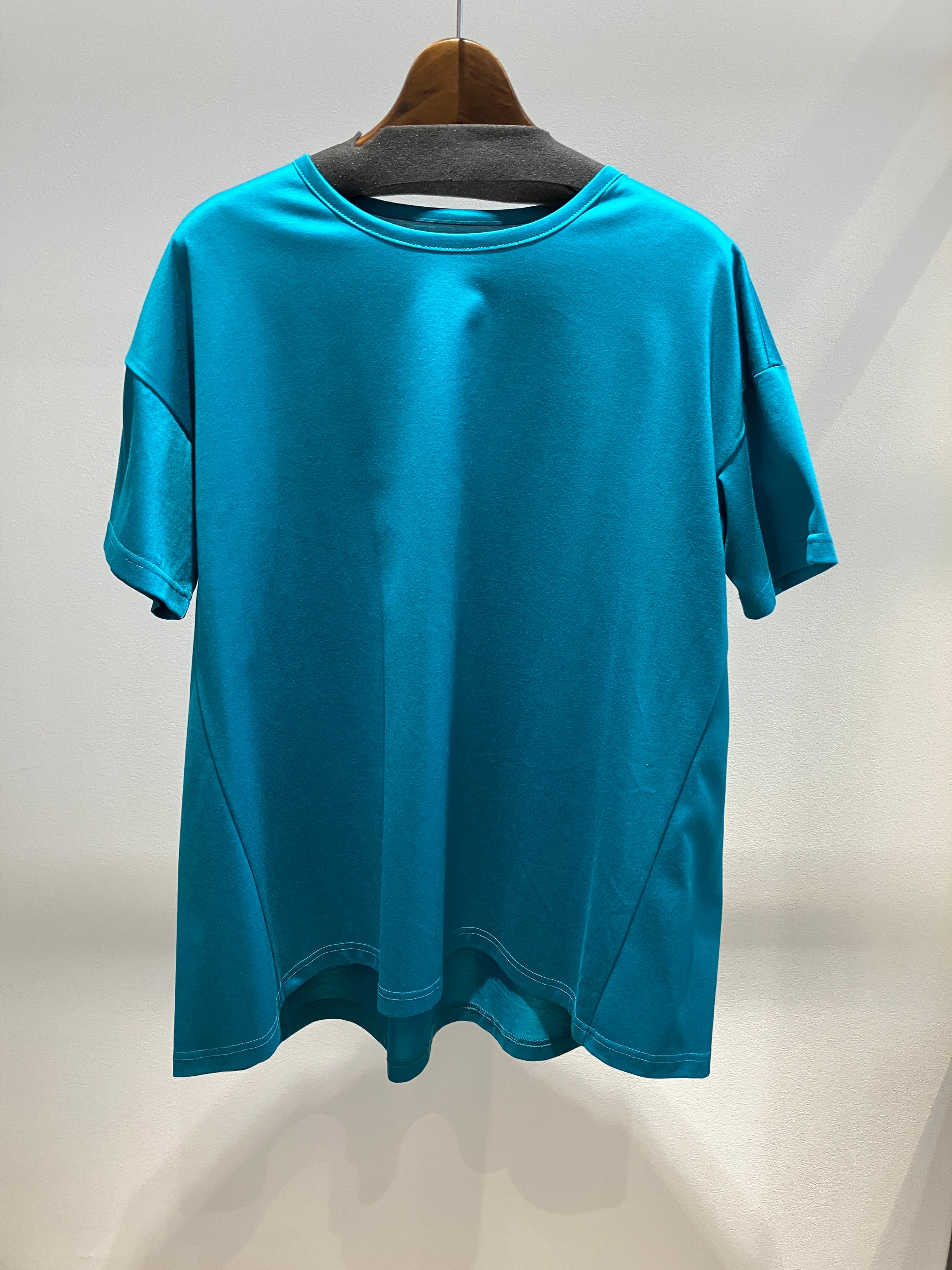 Tシャツの手軽さはそのままに、ブラウスのような華やかさを纏える「Prima Zym」フレアT。最大の特徴は、優れた洗濯耐久性を誇る高機能素材Prima Zymを使用していること。繰り返しの洗濯でも型崩れしにくく、美しい表面感を長くキープできるため、汗をかく季節も気兼ねなくデイリーに活躍します。裾に向かってふんわりと広がるフレア感のあるシルエットは、気になる腰周りを自然にカバーしつつ、動くたびに軽やかなニュアンスを演出。シンプルながら一枚でしっかりとサマになり、きれいめパンツからデニムまで、合わせるボトムスを選ばない頼れる優秀トップスです。