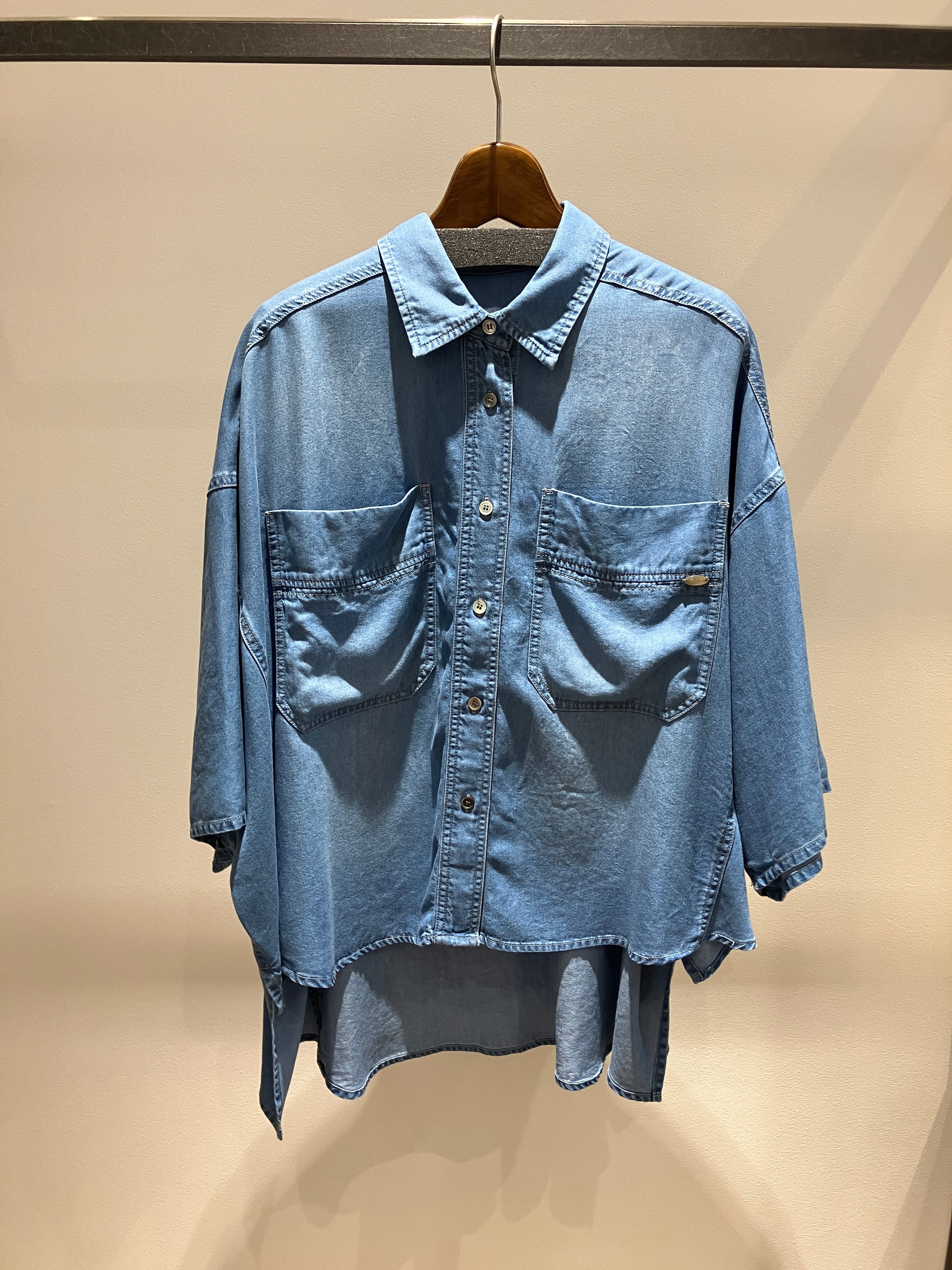 デニムのカジュアルな風合いを、上品でクリーンな印象に仕上げた一着。環境に優しい再生繊維であるセルロースを使用しており、肌の上を滑るようなさらさらとした心地よい肌触りが魅力です。ゆったりとしたドルマンスリーブが作る丸みのあるシルエットは、女性らしい抜け感を演出しつつ、気になる二の腕やボディラインを自然にカバー。非常に軽やかで落ち感のある素材なので、動くたびに美しい揺れ感が生まれ、洗練された大人のデイリースタイルを叶えてくれます。春夏の羽織りとしても重宝する、機能性と美しさを兼ね備えた優秀ブラウスです。