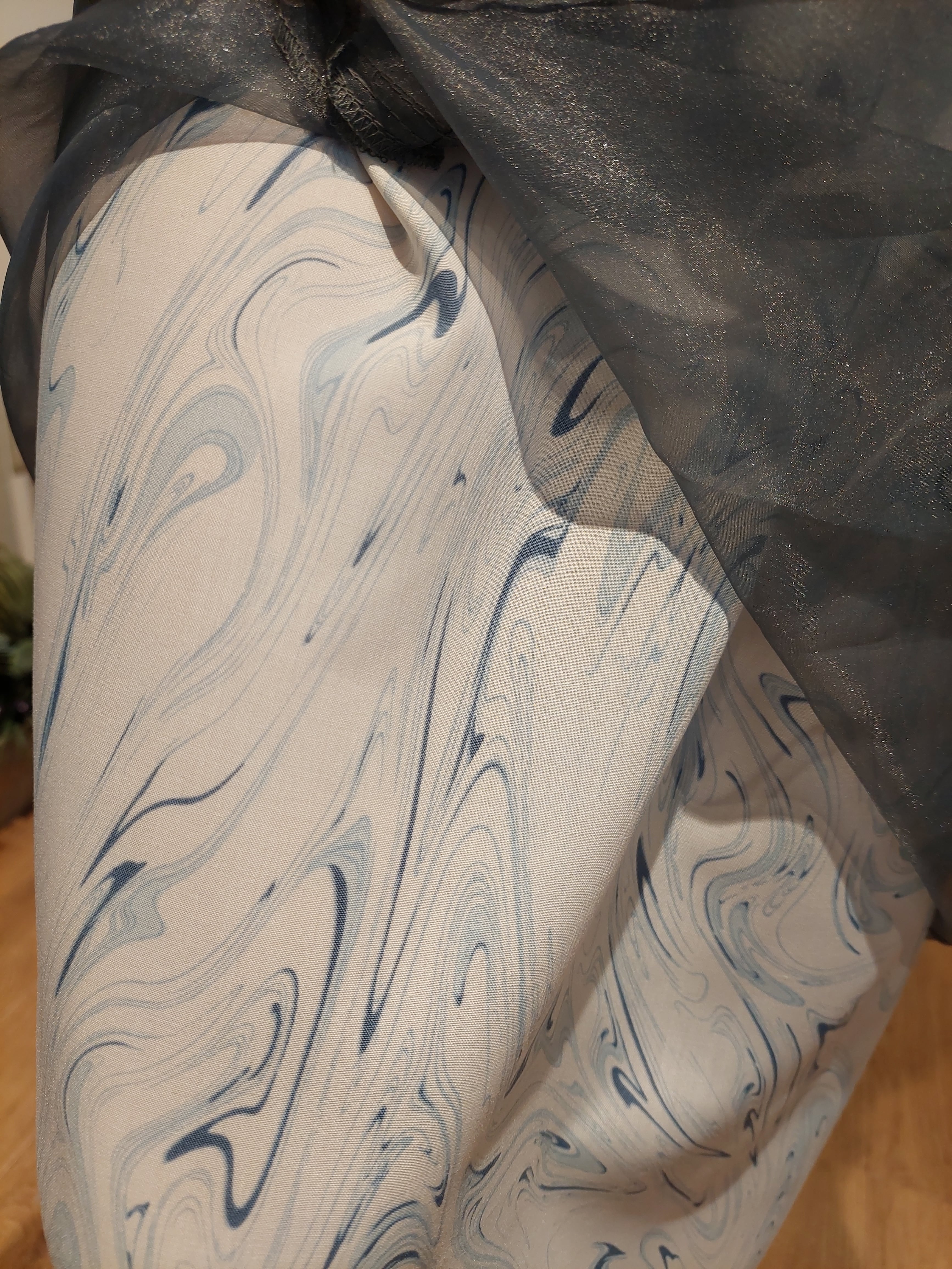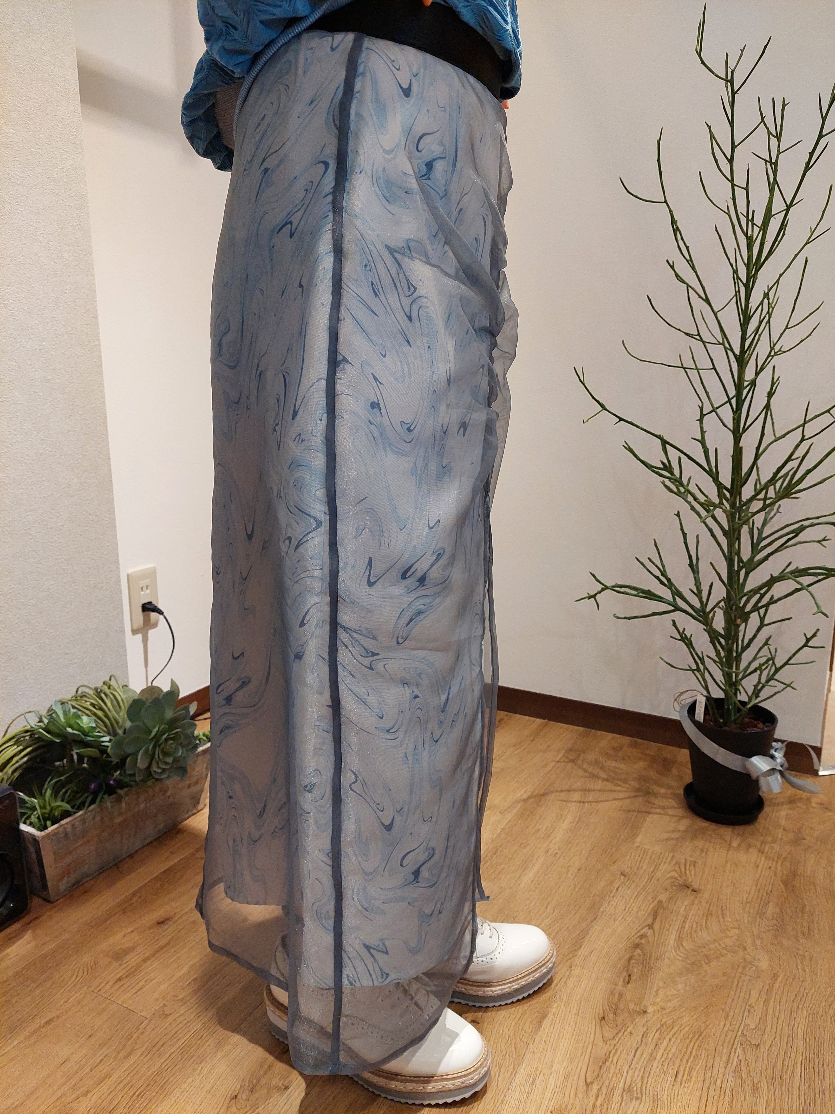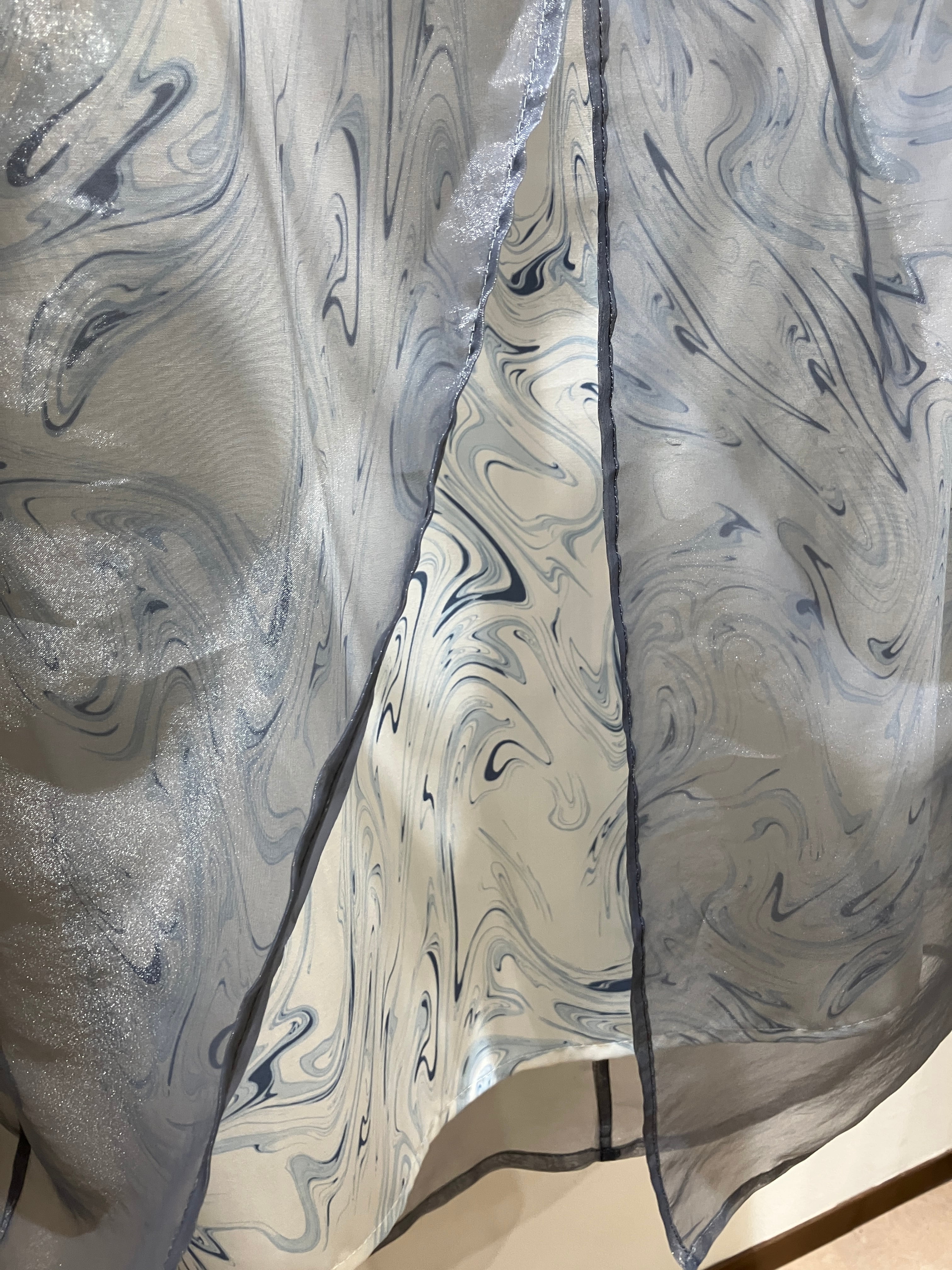 個性的なマーブルプリントの上にオーガンジーを重ねて幻想的な雰囲気に。