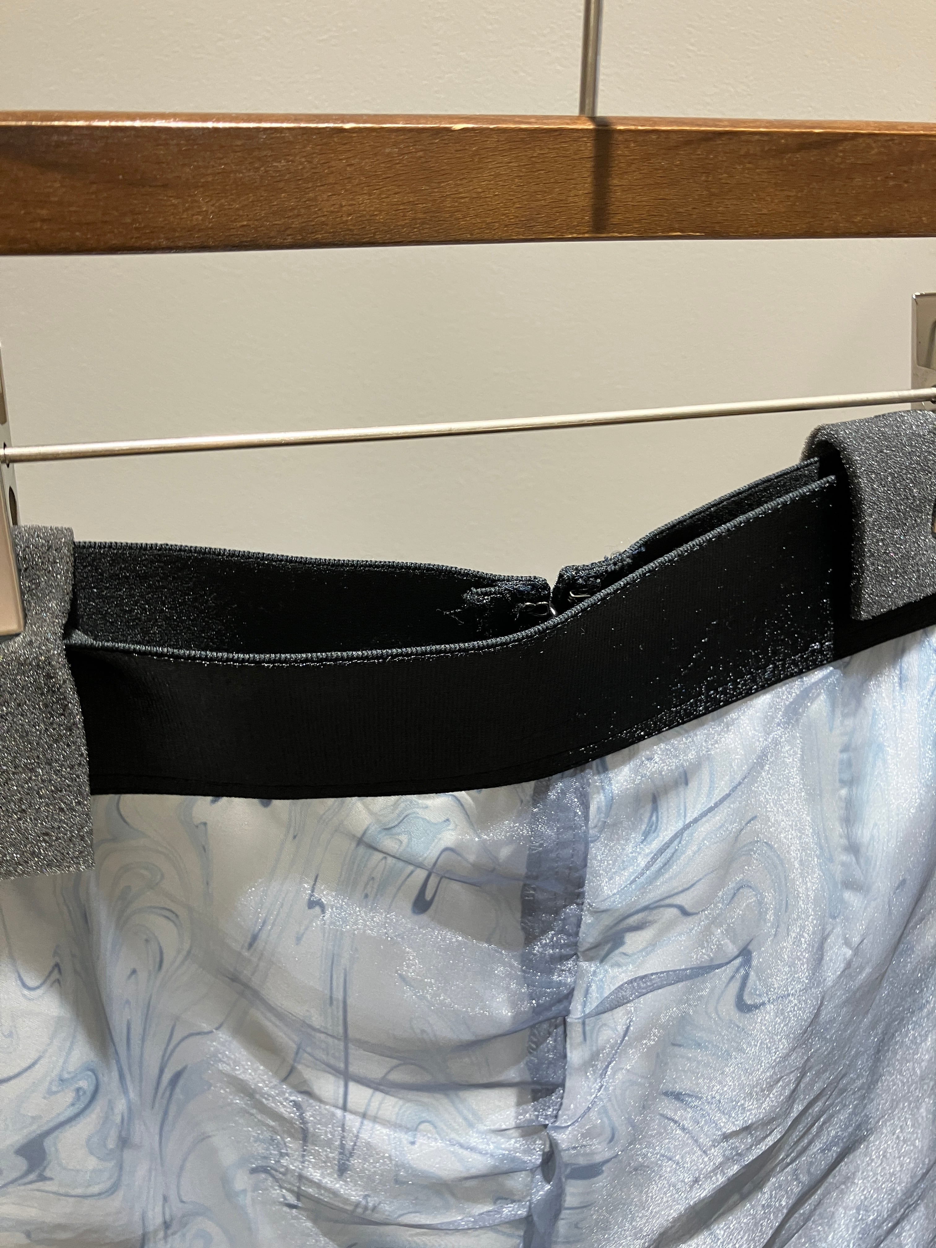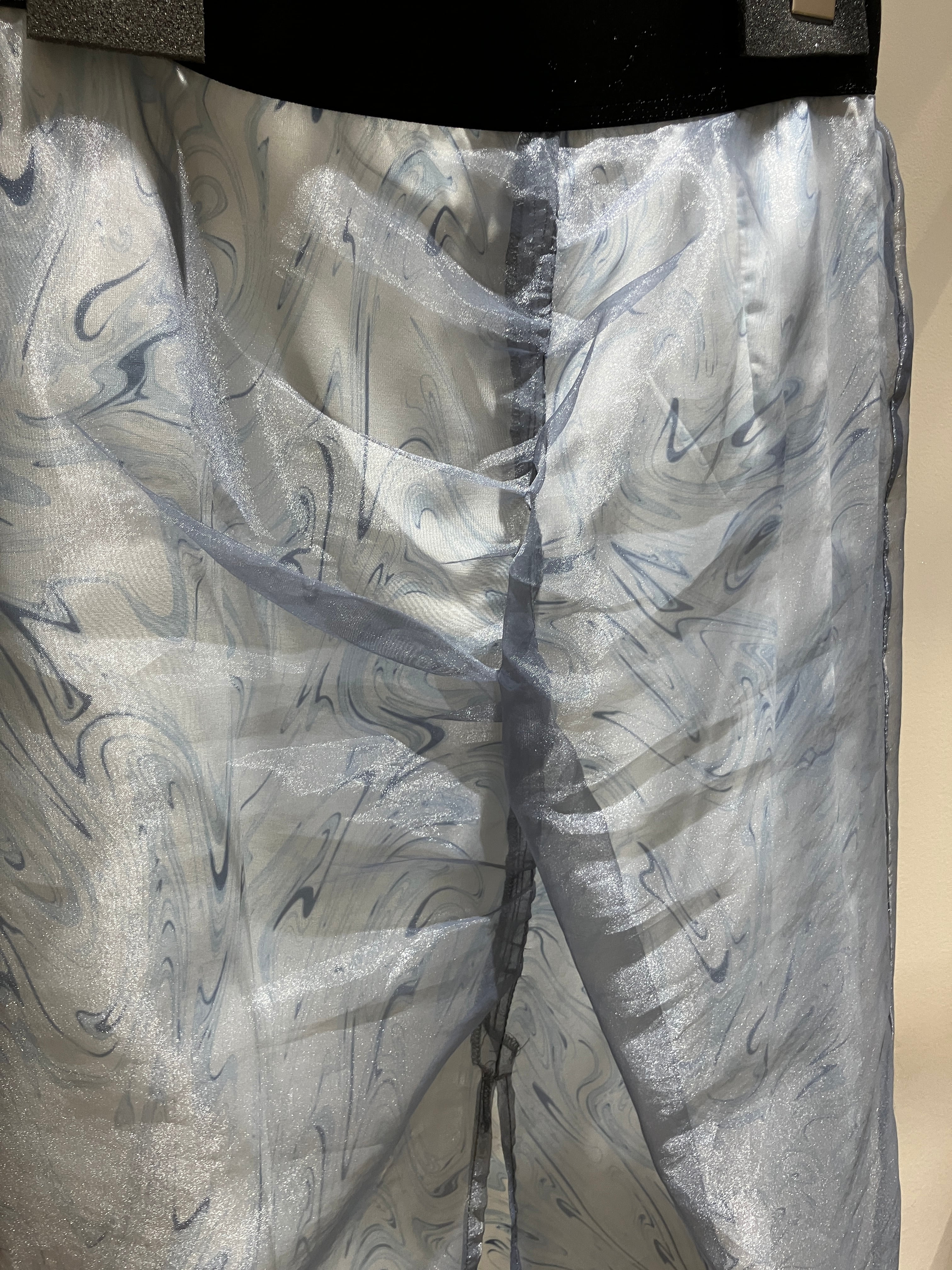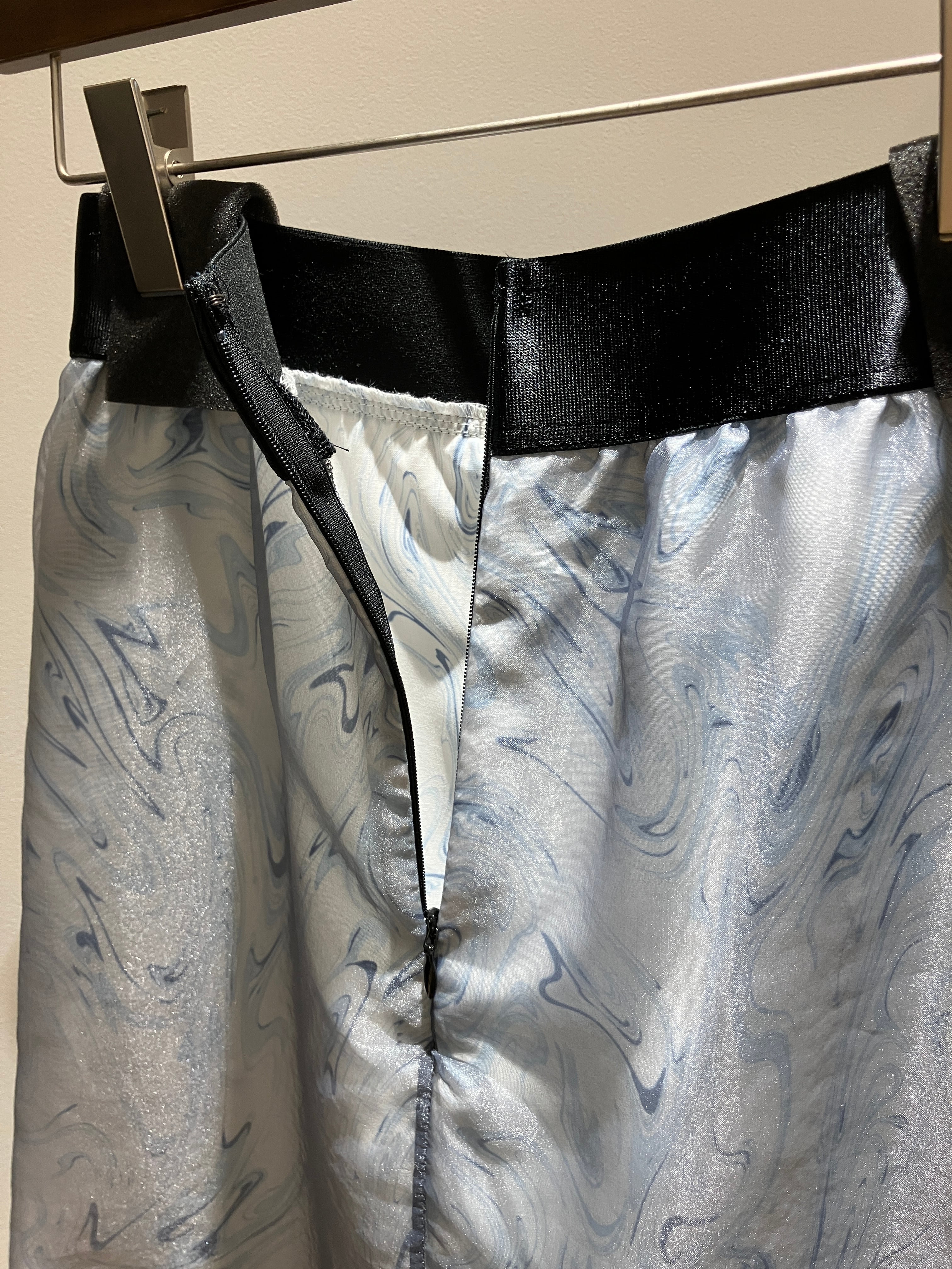 個性的なマーブルプリントの上にオーガンジーを重ねて幻想的な雰囲気に。