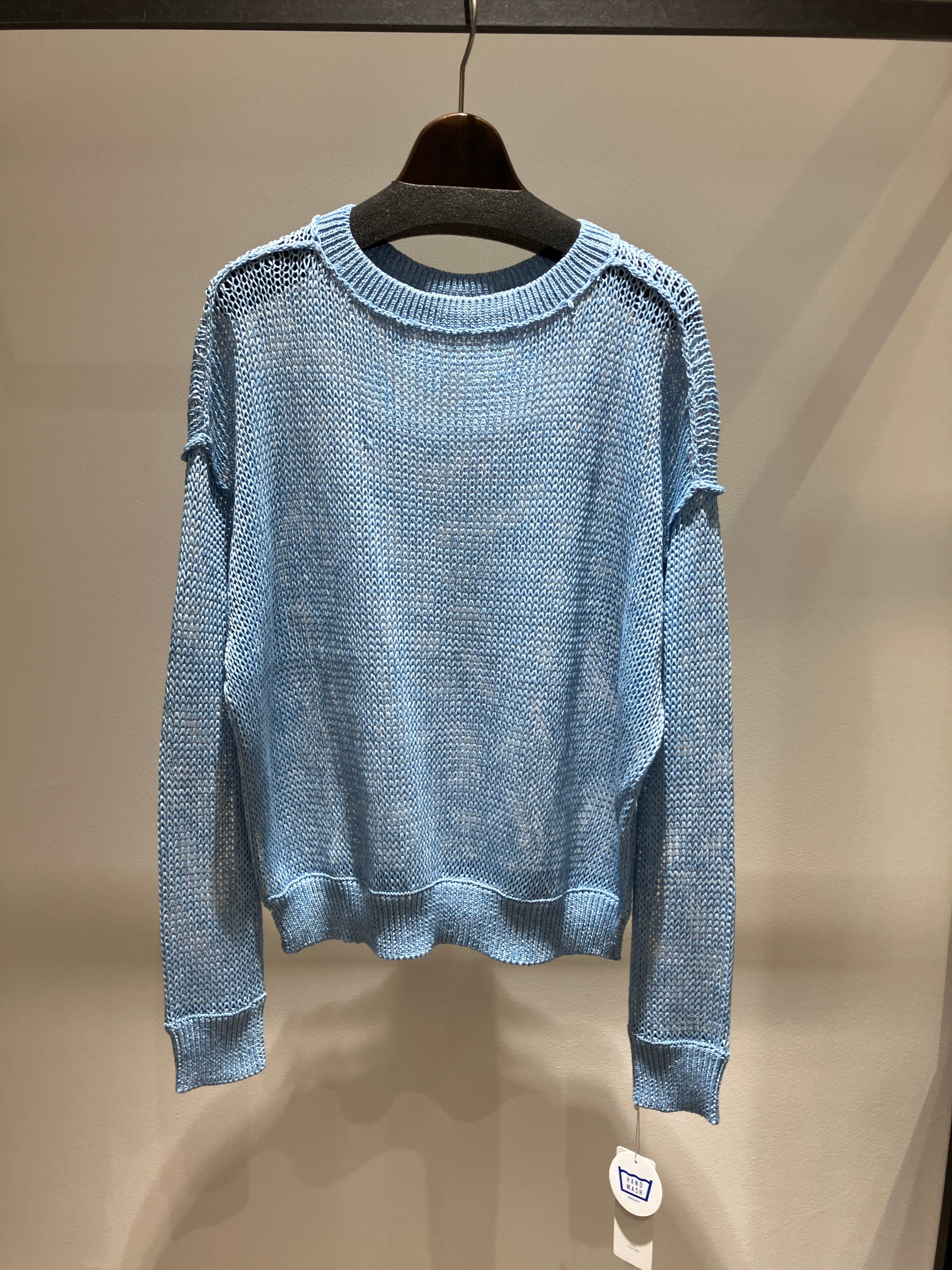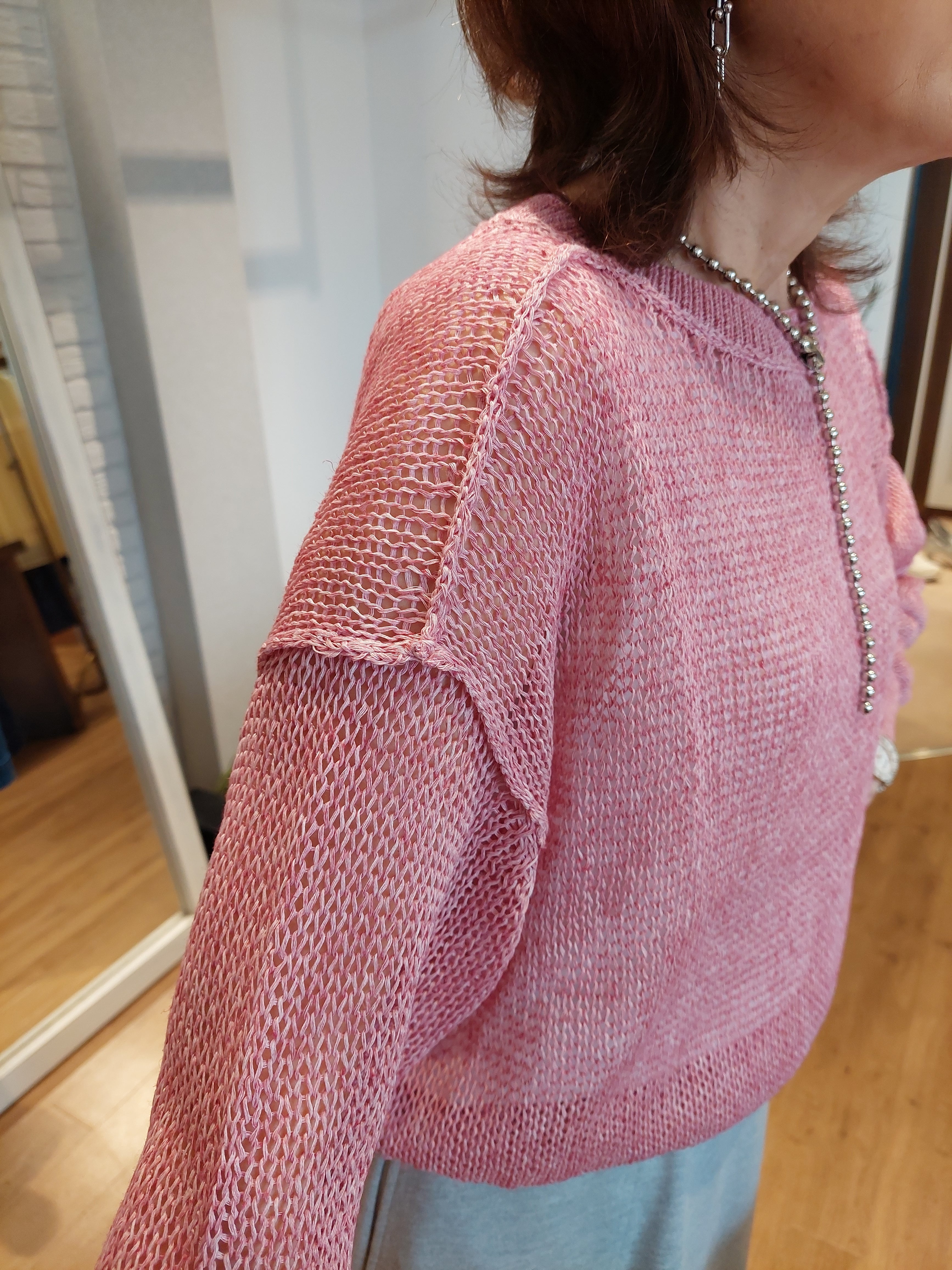 太めの糸でザックリと編み上げた、ラフな表情が魅力のローゲージプルオーバー。清涼感のあるリネン混素材を使用しており、麻特有のナチュラルな風合いとドライな肌触りが、季節感たっぷりの着こなしを叶えてくれます。粗めの網目が作る程よい透け感は、インナーとのレイヤードでこなれ感を演出するのに最適。ゆったりとしたオーバーサイズシルエットながら、リネンの落ち感が女性らしい華奢なラインを作ってくれます。シンプルにデニムと合わせるだけで、大人の洗練されたリラックススタイルが完成する、春夏に頼れる一着です。