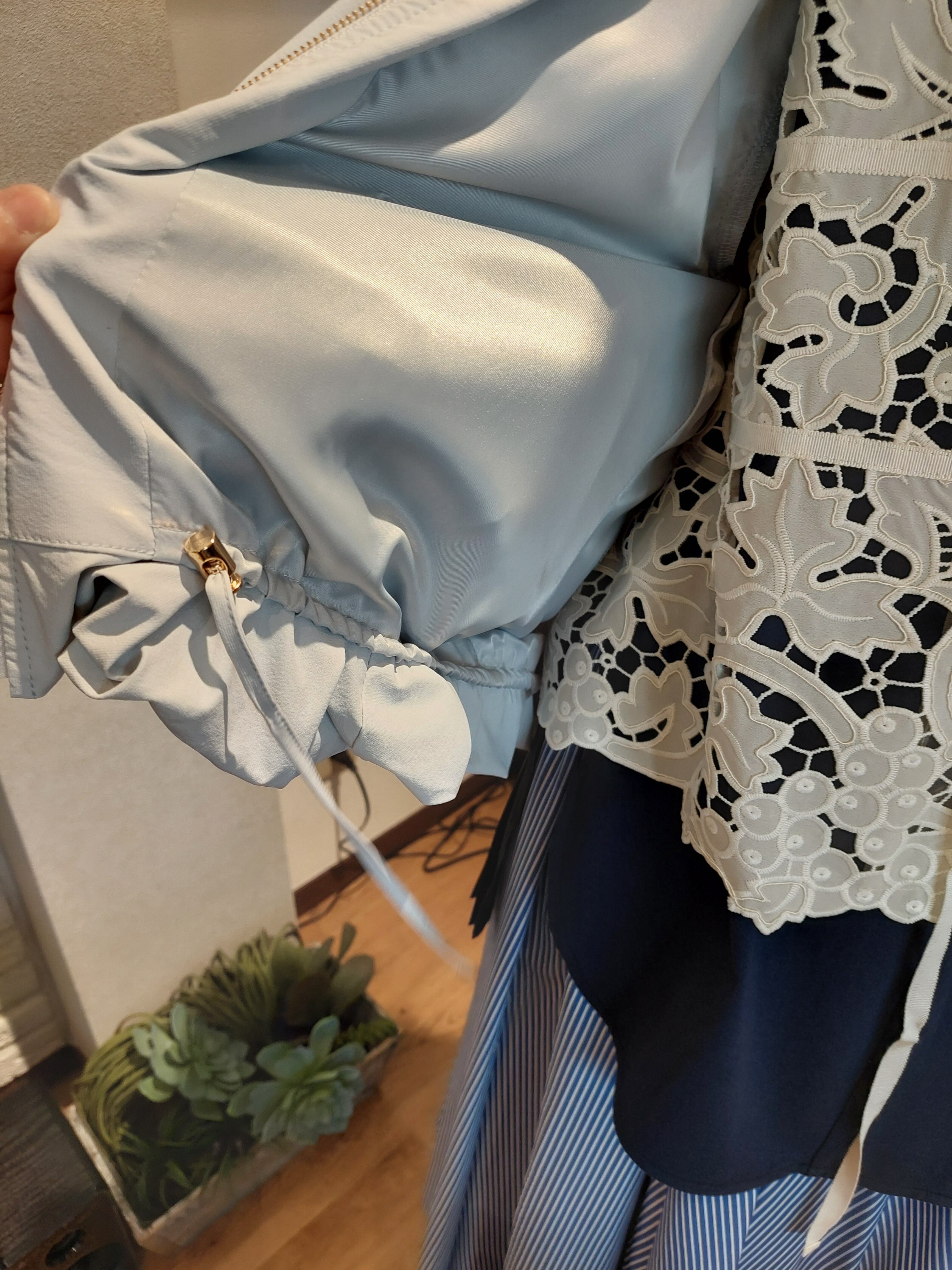 UVカット機能付きノーカラーブルゾン。