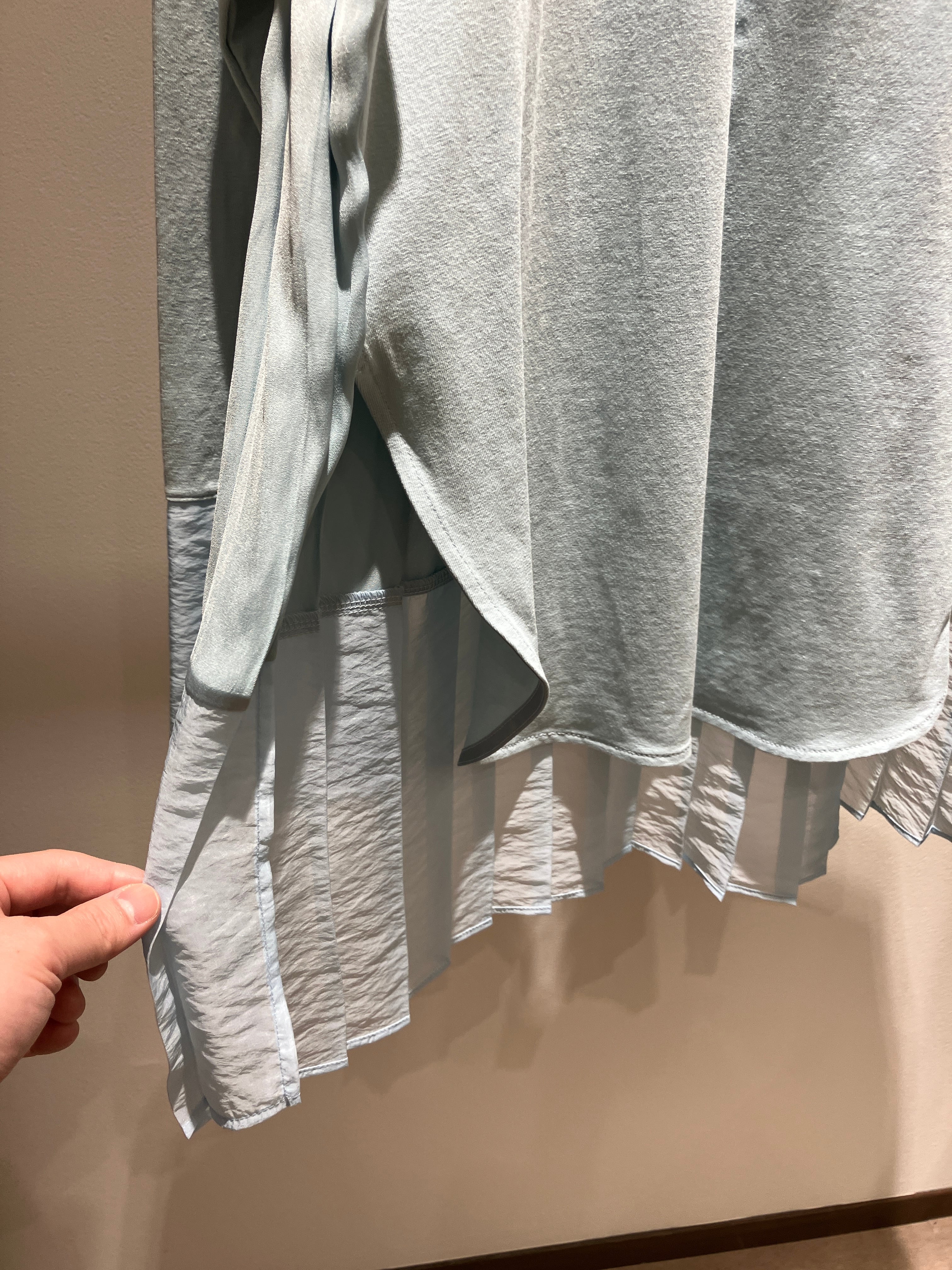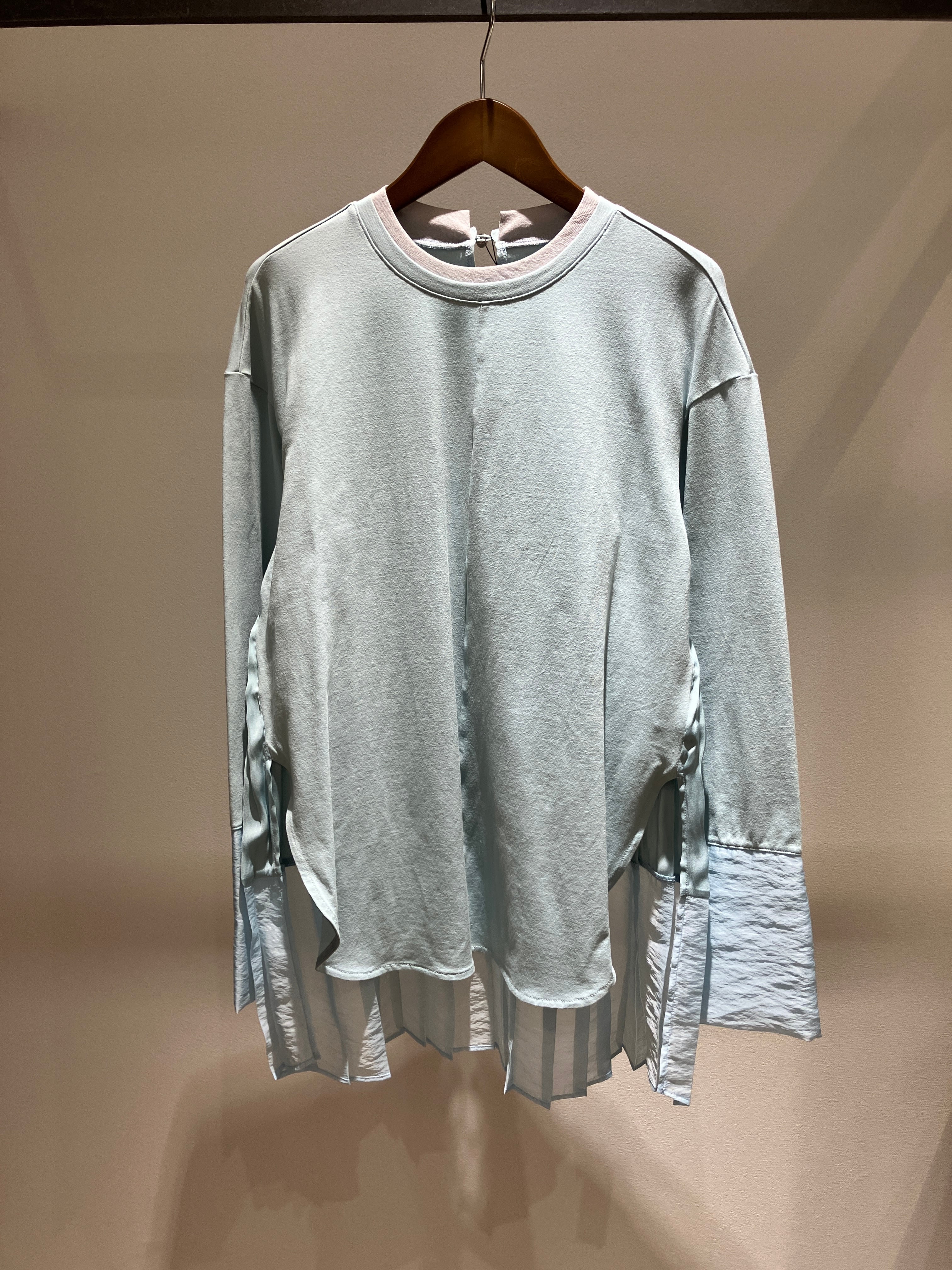 Tシャツのリラックス感に、繊細なディテールを掛け合わせたデザインプルオーバー。一番のポイントは、袖と後ろ裾にあしらわれたオーガンジー使いです。上品な透け感と光沢のあるオーガンジーが、スポーティーになりがちなTシャツスタイルに女性らしいエレガントなニュアンスをプラス。さらに、大胆なバック切替デザインを採用することで、後ろ姿まで抜かりなくお洒落に決まる一着に仕上げました。身頃は肌馴染みの良いカットソー素材なので、デイリーに気兼ねなく着られ、一枚でしっかりと「映える」コーディネートが完成します。