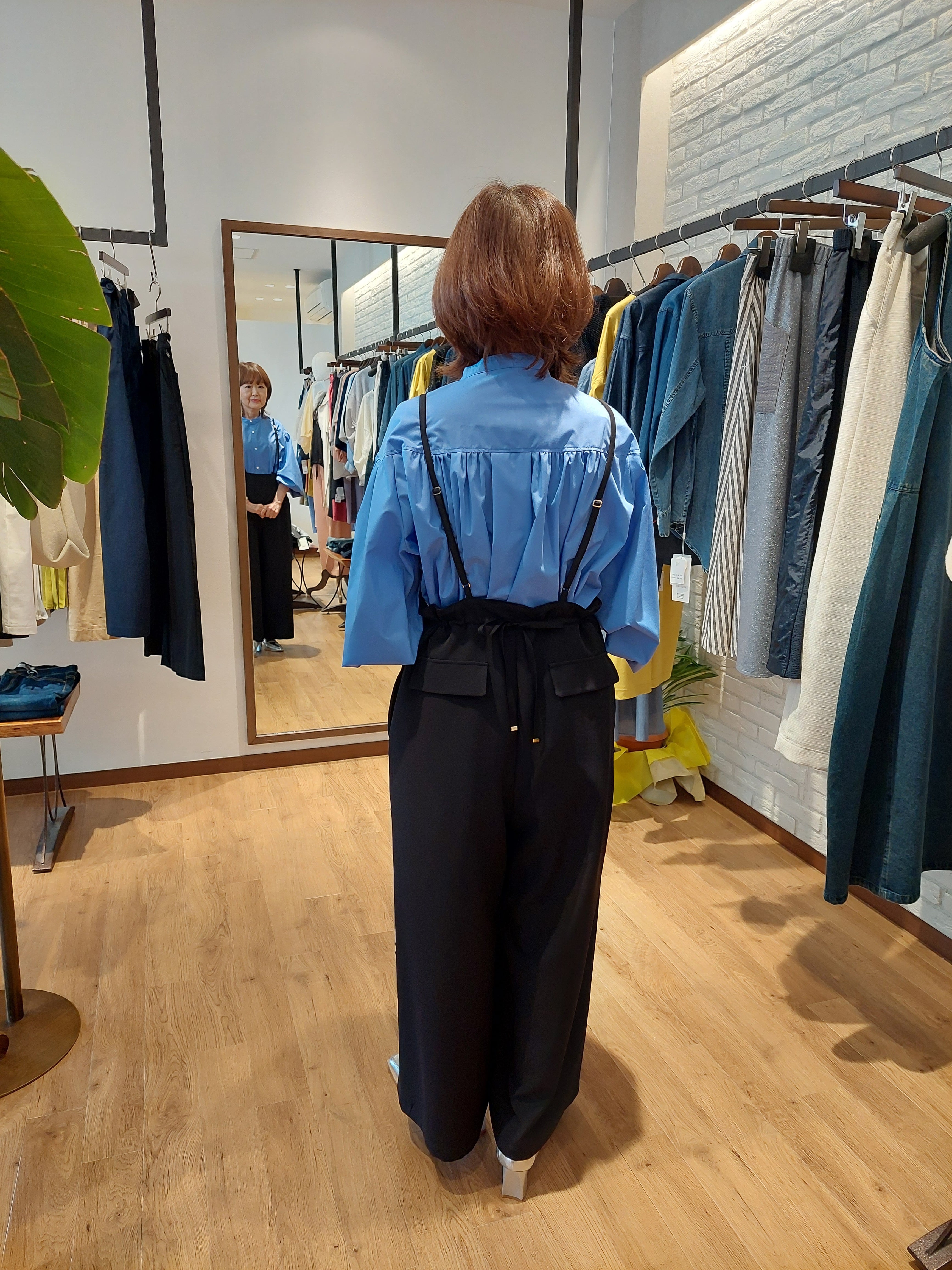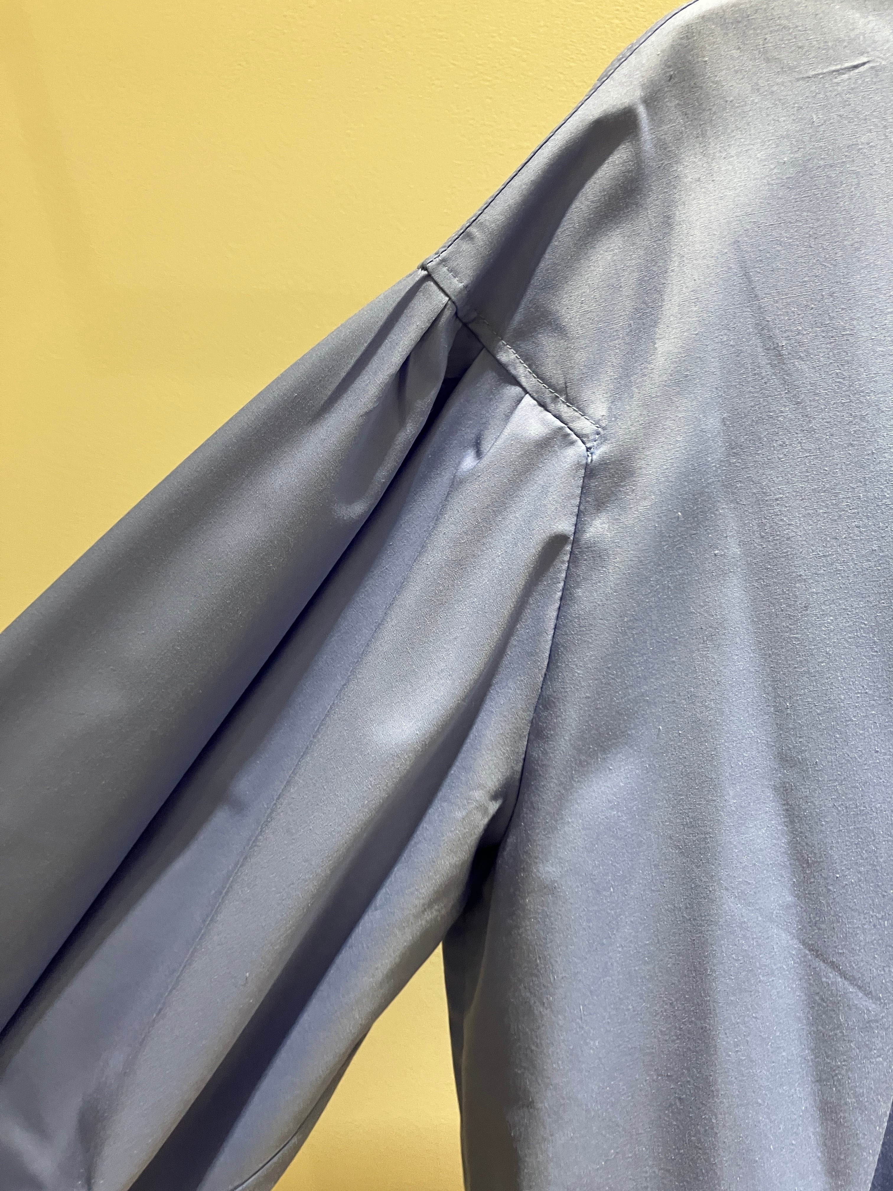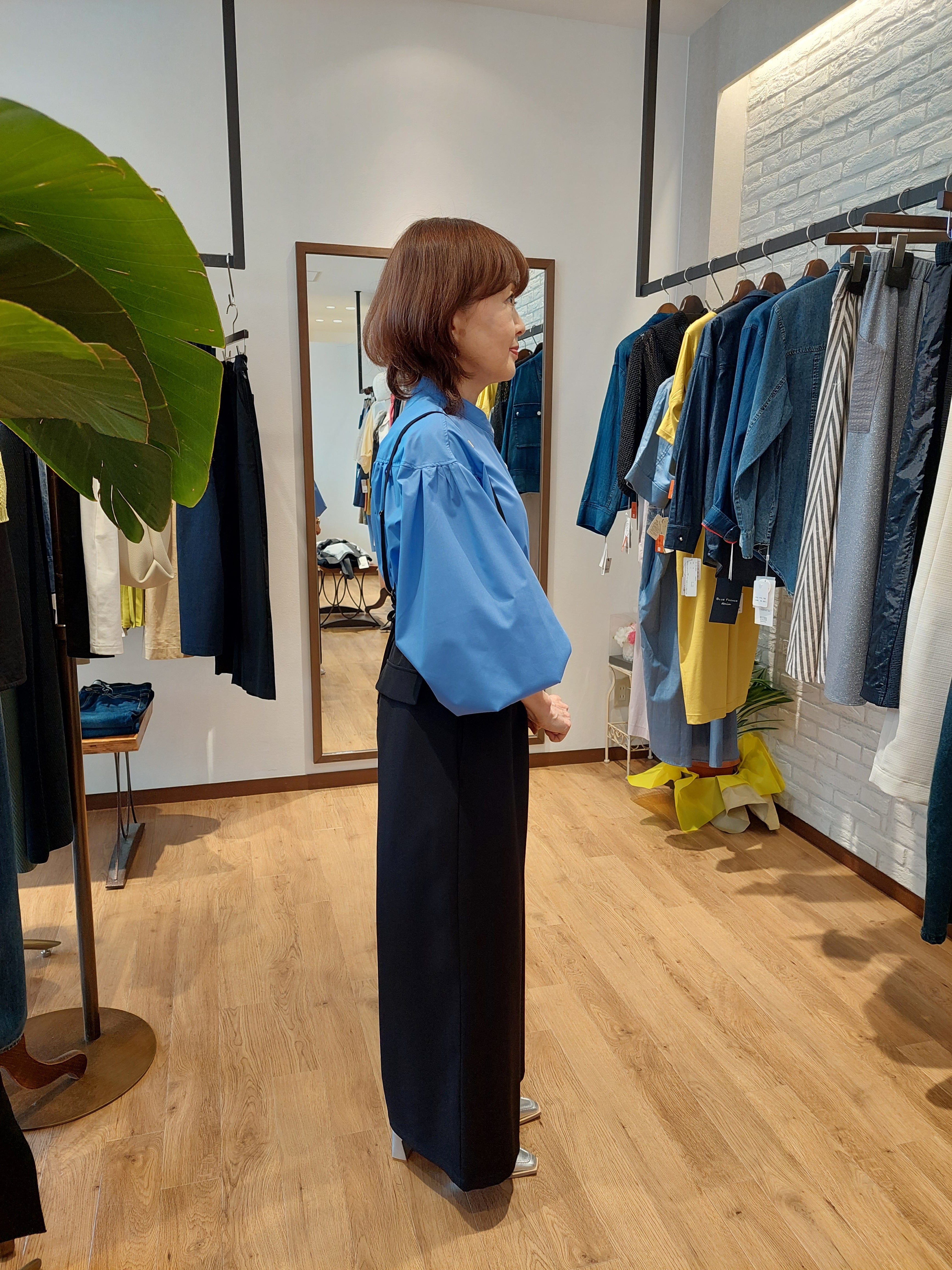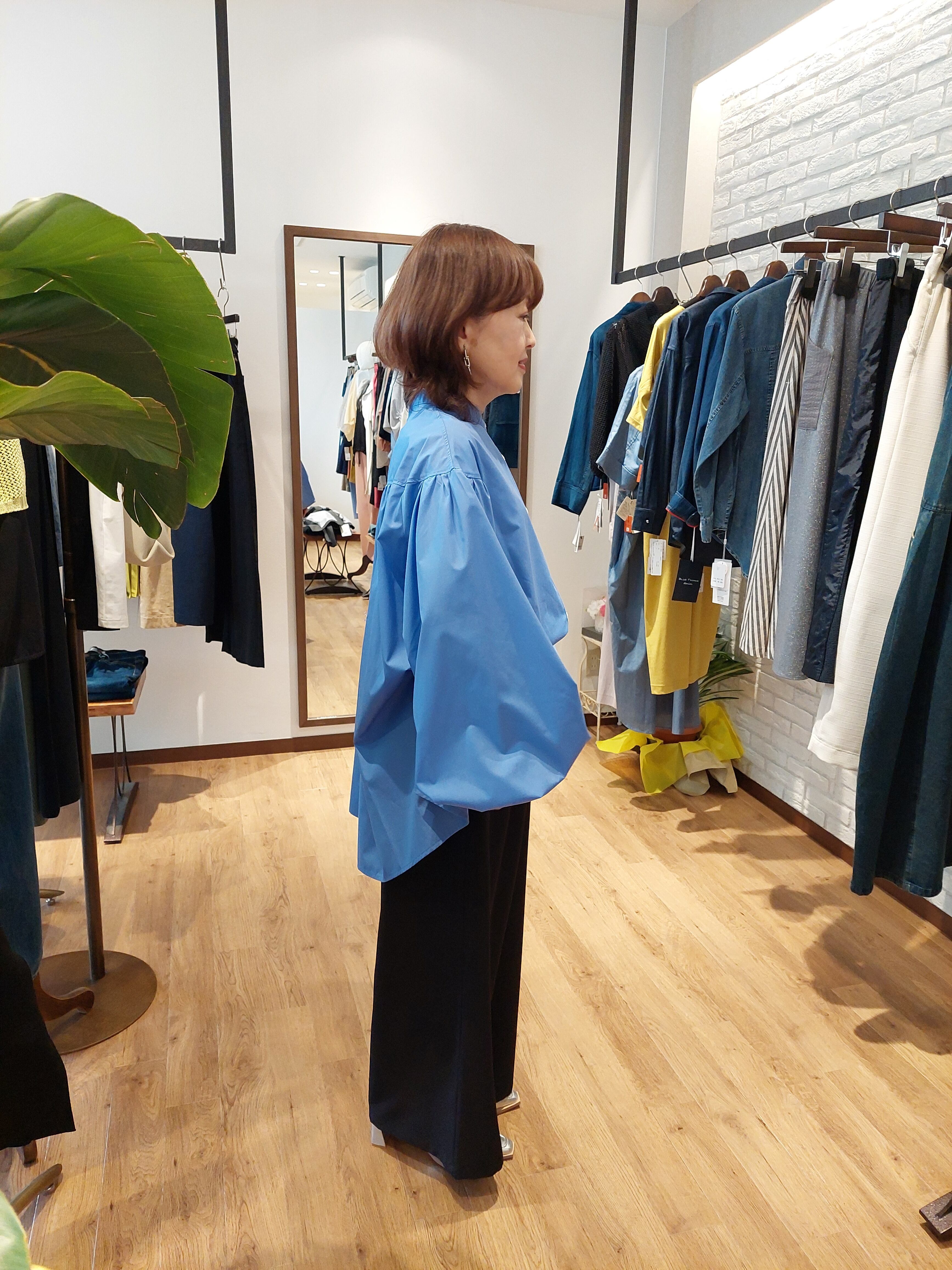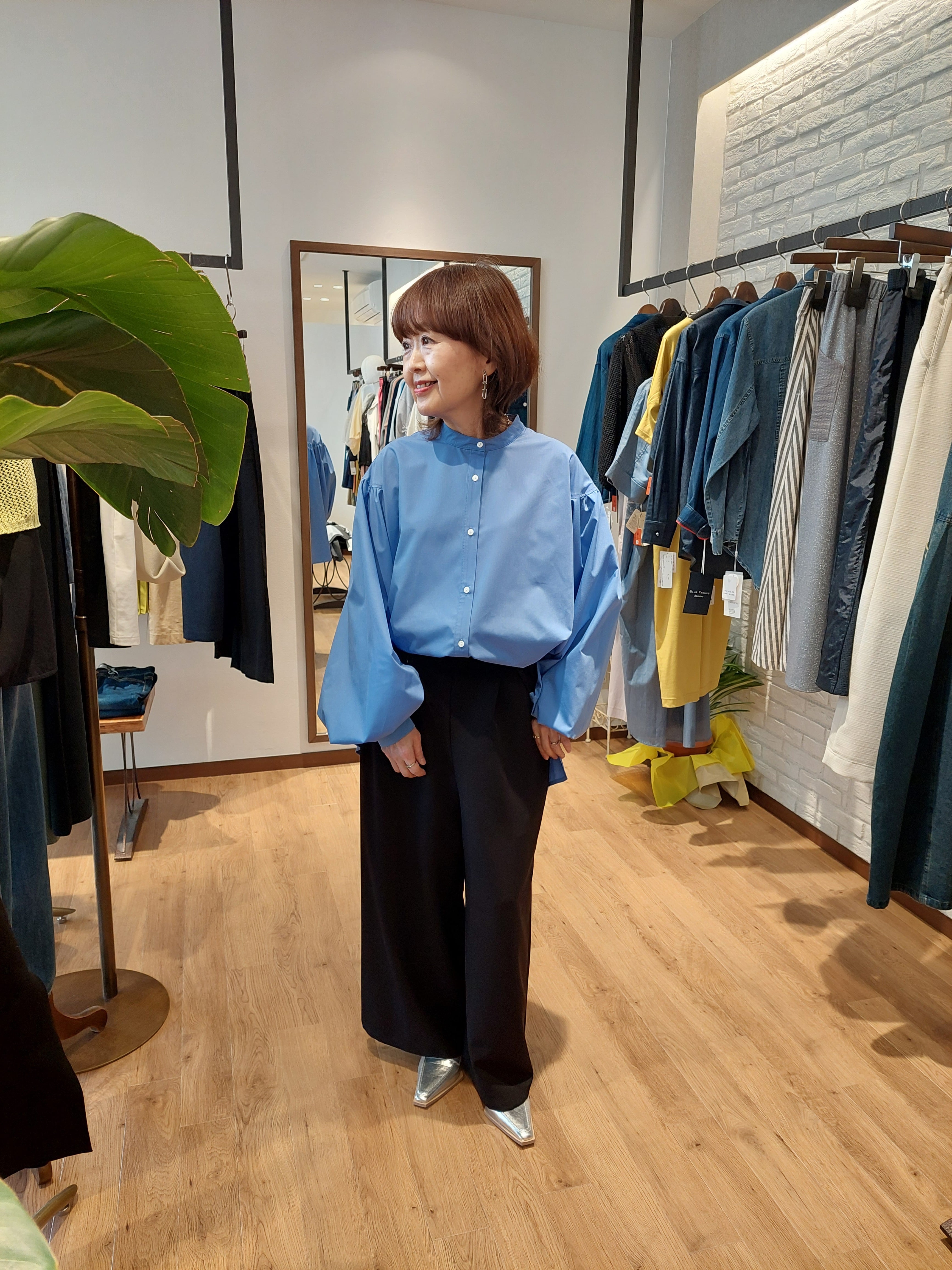 ふんわりとした立体的なシルエットが女性らしさを引き立てる「袖リブボリュームブラウス」。首元はすっきりとしたノーカラーデザインで、お顔周りをクリーンで知的な印象に見せてくれます。最大の魅力は、たっぷりとギャザーを寄せたボリューム袖。袖口がリブ仕様になっているため、たくし上げた時もしっかり止まり、よりぽわんとしたボリューム感を強調できるのが嬉しいポイントです。オンオフ問わず使える上品な素材感で、きれいめパンツとの相性はもちろん、デニムでカジュアルダウンしてもサマになります。一枚で着映えし、羽織りとしても活躍する、クローゼットの即戦力アイテムです。