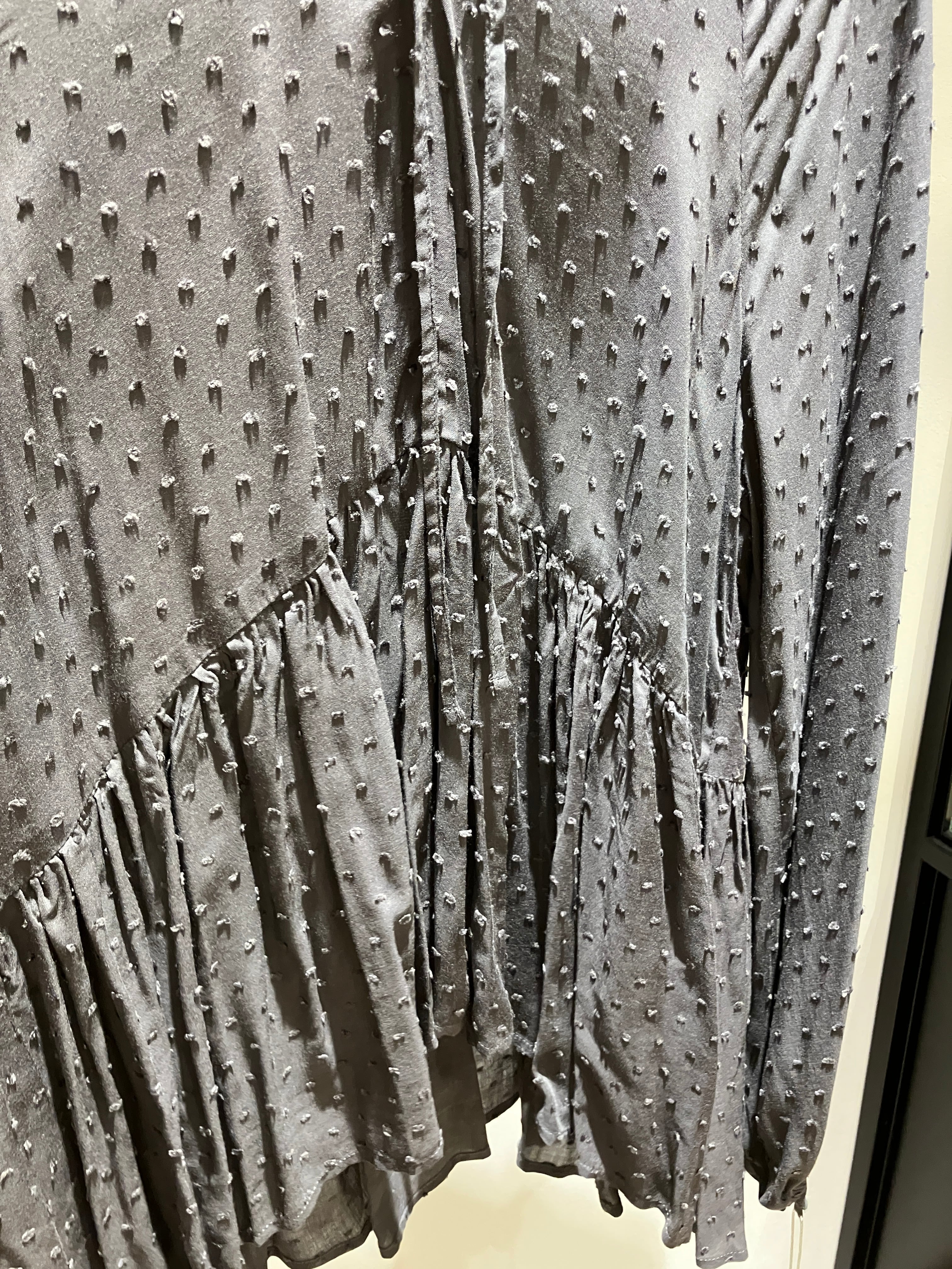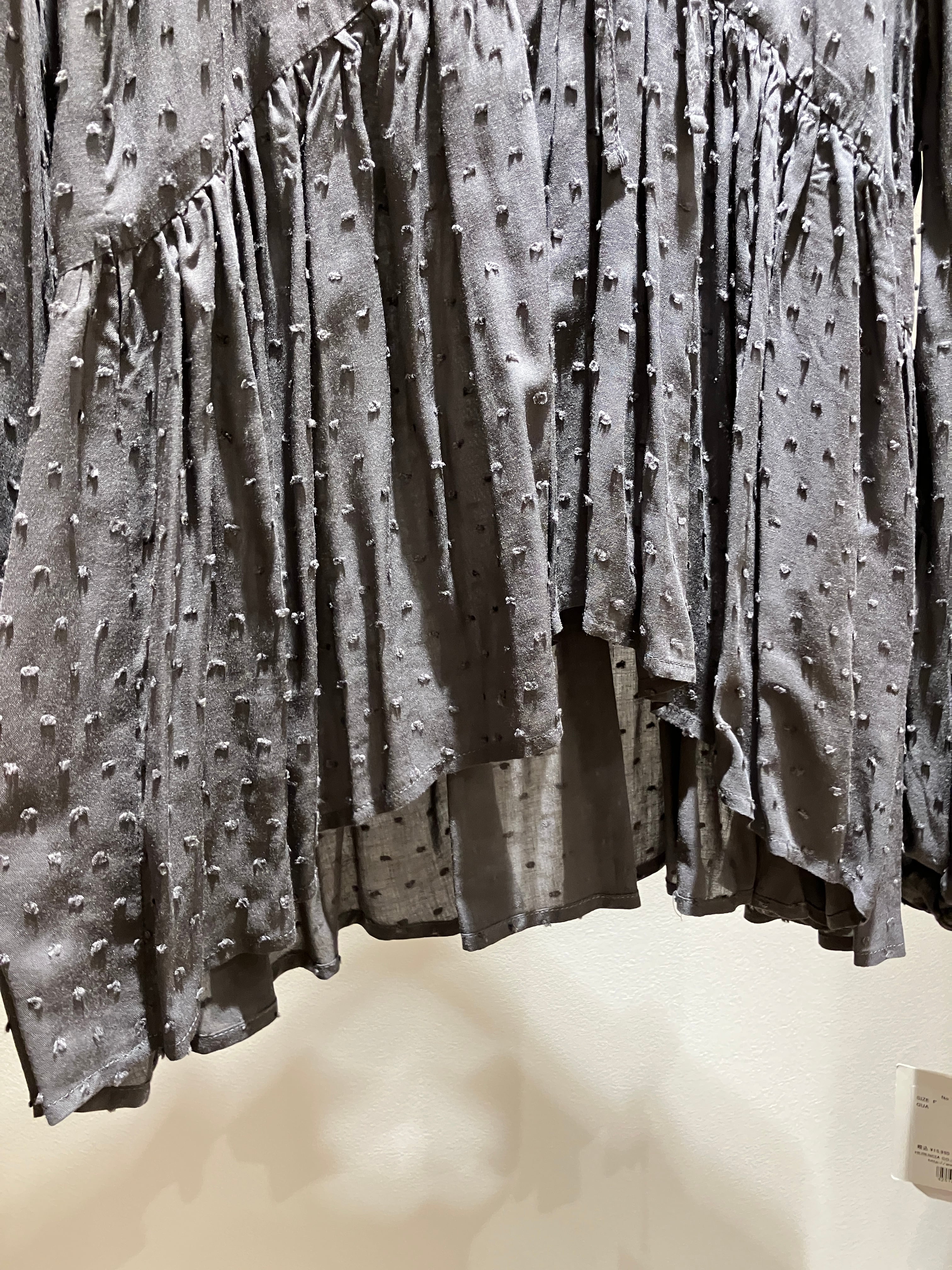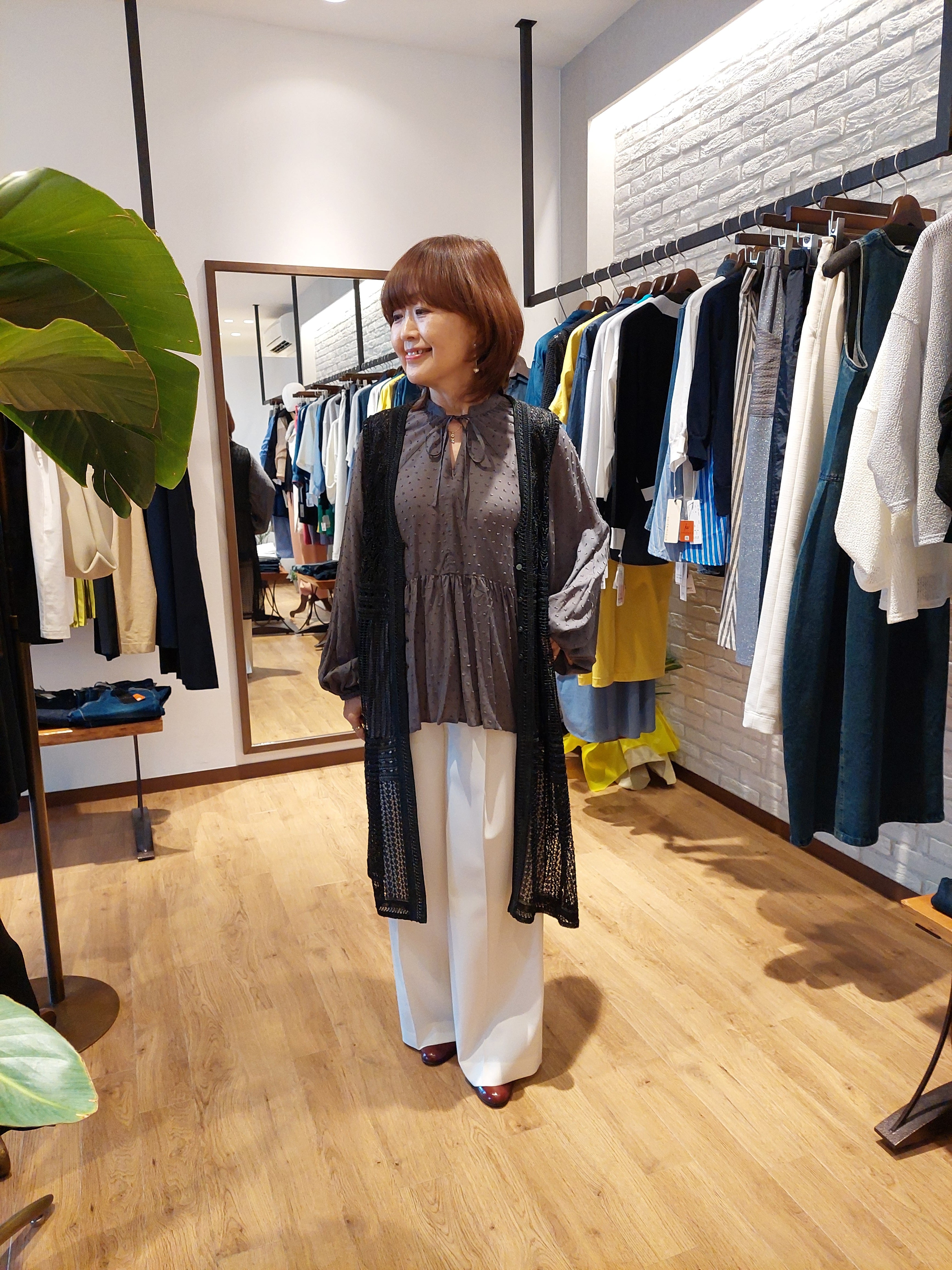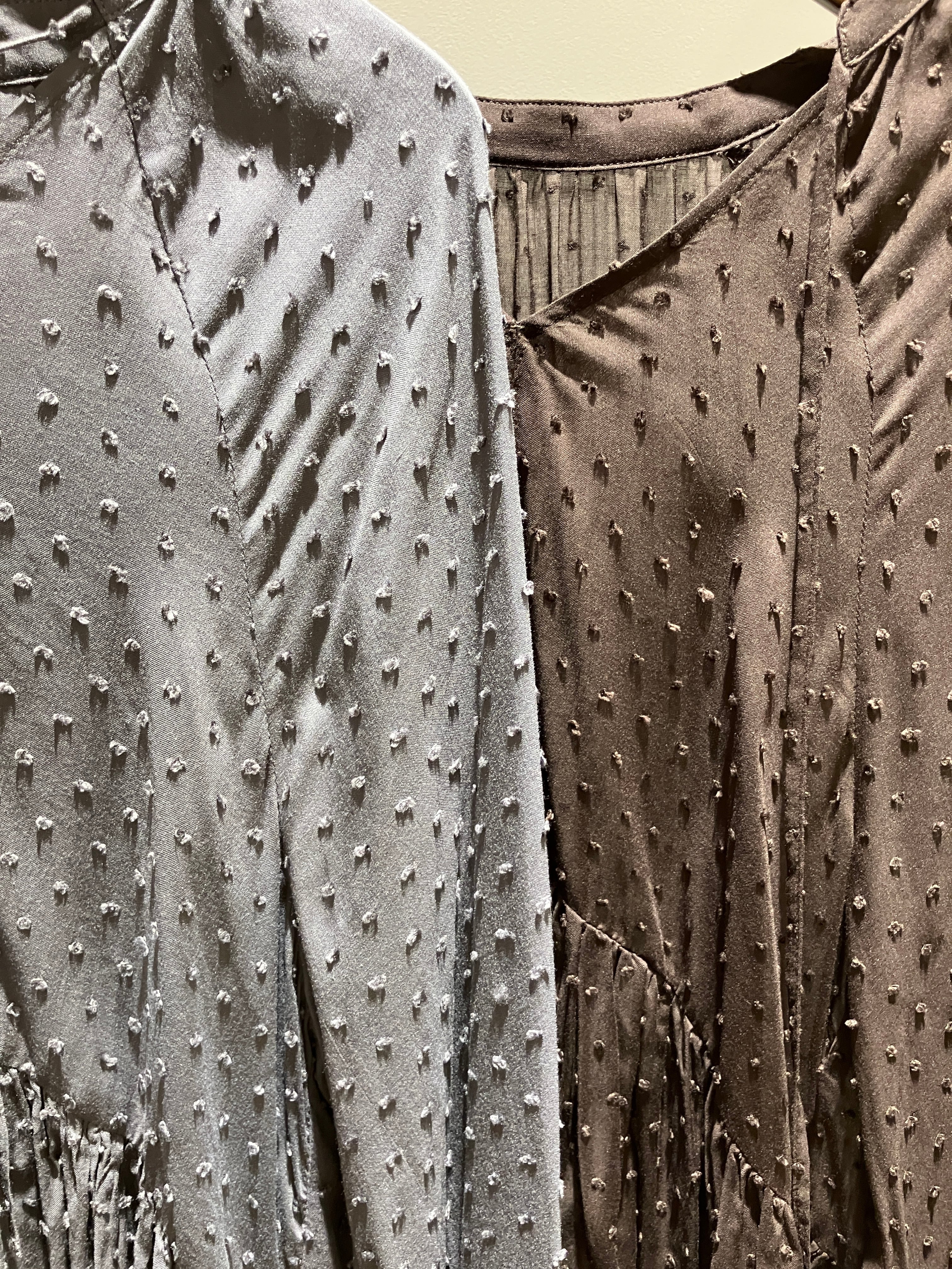 繊細なドット刺繍を全面にあしらった、クラシカルで華やかなデザインブラウス。肌を美しく透かす程よいシアー感のある生地が、ドット柄の甘さを抑え、大人っぽくヘルシーな印象に引き立ててくれます。衿元にたっぷりと施されたギャザーは、お顔周りをふんわりと優しく見せてくれる効果も。さらに、裾ギャザーのデザインによって自然なブラウジングが生まれるため、ボトムスにインしなくてもバランス良く決まるのが嬉しいポイントです。デニムでカジュアルに外しても、きれいめスカートで上品にまとめてもサマになる、着映え度抜群の一着です。