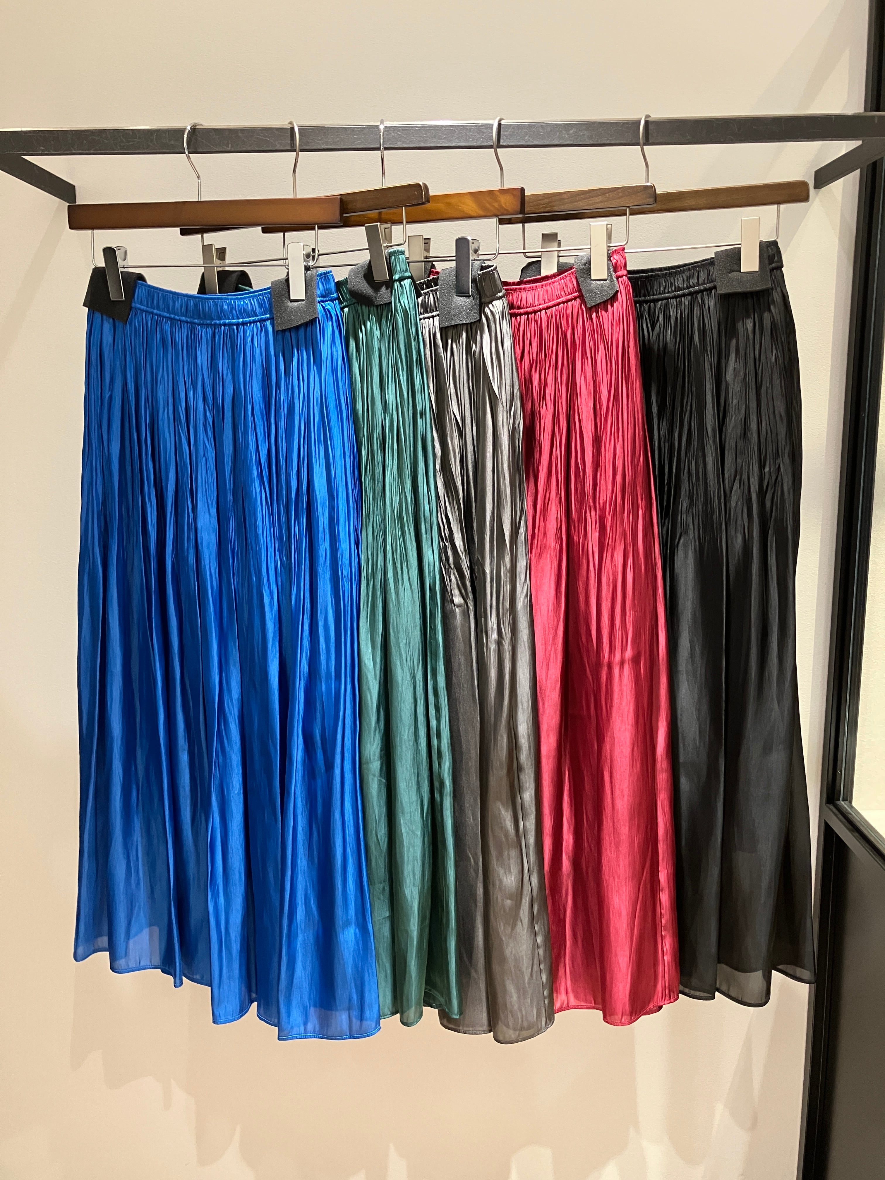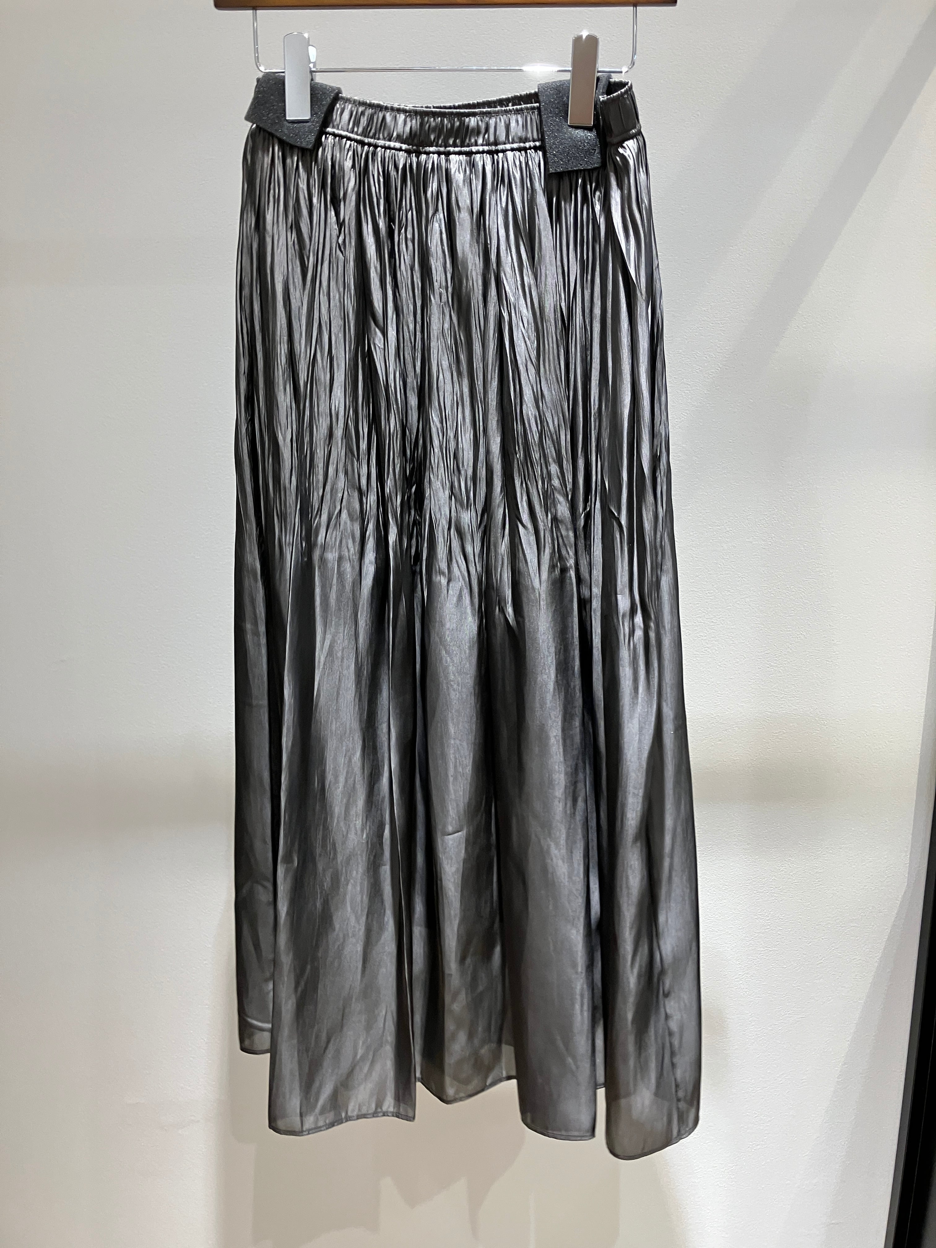 歩くたびに光を優しく反射する、軽やかなサテン地を贅沢に使用したギャザースカート。割線(かっせん)糸特有のヴィンテージライクなシボ感と、とろけるような落ち感が、大人のエレガンスを演出してくれます。たっぷりと寄せたギャザーが生み出す贅沢なボリュームがありながら、広がりすぎない絶妙なシルエットが魅力。裏地付きなので、薄手ながらも透け感を気にせず、さらりとした足捌きで一日中快適に過ごせます。シンプルなトップスと合わせるだけで、日常の装いをドラマチックに格上げしてくれる、ワードローブに彩りを添える一着です。