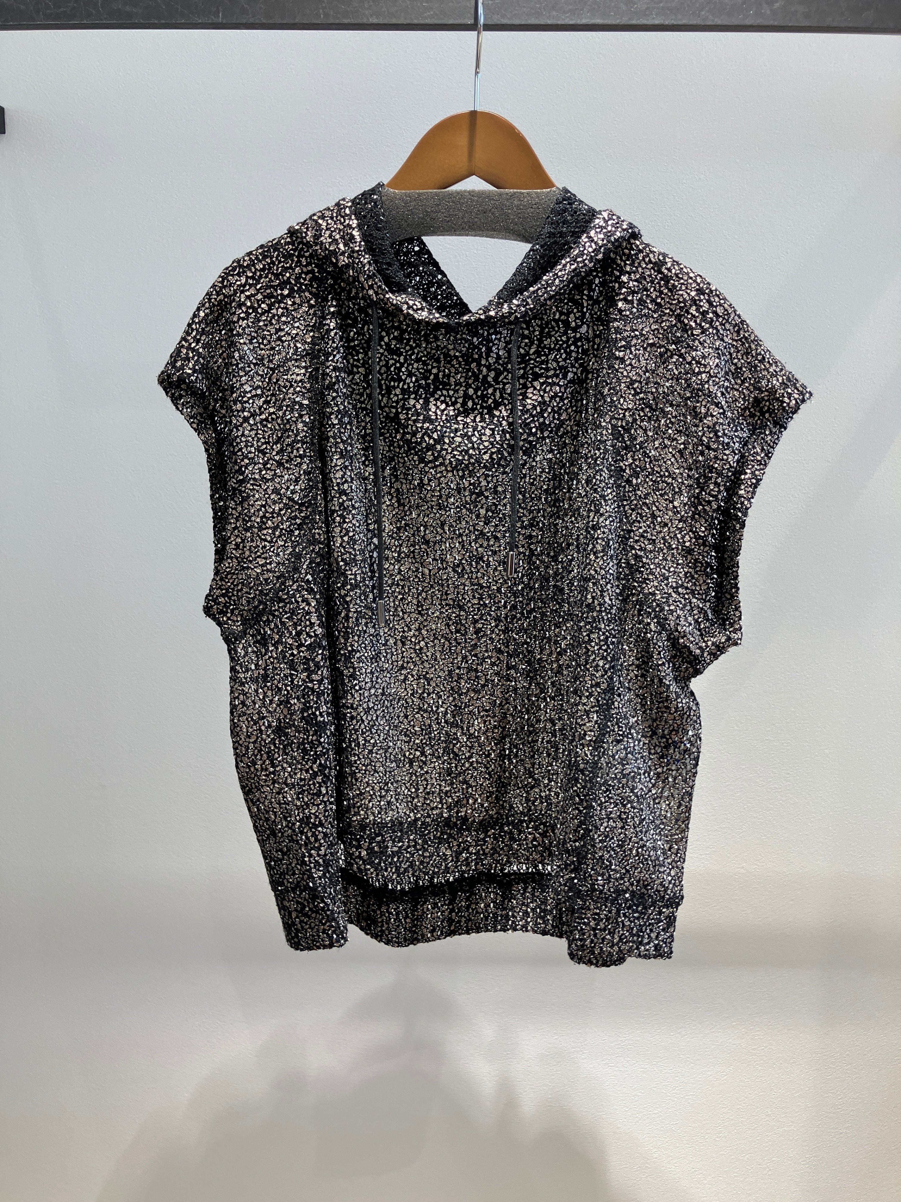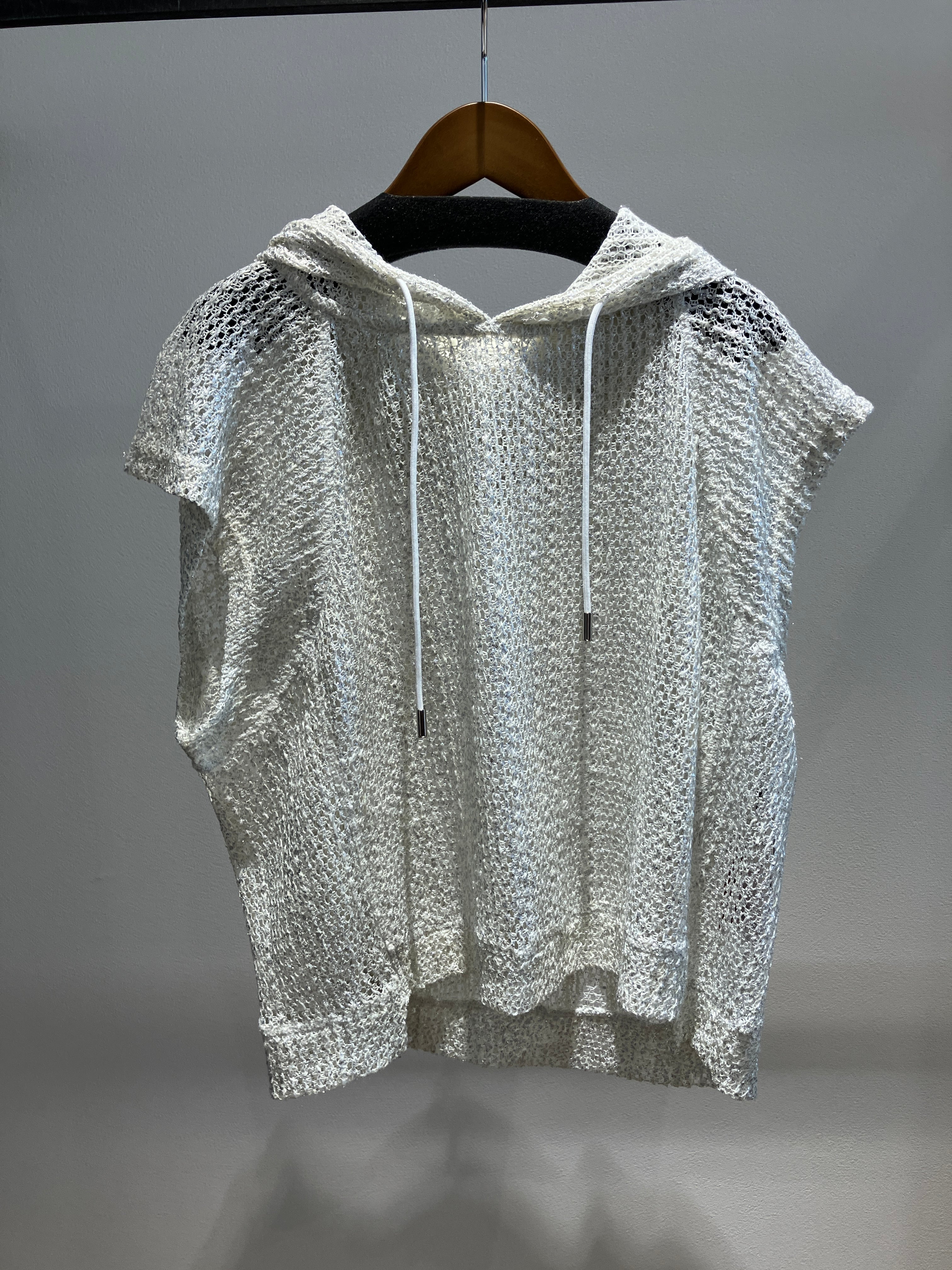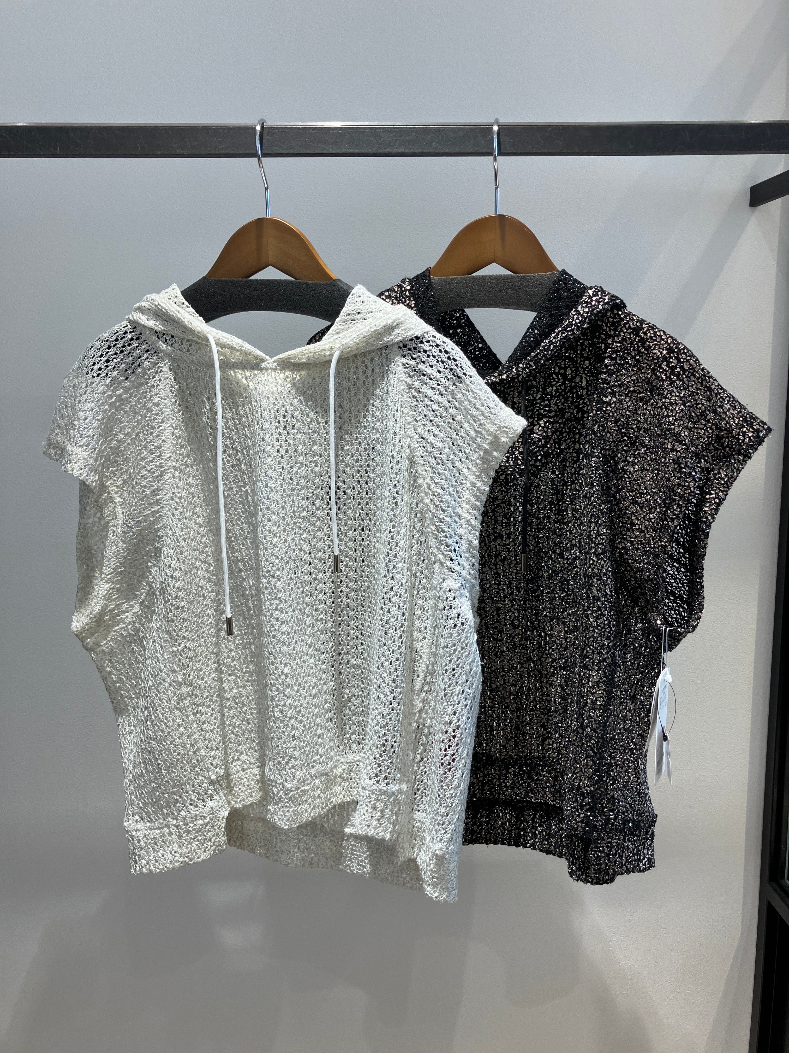 スポーティーなパーカを、大胆かつエレガントに刷新した一着。最大の魅力は、繊細なレース生地の上に施された、華やかな箔プリントです。光を受けるたびに上品に輝き、カジュアルな印象のパーカに洗練されたリッチなニュアンスをプラスしてくれます。全体に広がるシアー感が、女性らしい抜け感と軽やかさを演出し、これからの季節にぴったりな涼しげな佇まいに。シンプルなタンクトップやTシャツに合わせるだけで、格上げされたレイヤードスタイルが完成する、まさに「魅せるパーカ」です。