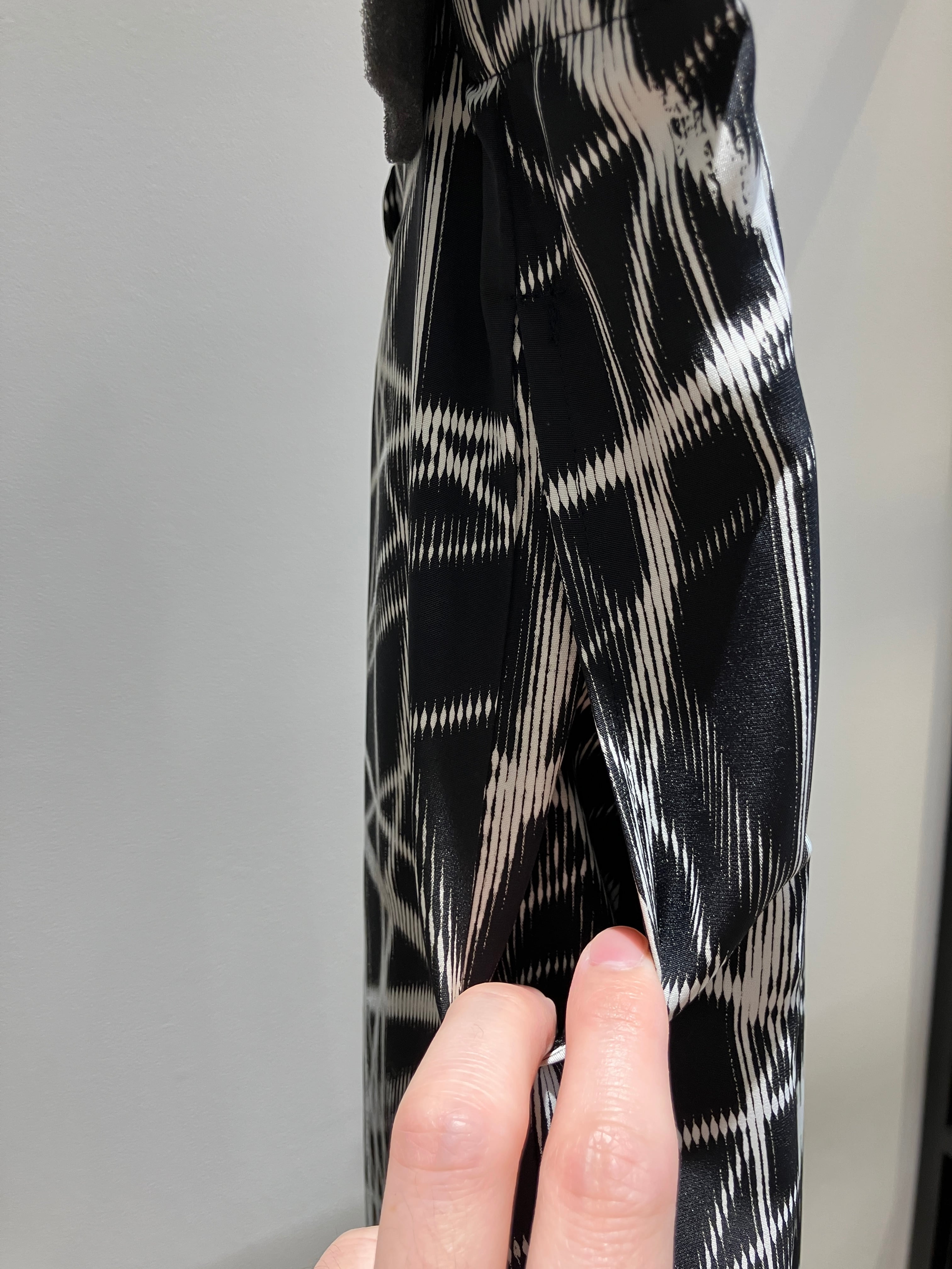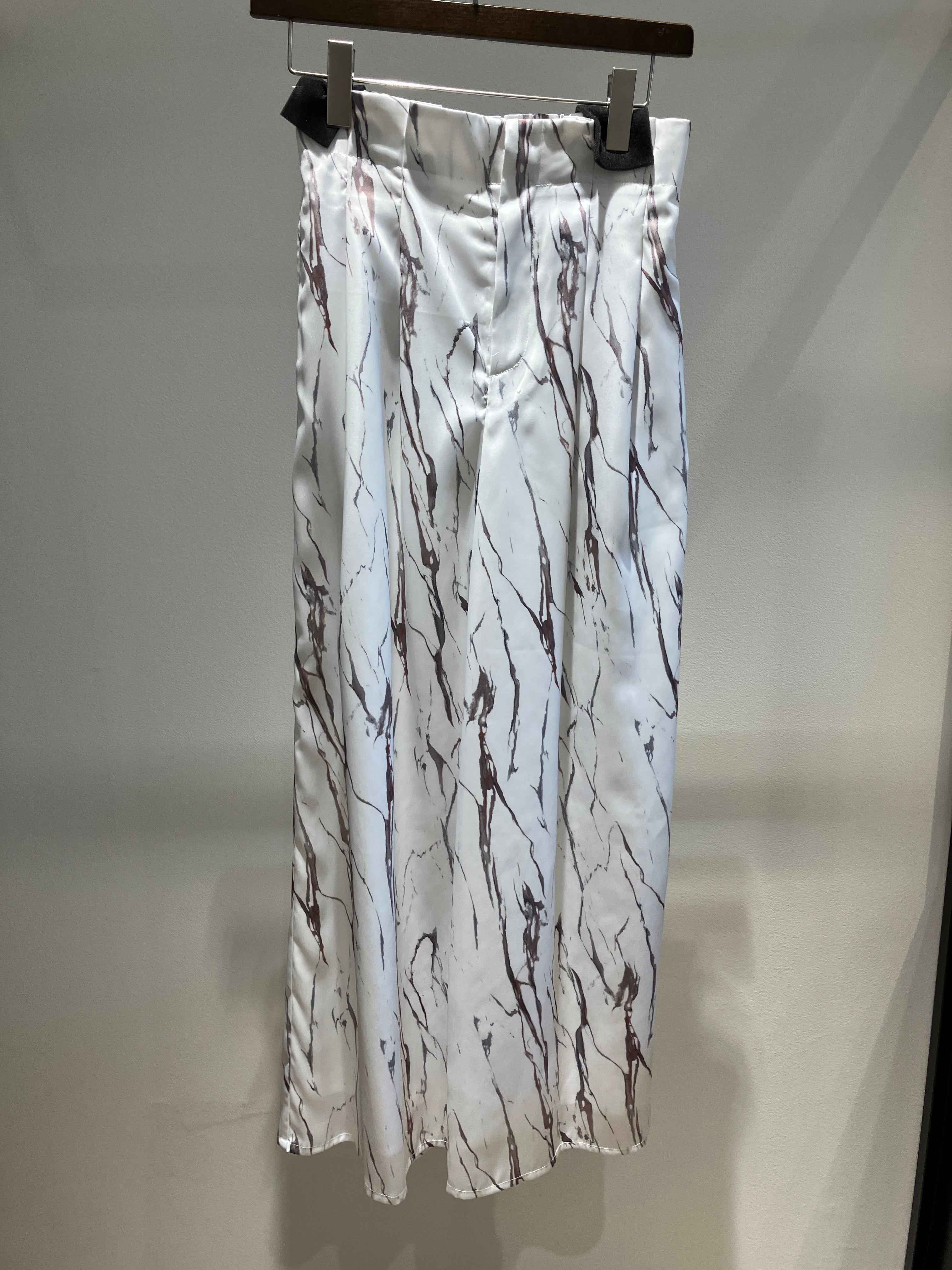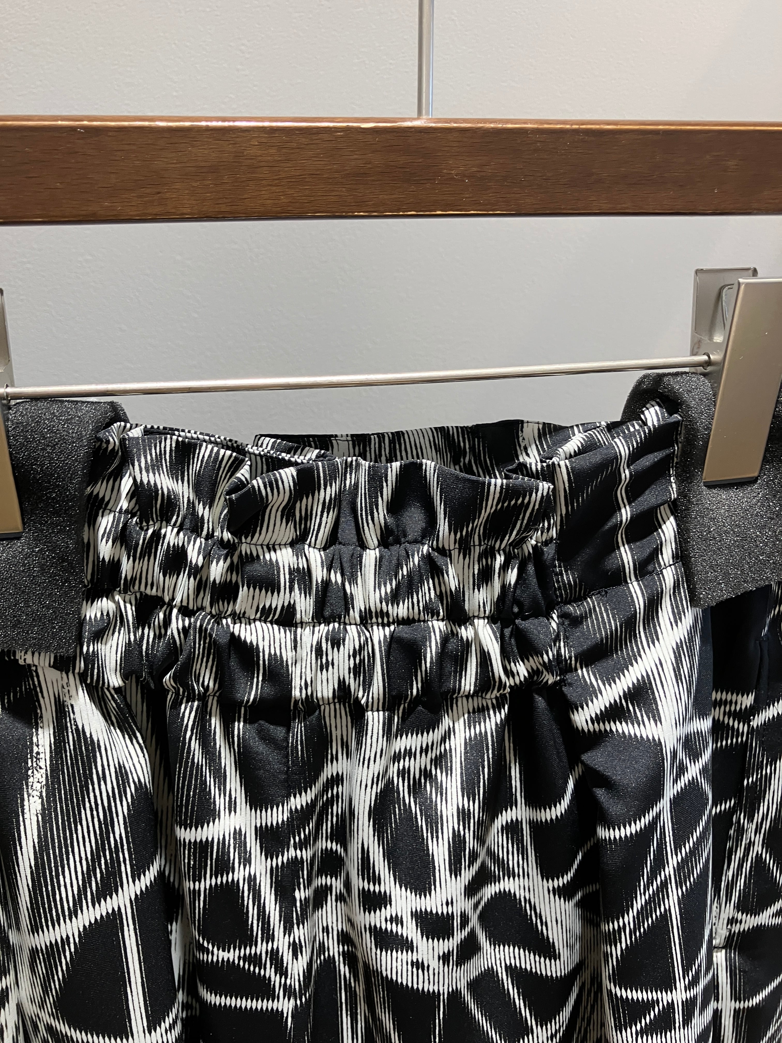 印象的な総柄でありつつモノトーンの落ち着きもあわせもつお洒落パンツ。