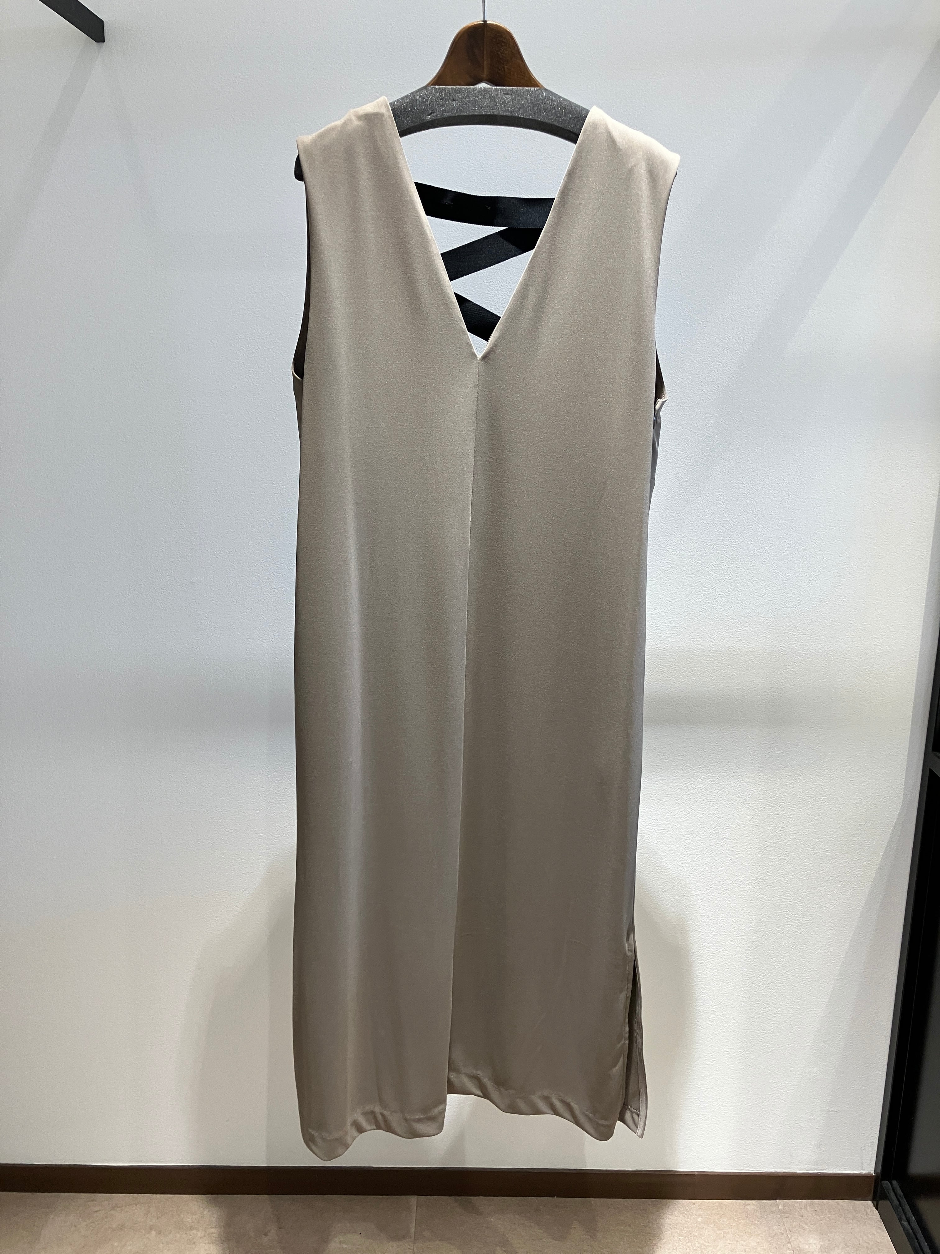 深めのVネックが印象的なレイヤードを楽しめるワンピースです。