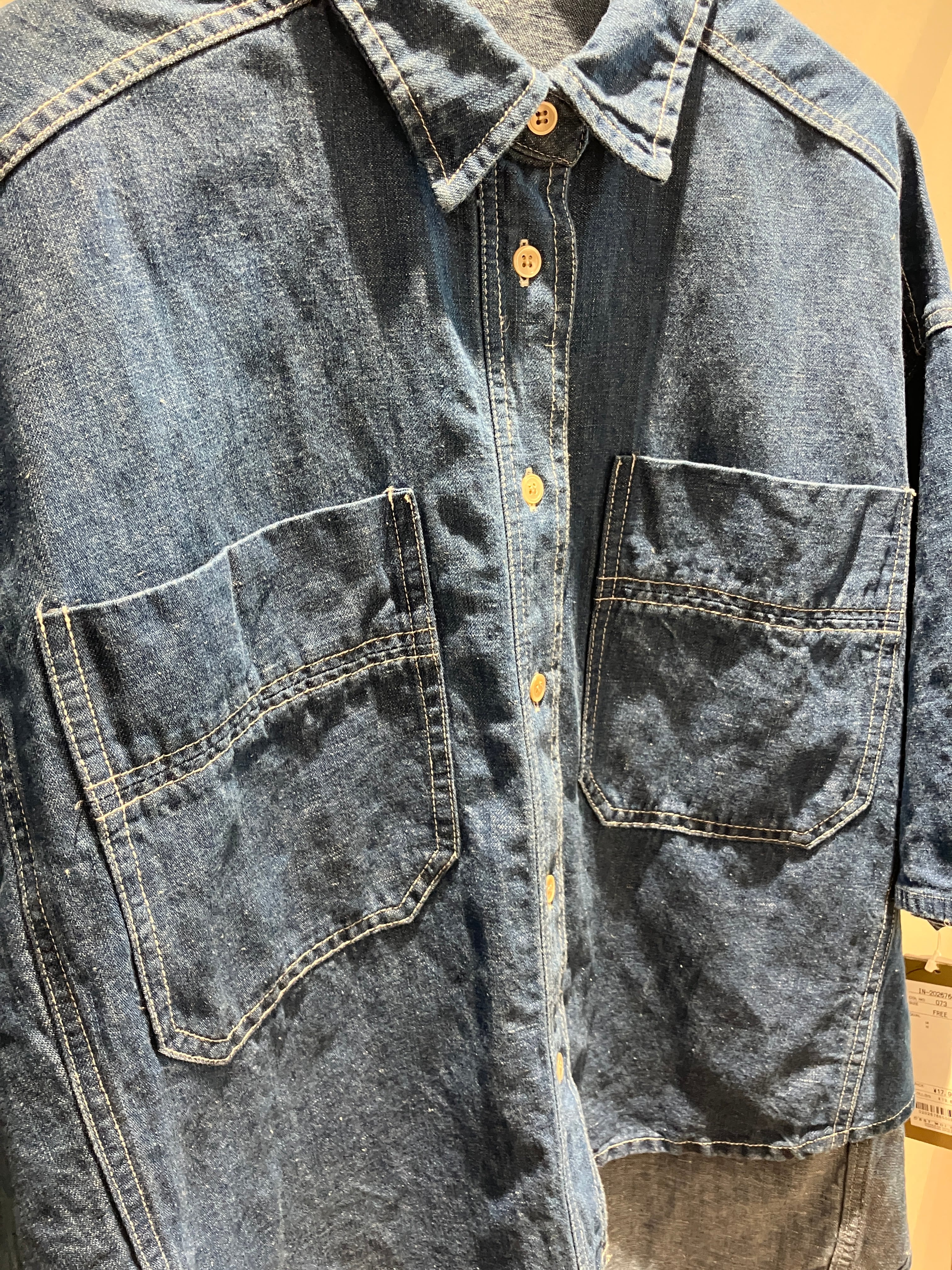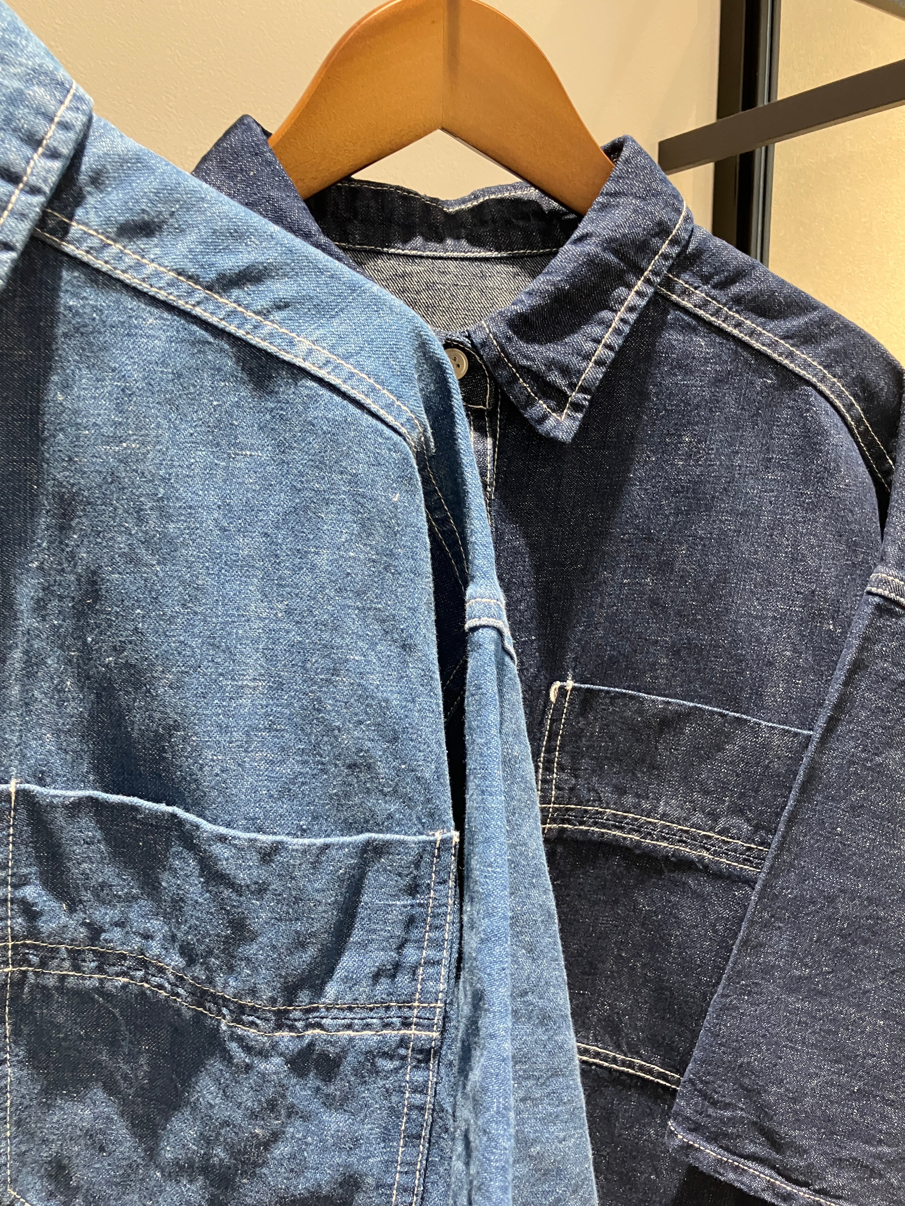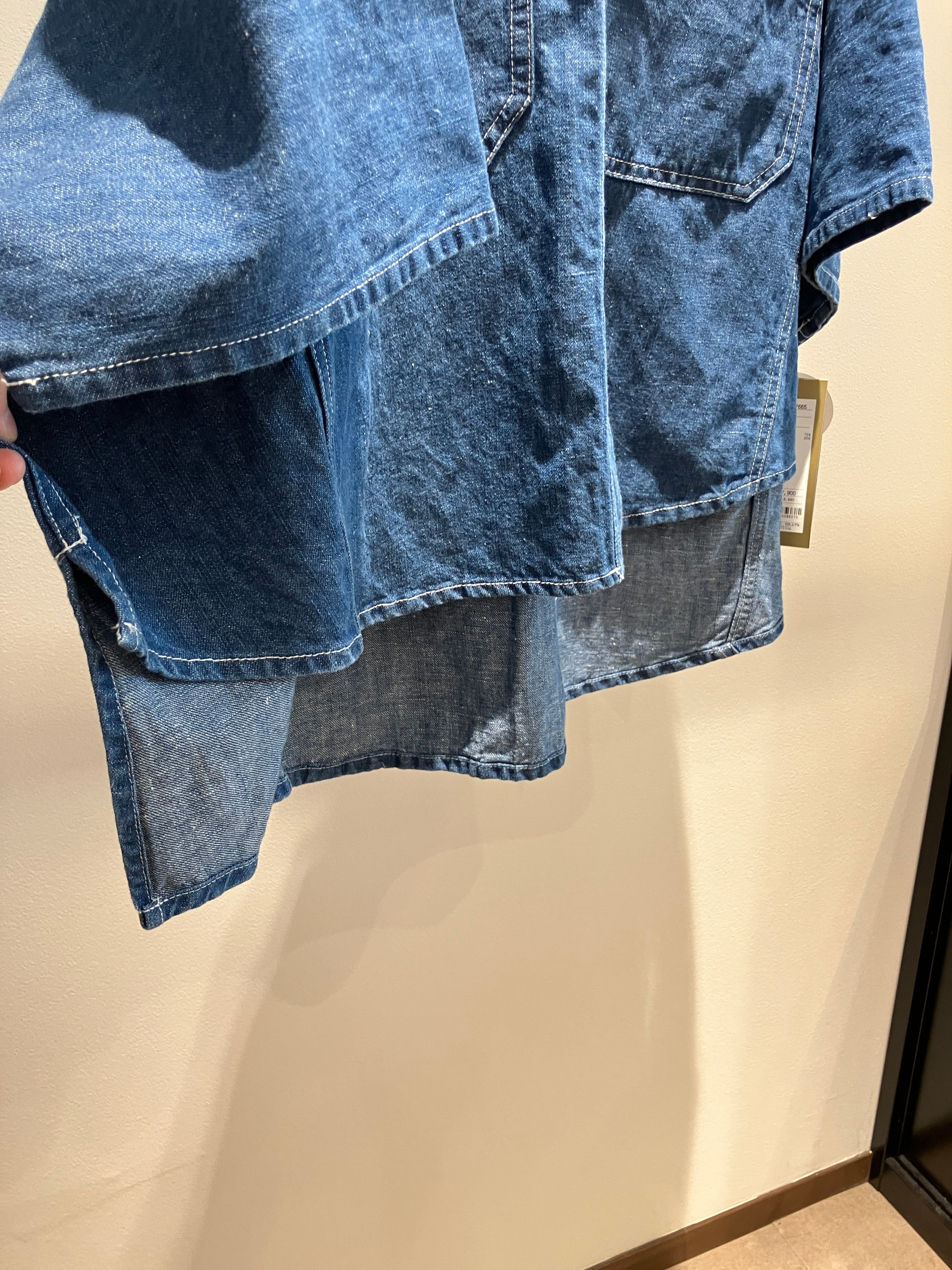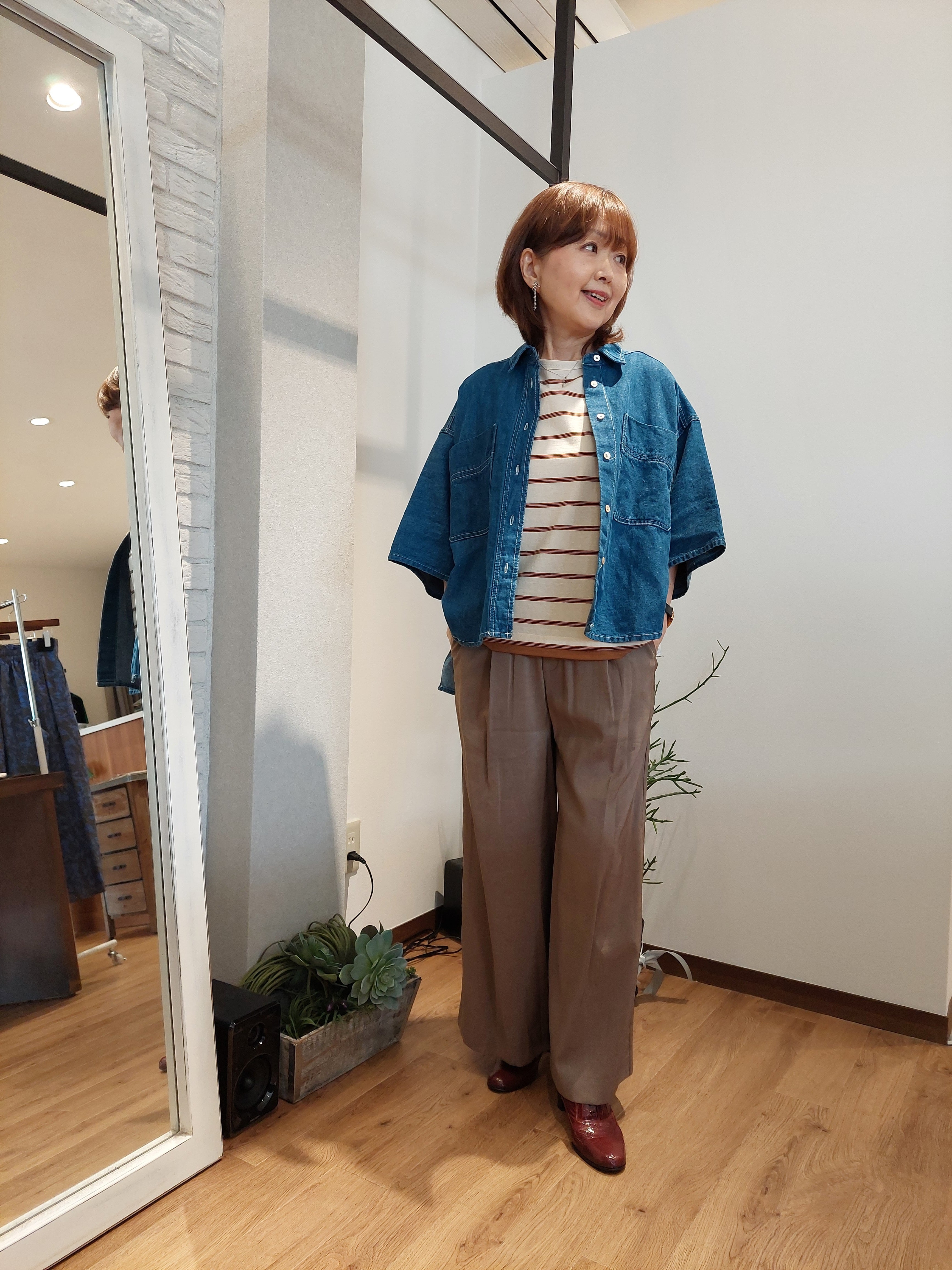 デニム特有のオーセンティックな表情に、さらりとしたリネン混の清涼感をプラスしたデニムブラウス。麻をブレンドすることで、通常のデニムよりも軽やかで、汗ばむ季節でも肌離れの良いドライな着心地を実現しました。ゆったりとしたドルマンスリーブが、肩から腕にかけてのラインを優しくカバーしつつ、こなれたニュアンスのシルエットを演出。程よいハリ感があるため、一枚で着ても身体のラインを拾いすぎず、立体的に決まります。羽織りとしても優秀で、ボタンを閉めてプルオーバー風に着こなすのもおすすめ。使い込むほどに馴染む風合いを楽しみながら、長く愛用したい一着です。