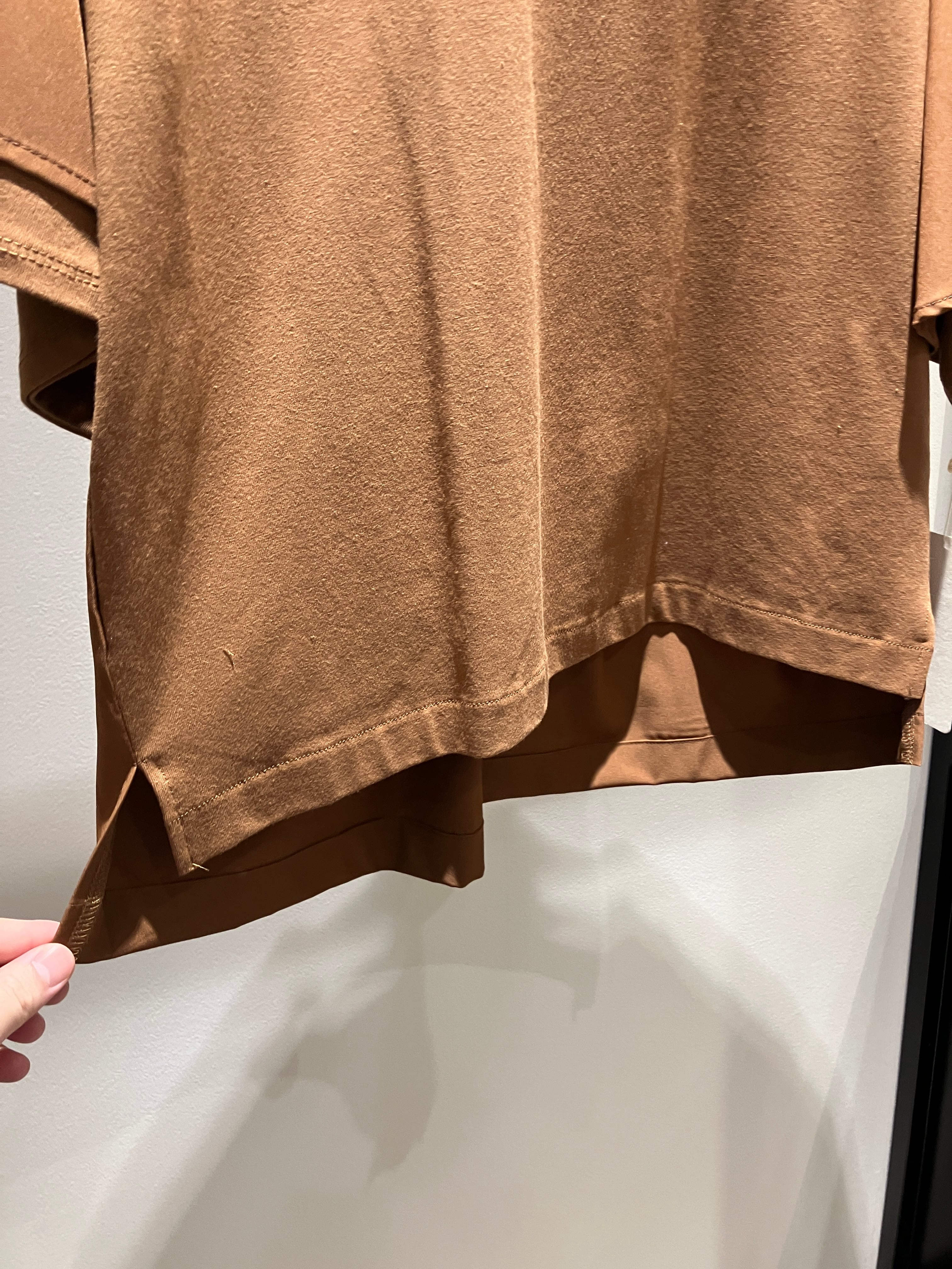 カジュアルなTシャツの枠を超えた、エレガントな佇まいの「フレア袖Tシャツ」。一番の魅力は、異素材で大胆に切り替えた袖フレアのデザイン。動くたびにふんわりと波打つドラマティックな袖先が、コーディネートに華やかな動きと女性らしさをプラスしてくれます。ボディーには肌離れの良いさらっとした素材感を採用し、汗ばむ季節でも涼しく、清涼感のある着心地をキープ。袖の切り替えが視線を外側に逃がしてくれるので、二の腕周りを自然にカバーしつつ、上半身を華奢に見せてくれるのも嬉しいポイントです。シンプルに一枚で着ても、こだわり抜いたディテールが「手抜き感」を感じさせない、夏の大人のための贅沢な一枚です。