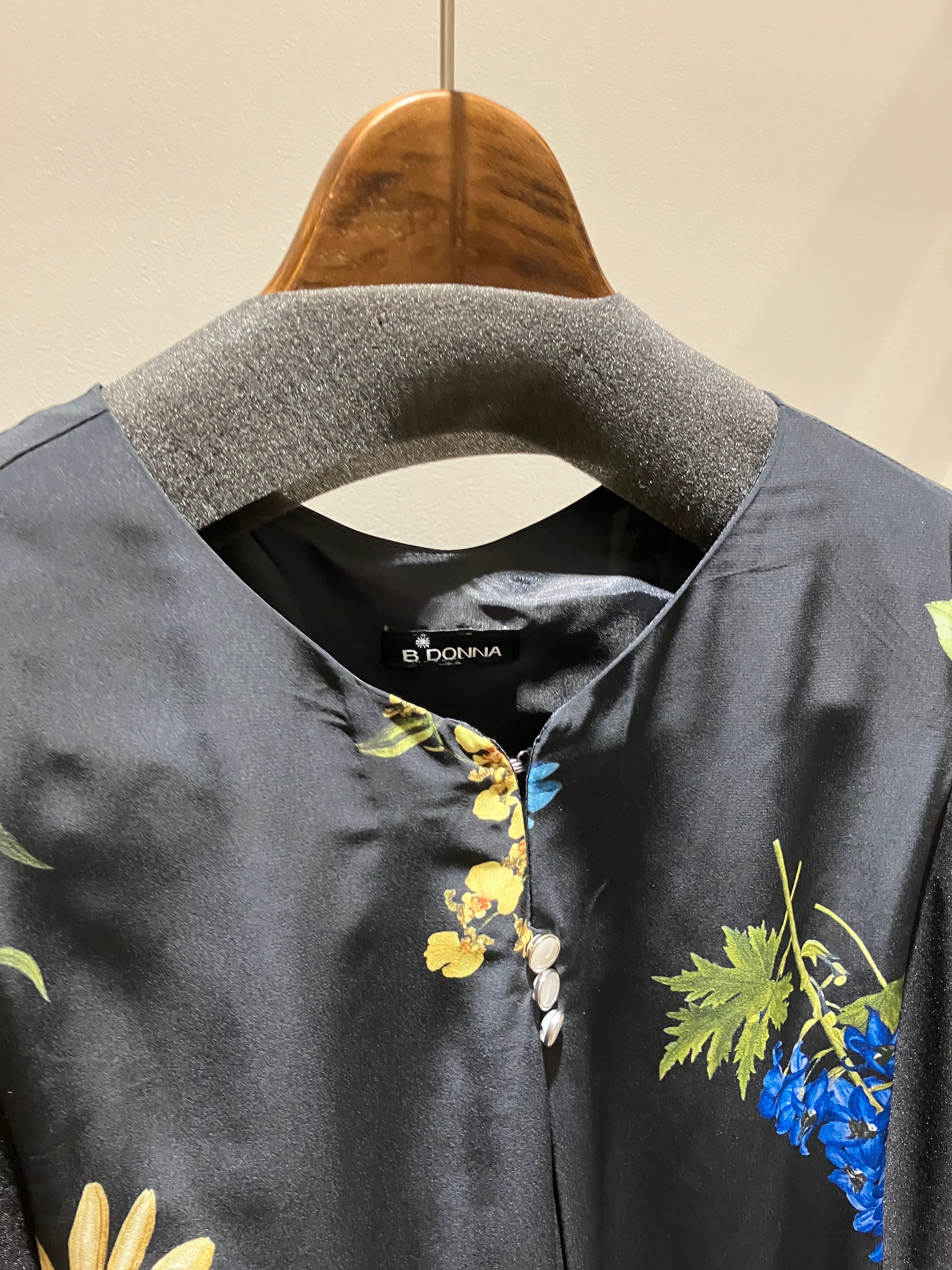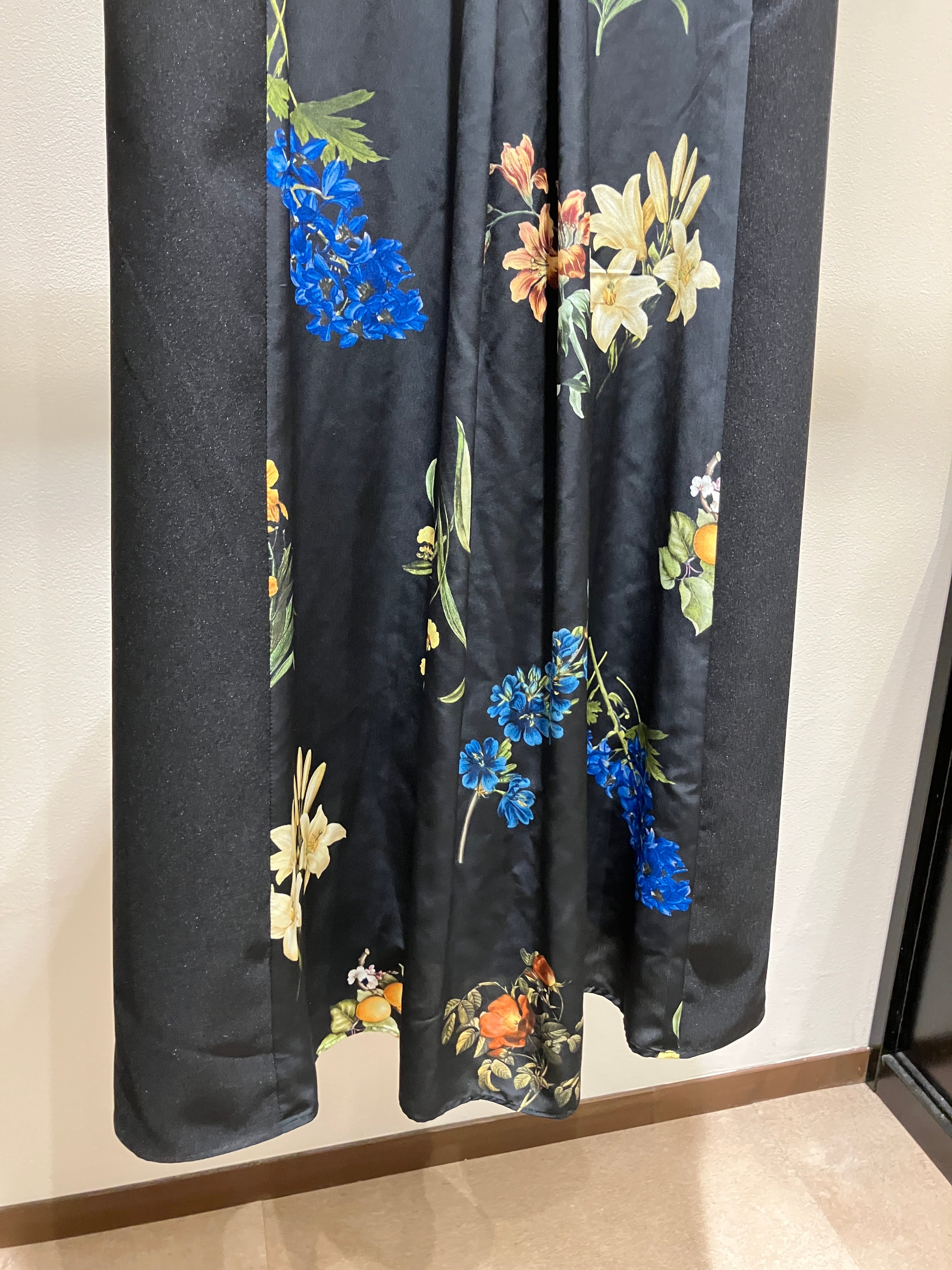程良いドレープ感があり、美しいシルエットを生み出します。繊細な花柄をデジタルプリントで仕上げました。(フェミニッシュデシン広巾インクジェットプリント)