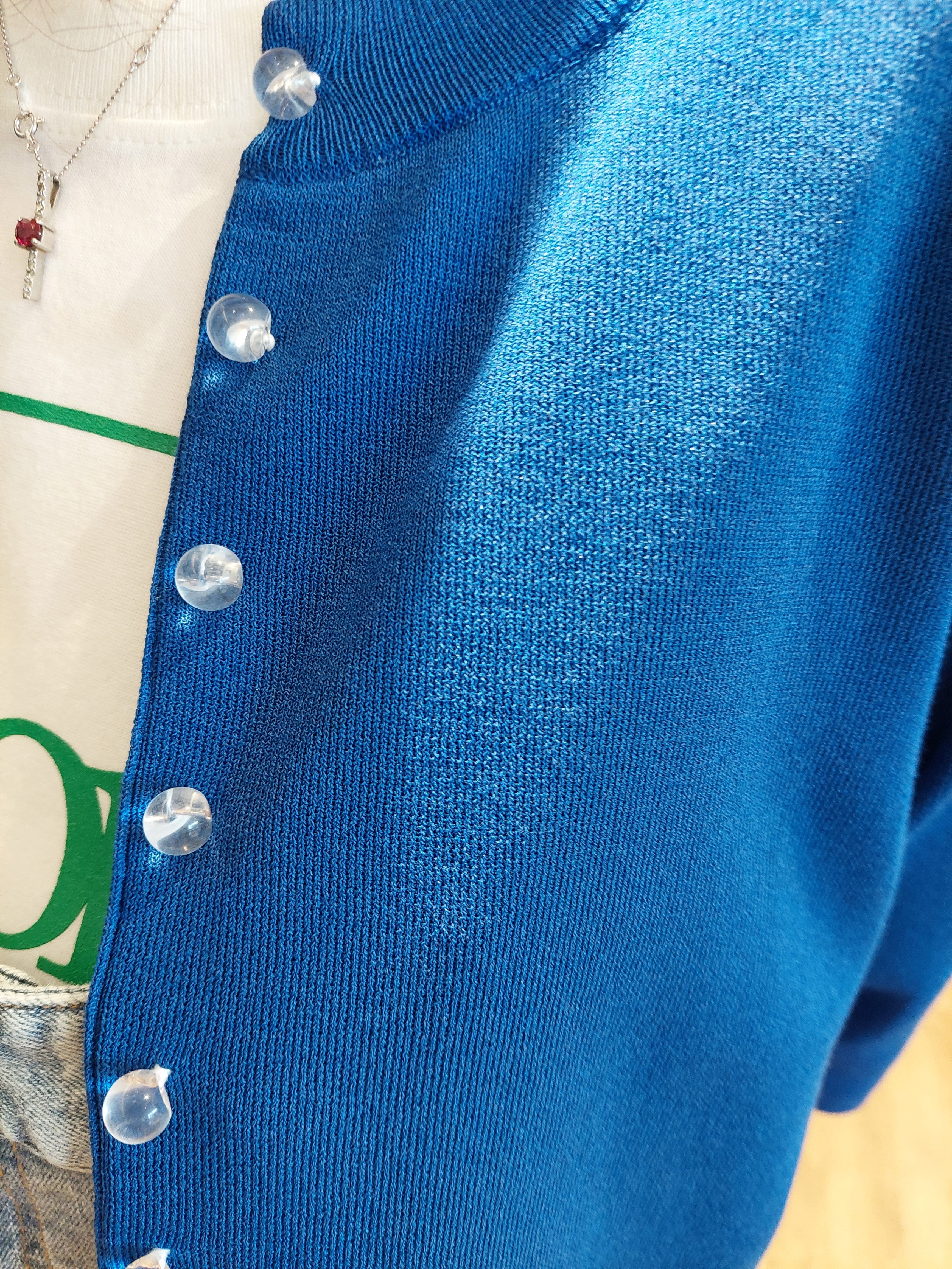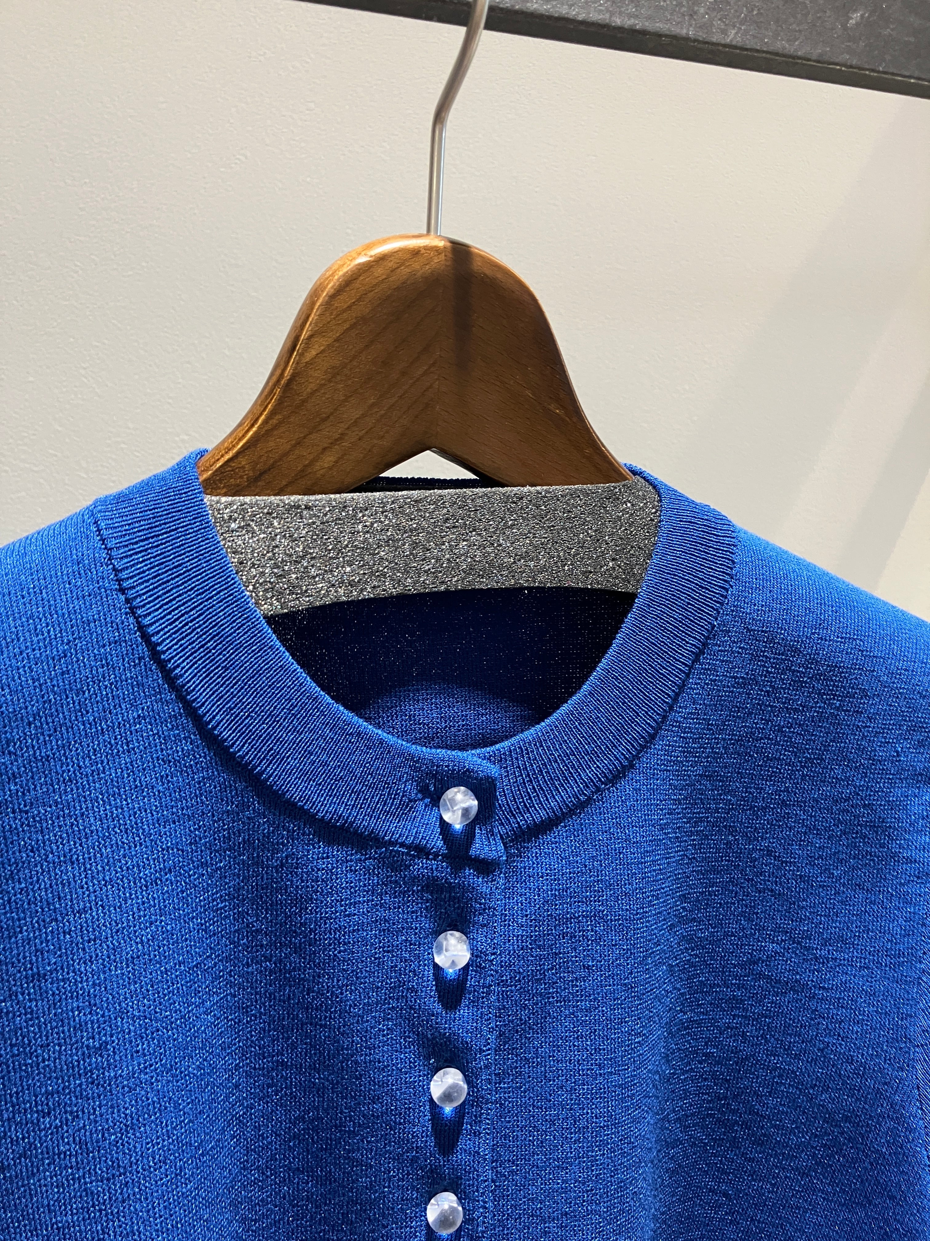 夏の羽織りに求める「欲しい!」をすべて詰め込んだ、高機能な「14G UVカットドライタッチ クルーネックカーディガン」。14ゲージのきめ細やかな編み地は、上品な薄さとさらりとした質感を両立しています。最大の魅力は、UVカット・接触冷感・吸湿速乾という、汗ばむ季節に嬉しい3つの機能性。着た瞬間にひんやりと感じる冷感素材が、夏の日差しや冷房対策に重宝します。フロントには透明感のあるボタンをあしらい、涼しげで軽やかなアクセントをプラス。Tシャツの上にさらりと羽織るだけで、夏のカジュアルスタイルを上品かつ快適に格上げしてくれる、この時期手放せない一着です。