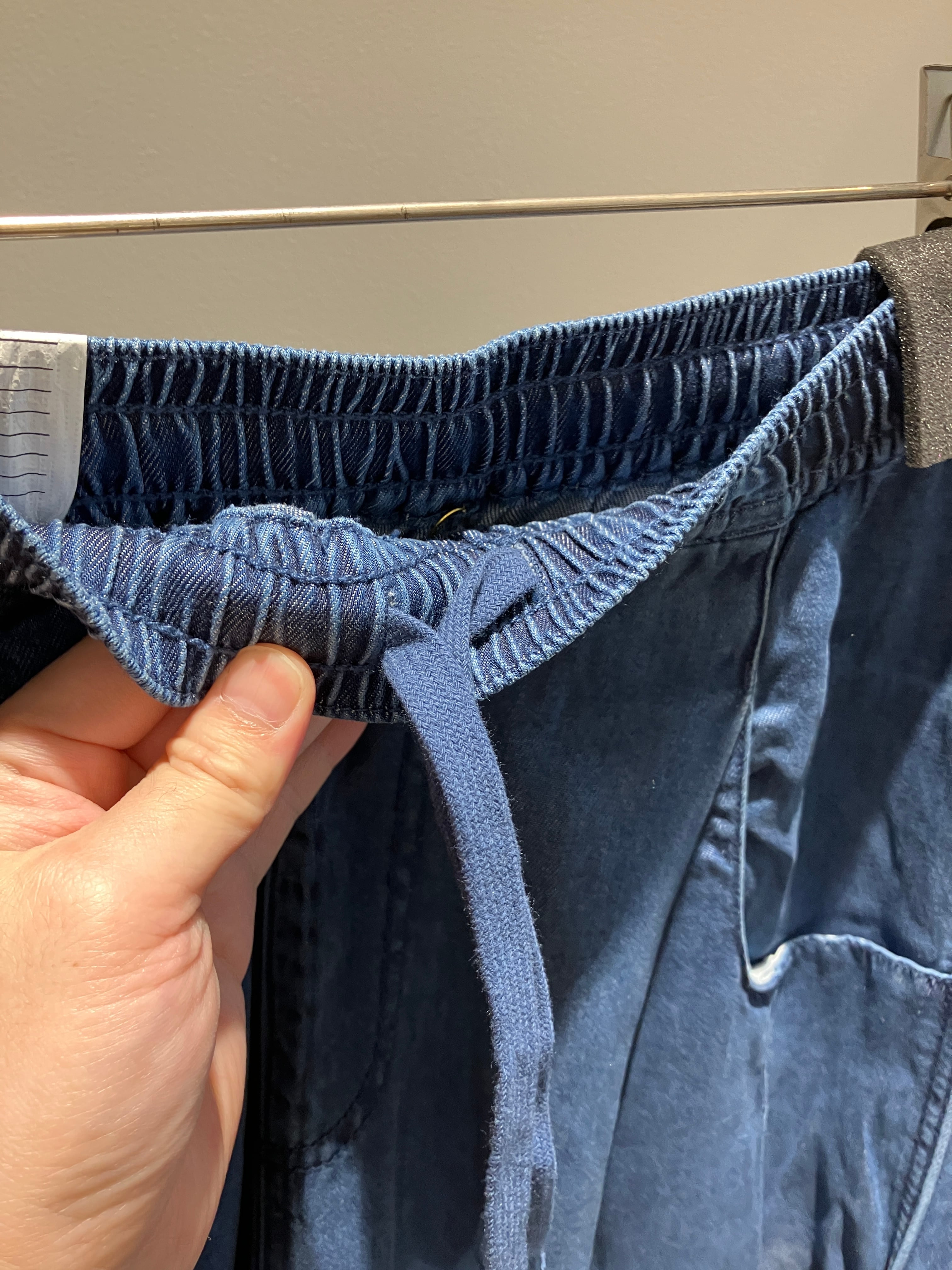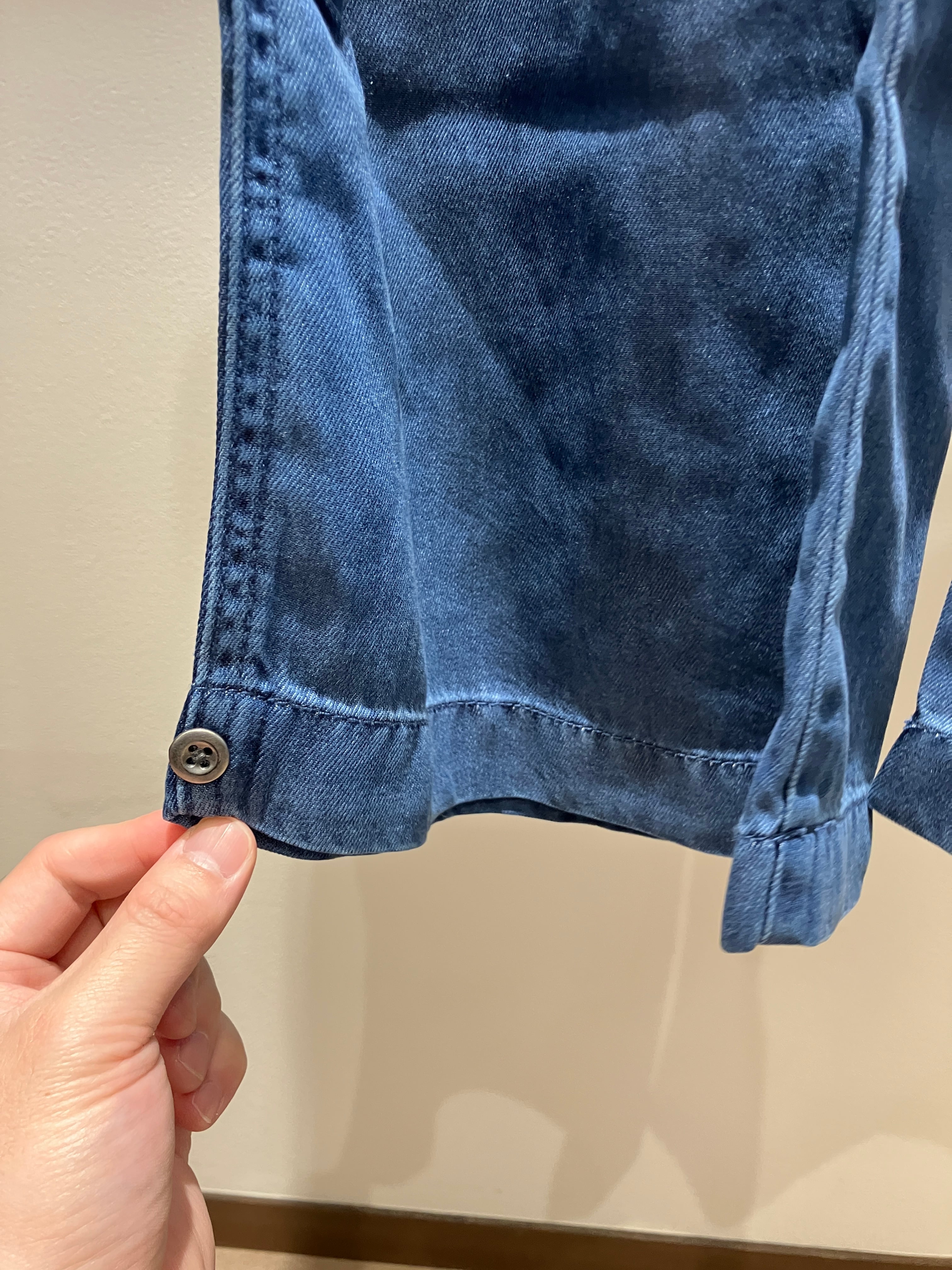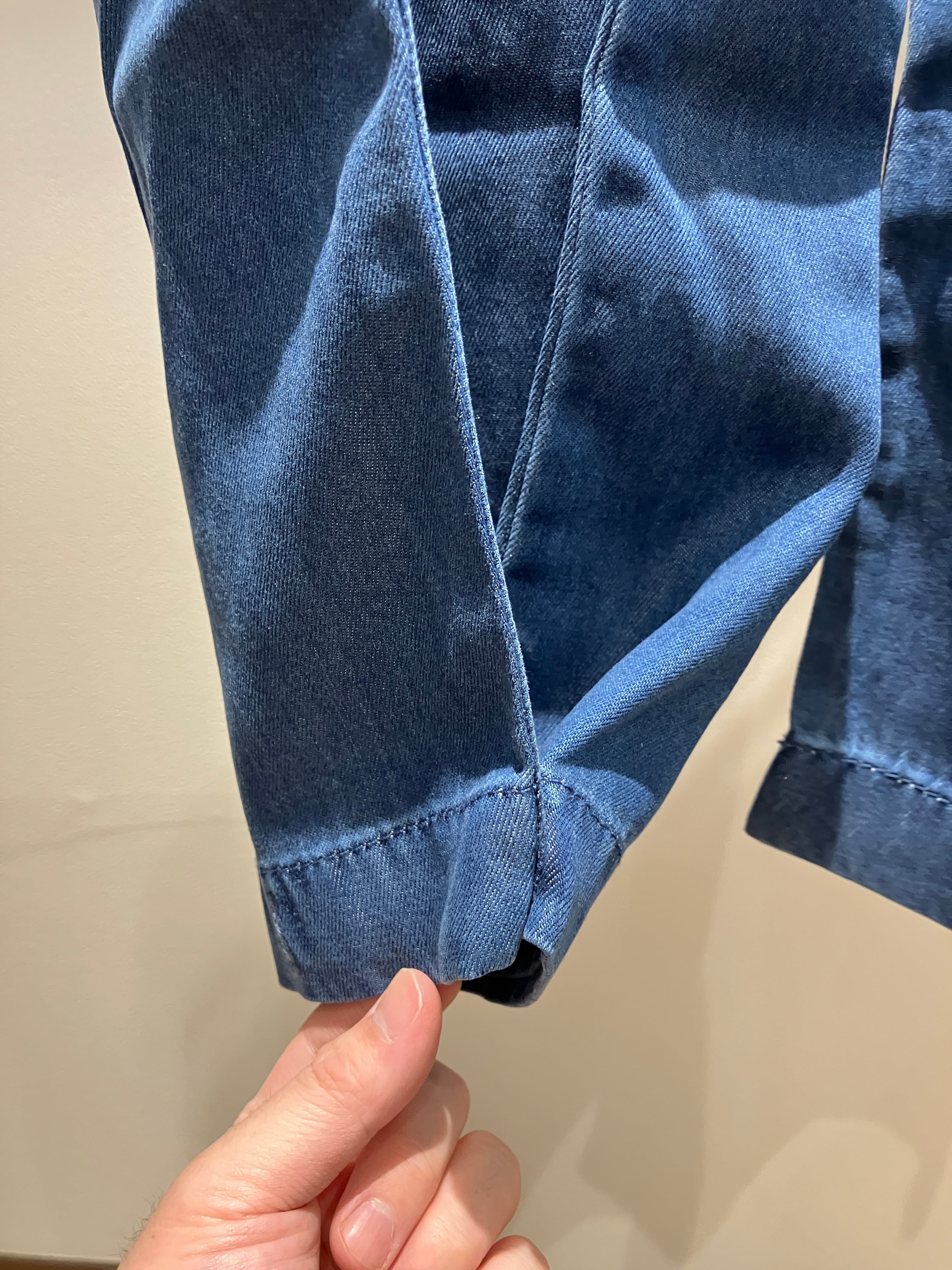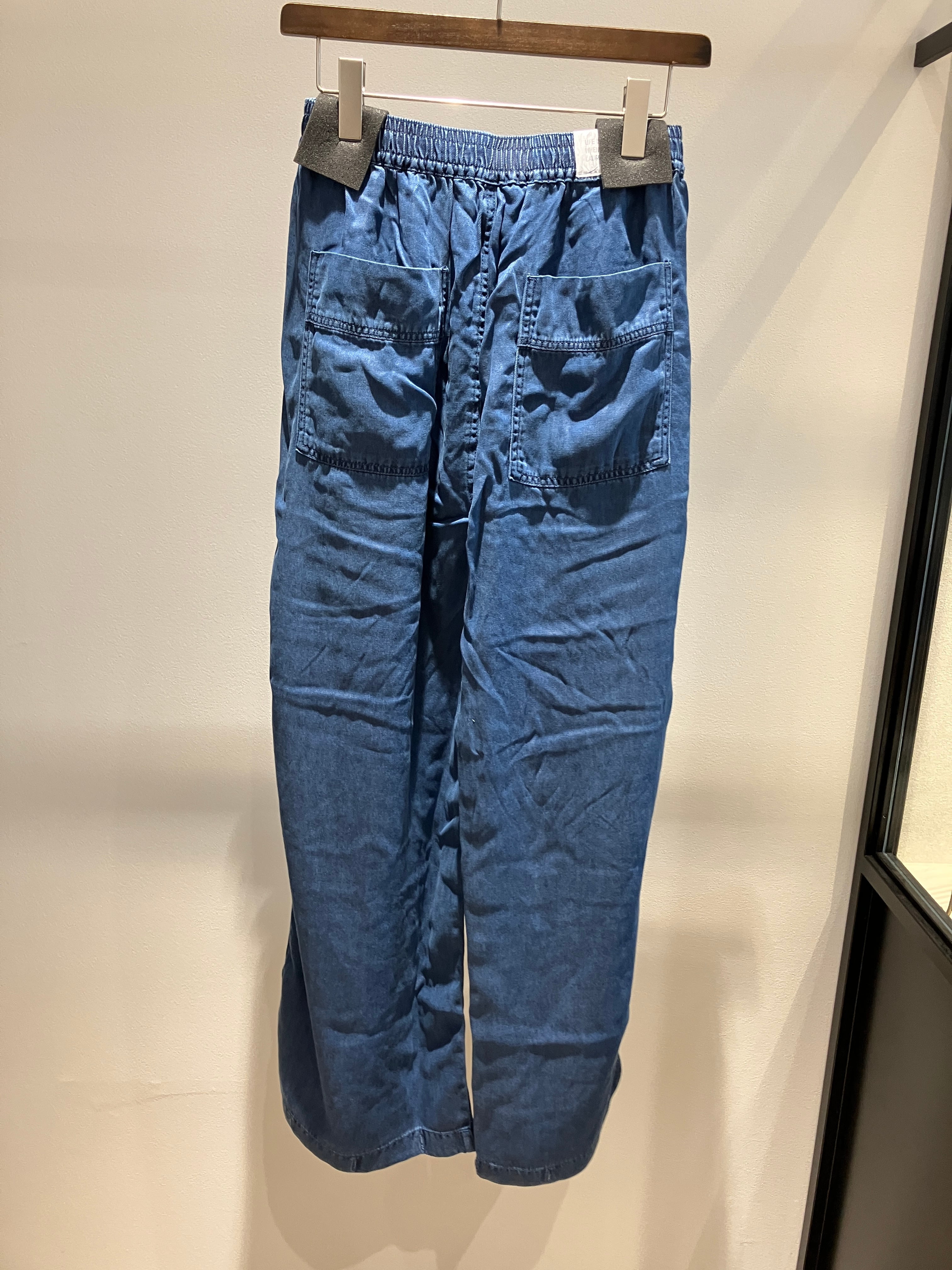 素材には、滑らかな落ち感とほのかな光沢が魅力のテンセルツイルを採用。肌触りが良く、身体の動きに合わせてしなやかに馴染むため、一日中快適に過ごせます。ウエストは総ゴム&紐仕様で、ストレスフリーな穿き心地を実現。そして最大のポイントは、裾幅をボタンで調整可能なディテールです。そのまま穿けばワイドシルエットに、ボタンを留めればテーパードシルエットに、とその日の気分やシューズに合わせて、2通りのシルエットを楽しめます。デイリーから旅行まで、幅広いシーンで活躍する頼れる一本です。